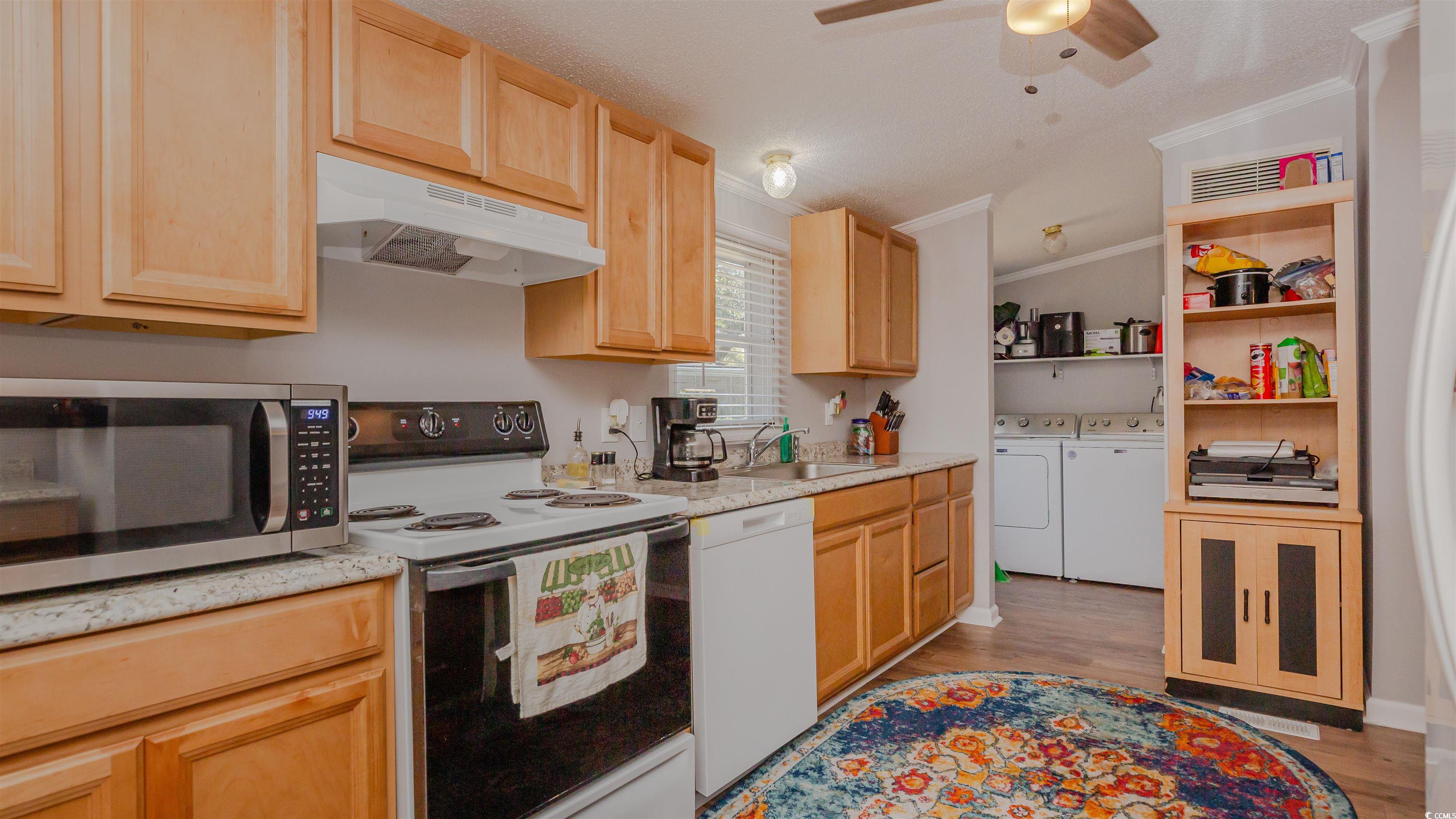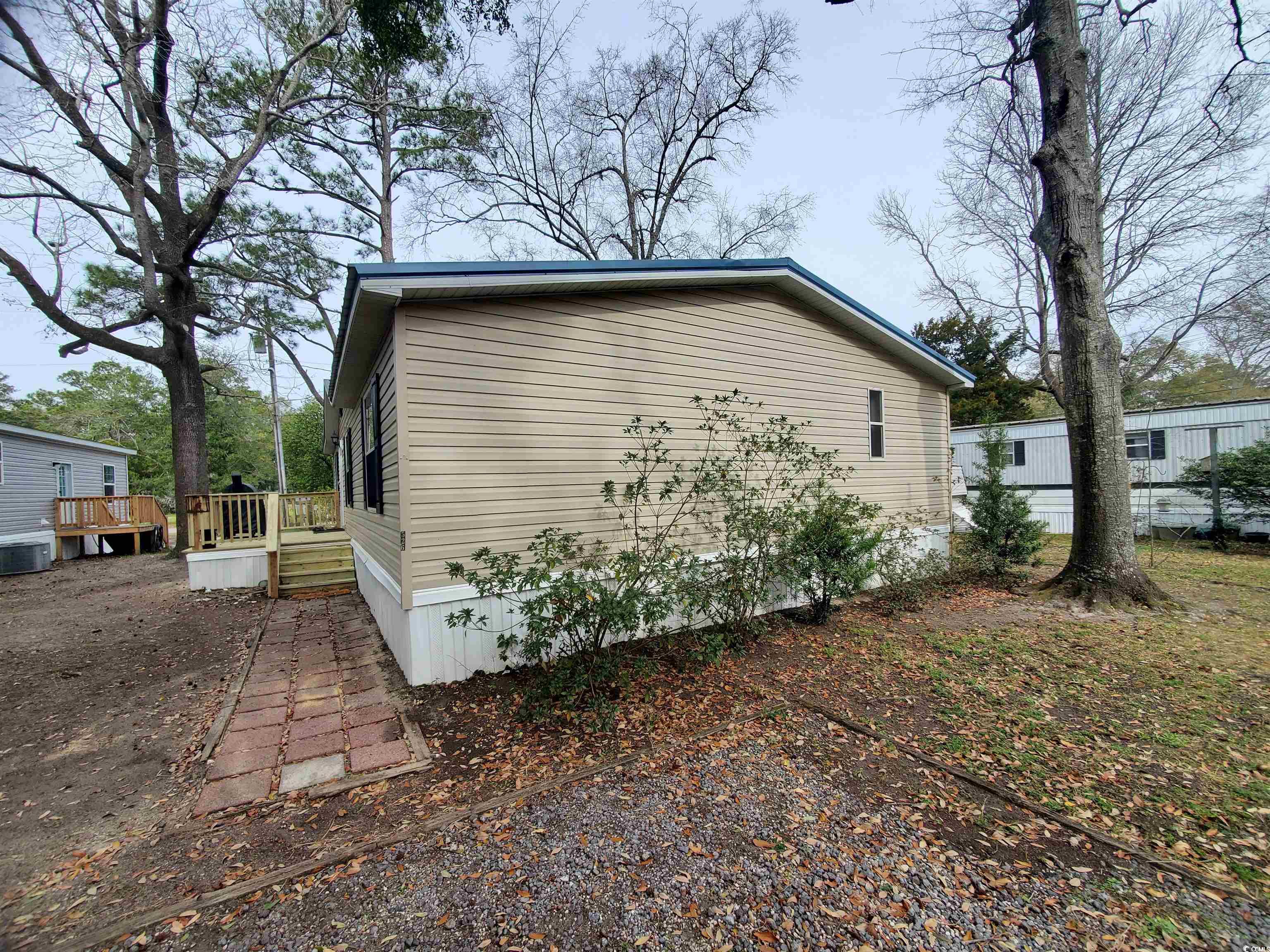 This home has had a complete interior make over! It is loaded with tons of upgrades. New flooring, appliances, washer, dryer, kitchen cabinets, bathroom toilets, 48X48 tile walk in shower, vanity with all new fixtures. This home also has a beautiful accent wall an outside shed and a brand new front deck and back landing and steps. Waterford Oaks features a community fishing pier, gazebo, and boat ramp. Rentals are strictly prohibited and is on leased land.