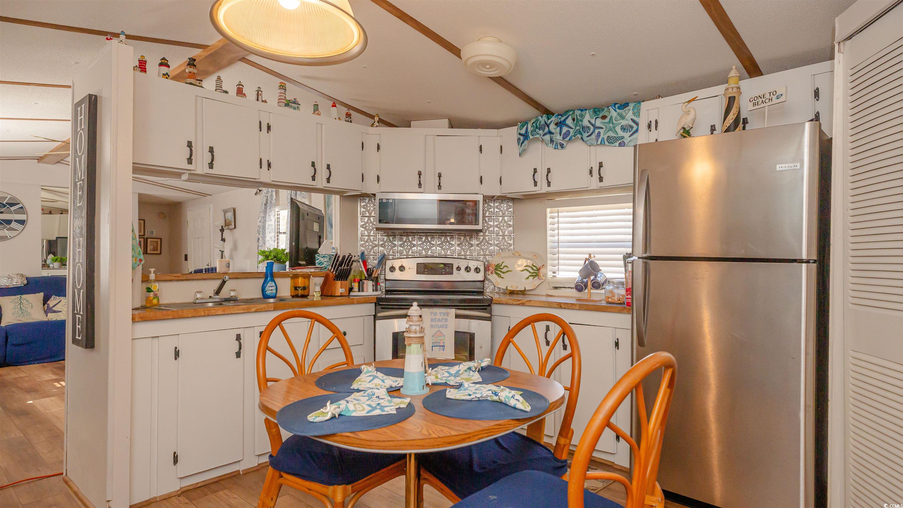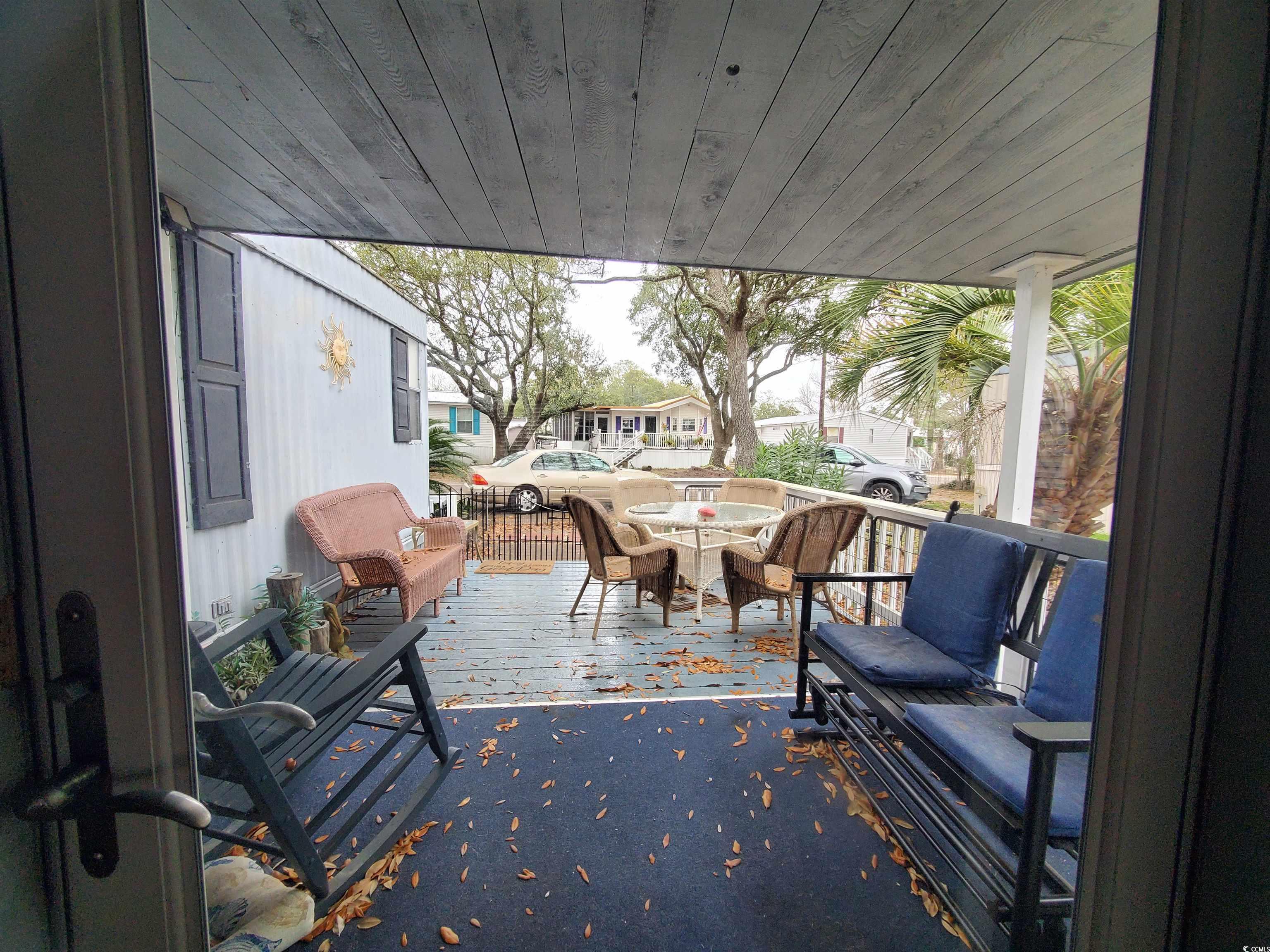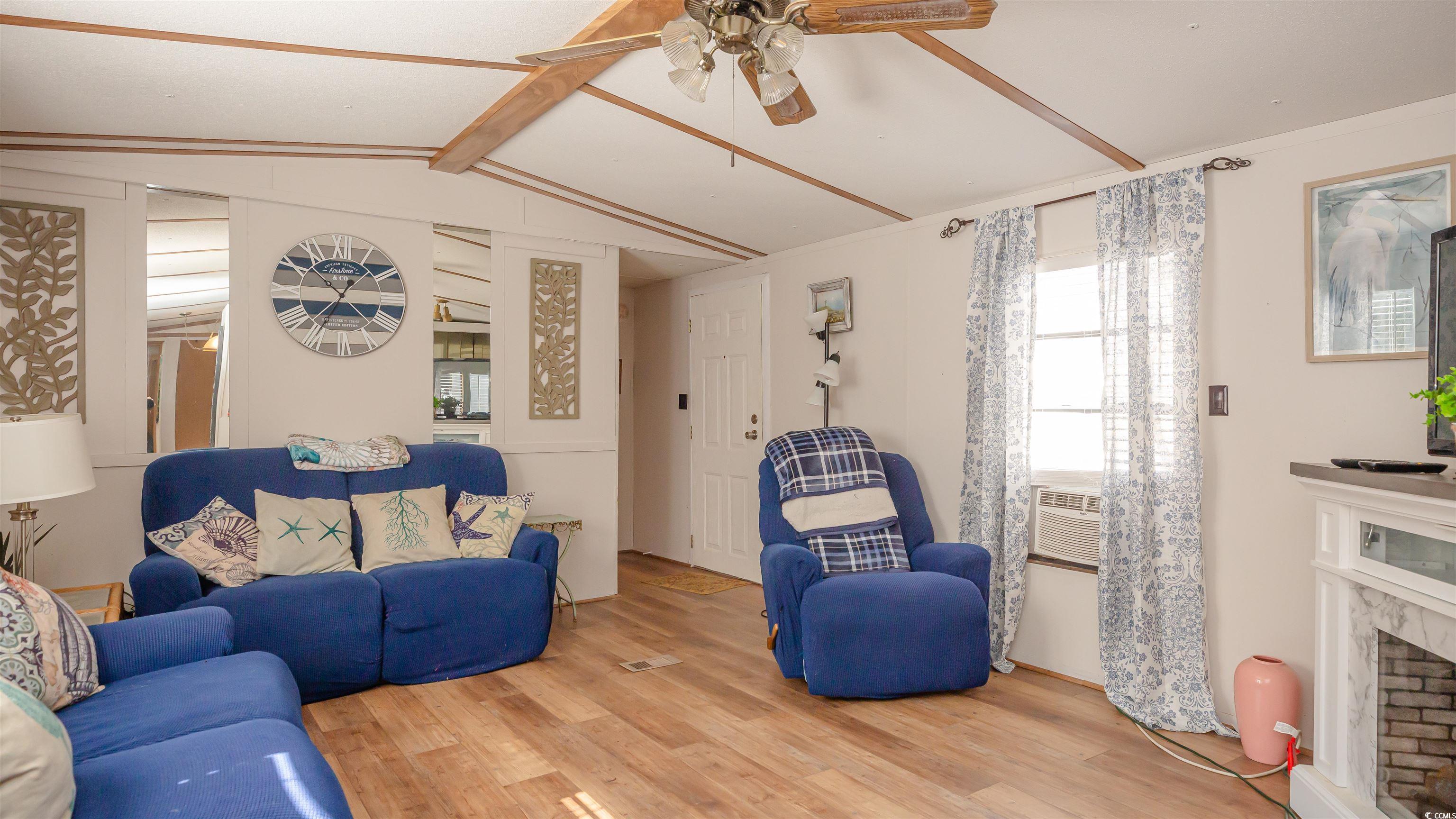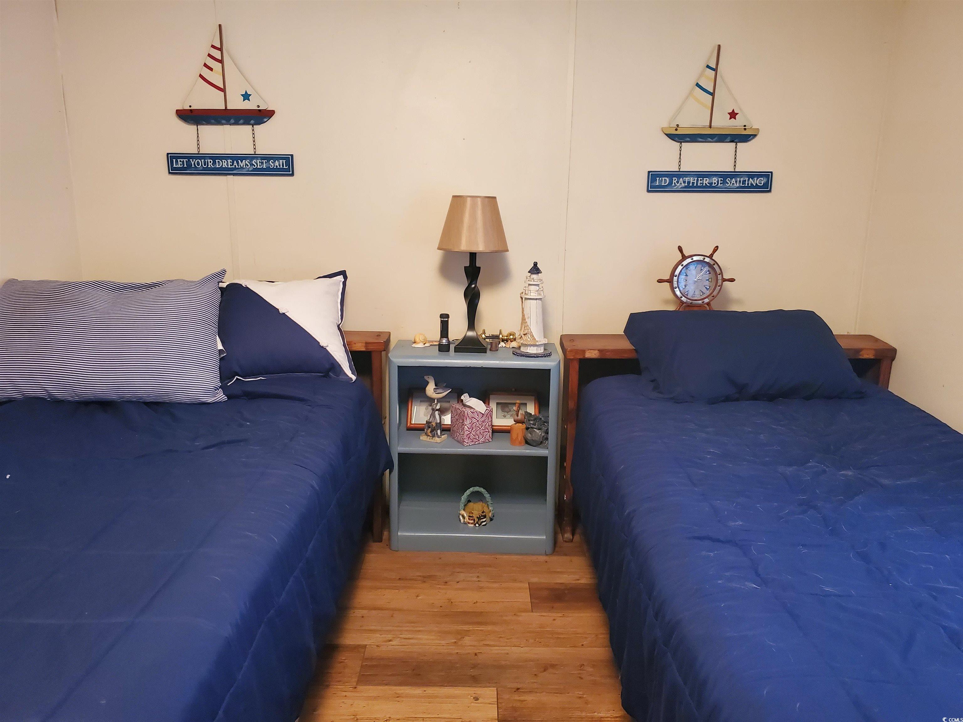 Great corner lot with a great front porch and fenced in area. Home has many upgrades including: Installed LVP through home and removed all carpet. New insulation in crawl space for entire home. Painted cabinets in kitchen white to look more modern. Stainless steel appliances. New HVAC - Works great, it did get flooded in hurricane Ian but contractor replaced pairs and works great. No warranty however. New electric fireplace in family room. New elongated high toilets in both bathrooms. New 2 inch blinds through out home. This 2 bedroom 2 bath home with an addition being used as a cozy sunroom is just a stones throw away from the march and a golf cart ride to the beach. With a detached shed and outdoor shower you have all the extras you need for a beach home. Waterford Oaks features a community fishing pier, gazebo, and boat ramp. Rentals are strictly prohibited and is on leased land.