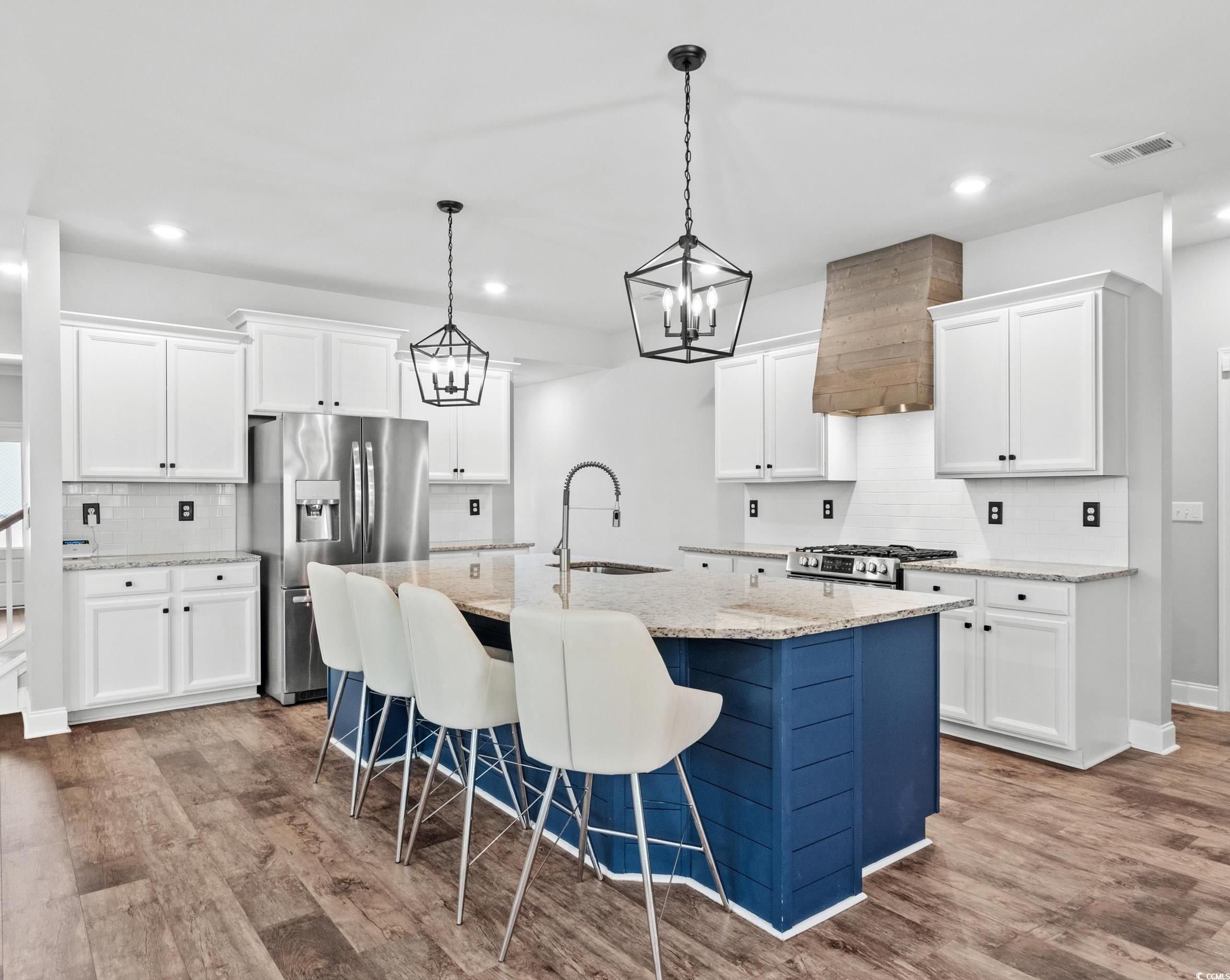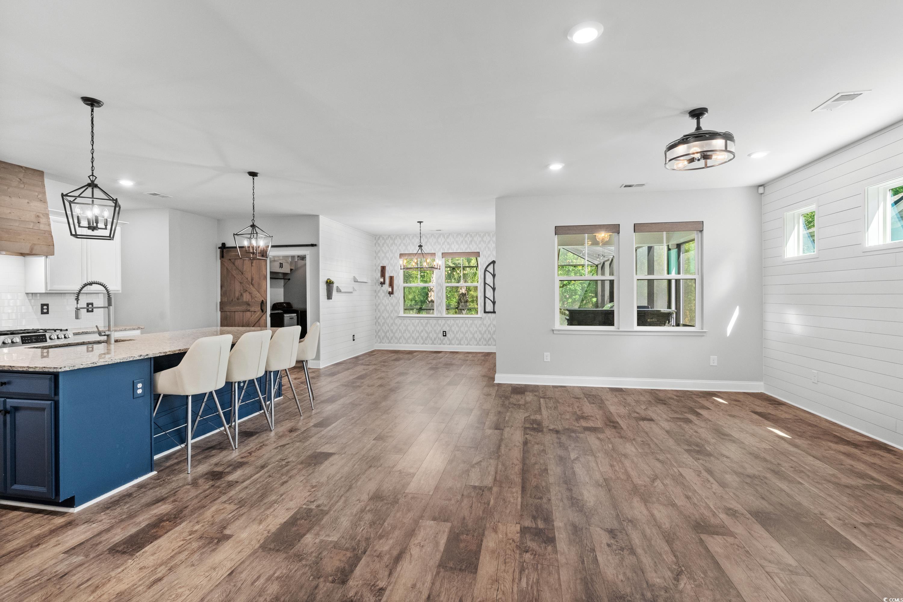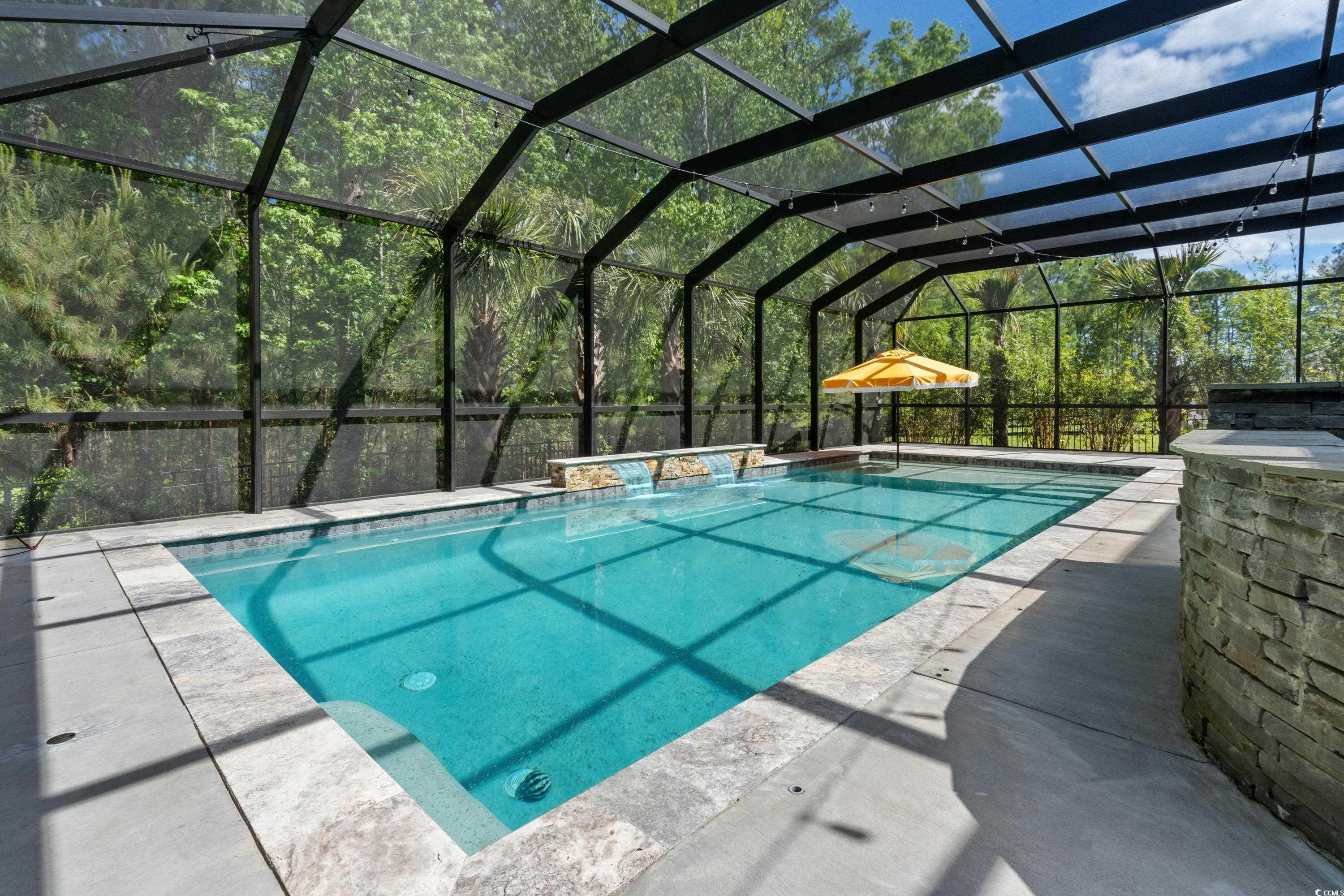 The best of everything in one low country style home! Perfect for entertaining and visiting family! Five spacious bedrooms, 2 gas fireplaces, fantastic layout, gorgeous heated/cooled gunite pool built in 2023 with pool cage to keep out pests and bugs! The 2021 seven person Spa/Hot Tub with waterfall will convey. Front porch big enough for porch swing and rockers! Shows like a model home and you can take the golf cart to Market Common and enjoy all that Market Common offers, restaurants, book store, dog grooming, breweries and more. City living vibe with the feel of a small neighborhood in a very central location on the Grand Strand. Quality healthcare very close! Brand new Publix just outside the neighborhood. A dream backyard with new pool will keep your family and friends happy during our sunny days at the beach! Fire pit, bar, outdoor bathroom, hot tub and more! Pool cage measures 49 feet x 46 feet x 10 feet high. Please note that one half bath is only accessible from the pool deck area and not accessible from the interior of the home. Irrigation system, Rinaii tankless water heater, saltwater heated pool and Hayward pool system. Fantastic amenity center with pool, pickleball court, playground, grills and covered area with wood burning fireplace for Belle Harbor residents to enjoy! Come and see the best of Grand Strand living at this move in ready five bedroom home close to everything but very private resort style backyard! Open houses will be held Saturday and Sunday, April 13th and 14th from 1:00 - 3:00 PM.