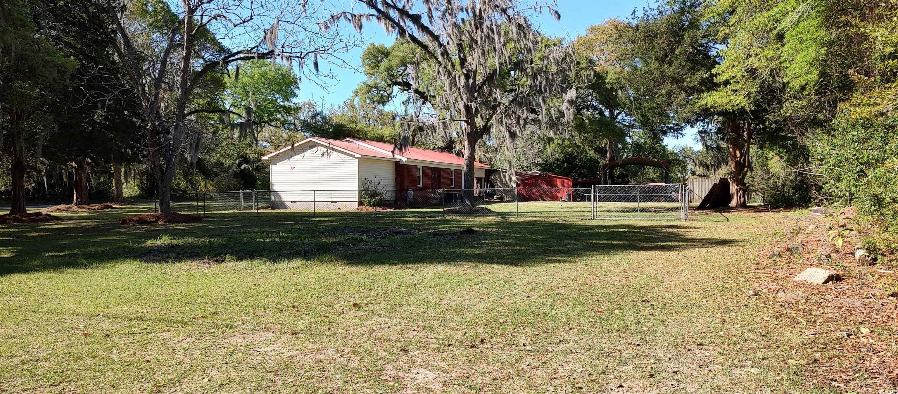 NO HOA, across from boat landing, great permanent home or rental, a classic home in the midst of a yard with large cedars, a historic 300 year old live oak , azaleas and wisteria; a beautiful South Carolina photo in your own yard. In the Waterford Estates section of Georgetown, this 3 bedroom, 2 bath brick home sits on almost an ACRE OF LAND. Home has been newly remodeled with paint, new carpet, and has original hardwood floors Side yard contains an enclosed 21x21 shop with 60 amp power, cable and a 12x21 lean to off the back. The additional 25x21 Carolina Carport is perfect for your boat & camper storage as the Black River surrounds the community and several landings are nearby. Back yard is fenced and has a gate opening to the back street . Home has never flooded and there is NO HOA!! Historic Georgetown with the Harborwalk, shopping and fine dining is only a few miles away , the beaches of Pawleys Island 18 miles, and Black River just around the corner for boating and fishing.