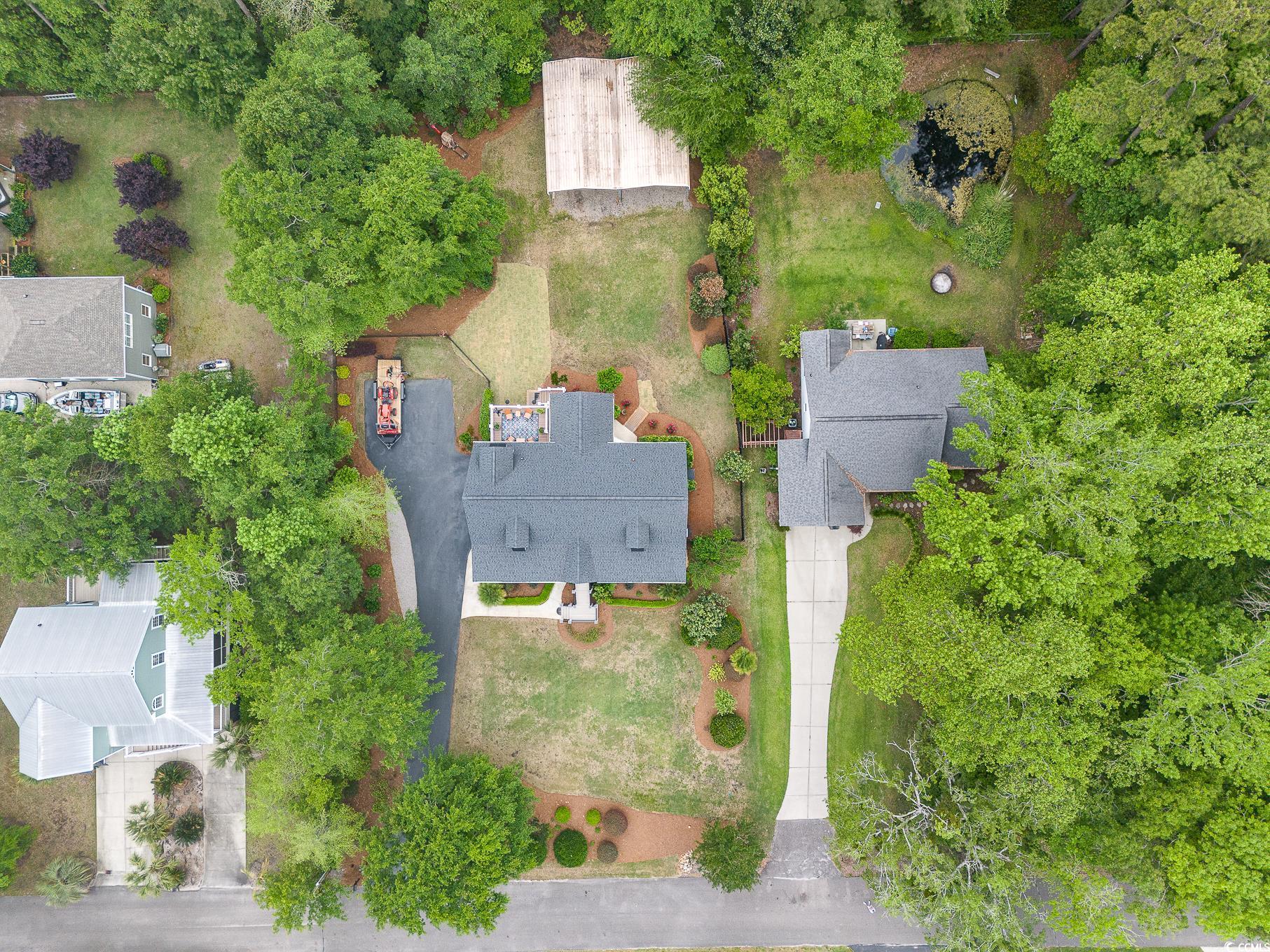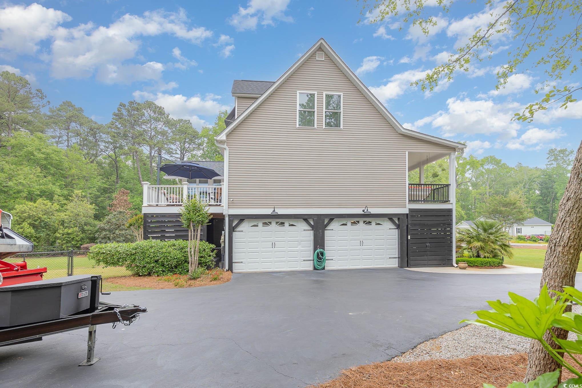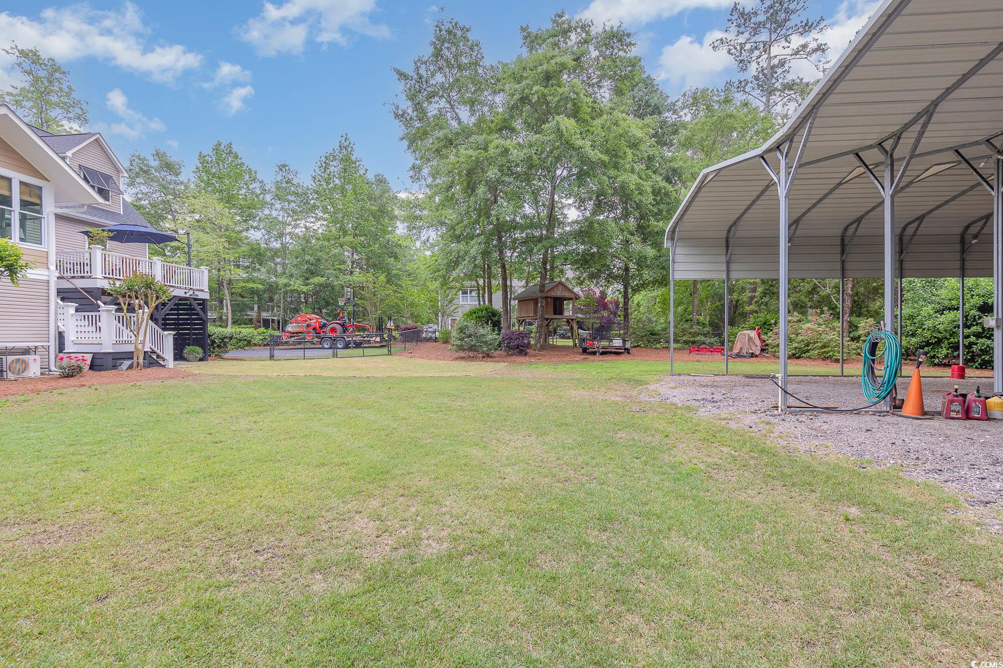 Calling all outdoor enthusiasts, golfers, and beach lovers! This raised beach house in Hagley Estates in Pawleys Island has so much to offer! This non HOA community is a quick golf cart ride to the beach or to Hagley Boat Landing to watch the sunsets. The 0.57 of an acre lot offers a 14-acre protected land trust that cannot be developed behind it, a 36 foot x 40 foot RV/boat pavilion with electric (50 amp service) and water, manicured landscape, an outdoor shower with hot/cold water, outdoor fish cleaning station with running water at utility sink, two covered sitting areas, a 12 foot x 16 foot deck and we havent even gotten to the inside yet! The inside offers three levels of living space. The first level offers garage space and a separate entry bedroom/office with a full bathroom! There are additional storage areas on this level as well. The main level of the home includes 3 bedrooms, a living room, dining space, kitchen with granite countertops and stainless steel appliances, and an amazing sunroom that overlooks the spacious fenced in backyard. The third level encompasses the primary suite. A large bedroom with sitting area, ensuite bathroom plus a huge bonus area for exercising, crafting, or whatever your heart desires! A half bath rounds out the top floor. This is a must see for anyone wanting privacy, space, and room for your outdoor toys! Pawleys Island offers pristine beaches, plenty of five-star restaurants, shops, and ten top rated golf courses.
