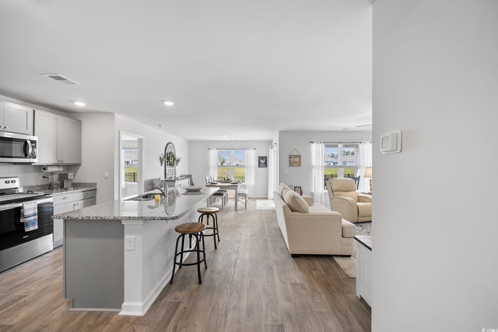 This is your opportunity to move into a home that feels like a new build, but already has all of the extras. With a fully fenced back yard, immaculate landscaping, and a gutter system in place, this home is turn key. Conveniently located off of Hwy 501 with easy access to Hwy 22, this location makes ease of travel throughout the Grand Strand. Separate bedroom areas provide an owners suite to the back of the home, with two bedrooms and a bath adorning the front foyer. The open floor plan provides great space for entertaining or daily gatherings. With granite counter tops, a huge kitchen island, stainless steel appliances, and a large pantry, dinner prep is a breeze. Schedule your showing today to see this one for yourself.