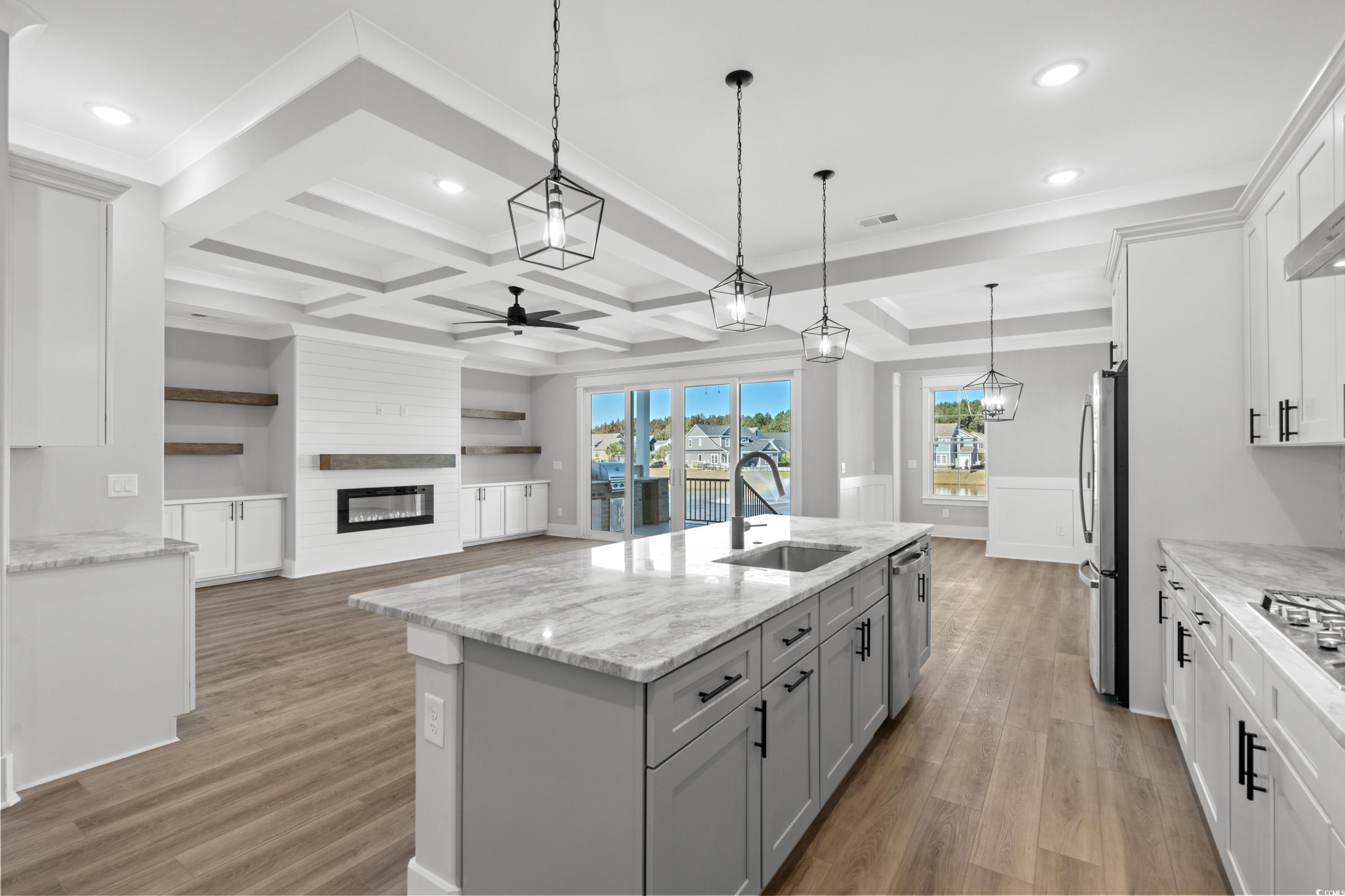 Welcome to this magnificent 5-bedroom, 4.5-bathroom home, a true gem in an exclusive gated community along the picturesque Intercoastal Waterway. This brand new construction promises modern luxury combined with timeless elegance, ready for you to move in this summer. As you enter, you'll be captivated by the stunning coffered ceilings that add a touch of sophistication to the spacious great room. The cozy fireplace and custom built-ins provide both functionality and a charming focal point for family gatherings or entertaining guests. The open-concept design ensures a seamless flow from room to room, making this home perfect for both everyday living and special occasions. The home features no carpet, ensuring easy maintenance and a clean, contemporary look throughout. The all-tile showers in each of the four and a half bathrooms offer a spa-like experience, enhancing your daily routine with a touch of luxury. The first-floor primary bedroom is a true retreat, providing convenience and privacy with its spacious layout and elegant design. One of the standout features of this property is its location. Enjoy amazing views of the serene lake from multiple vantage points within the home. The neighborhood itself is a vibrant intercoastal waterway community, offering a lifestyle filled with scenic beauty and outdoor activities. As a resident, you'll have access to a world-class clubhouse, perfect for socializing, relaxing, and staying active. This home is not just a place to live, but a lifestyle to embrace. Every detail has been thoughtfully designed to provide comfort, luxury, and convenience. Don't miss the opportunity to own this exquisite property and experience the best of what this premier community has to offer. Move-in ready this summer, this home is waiting for you to make it your own.
