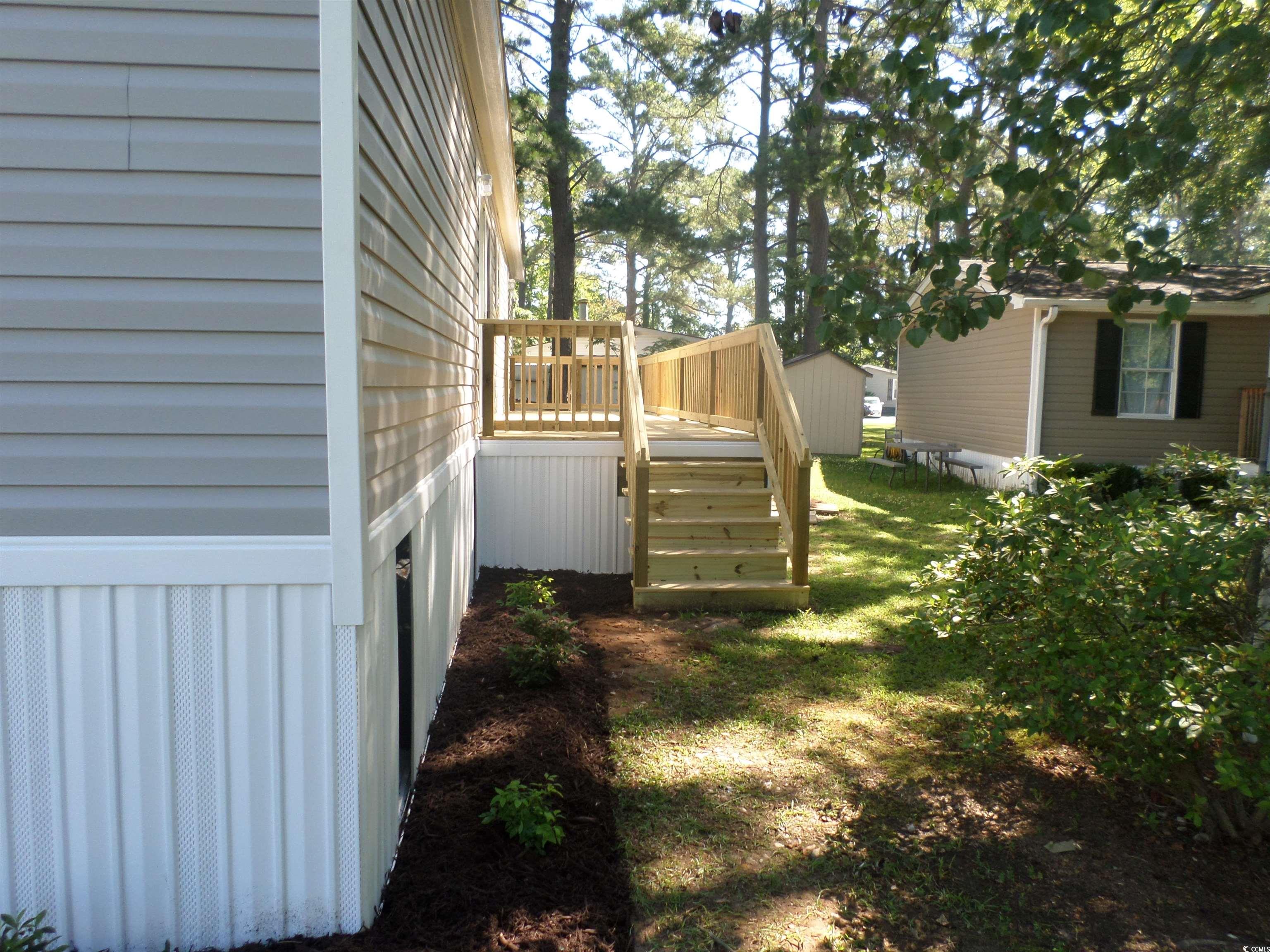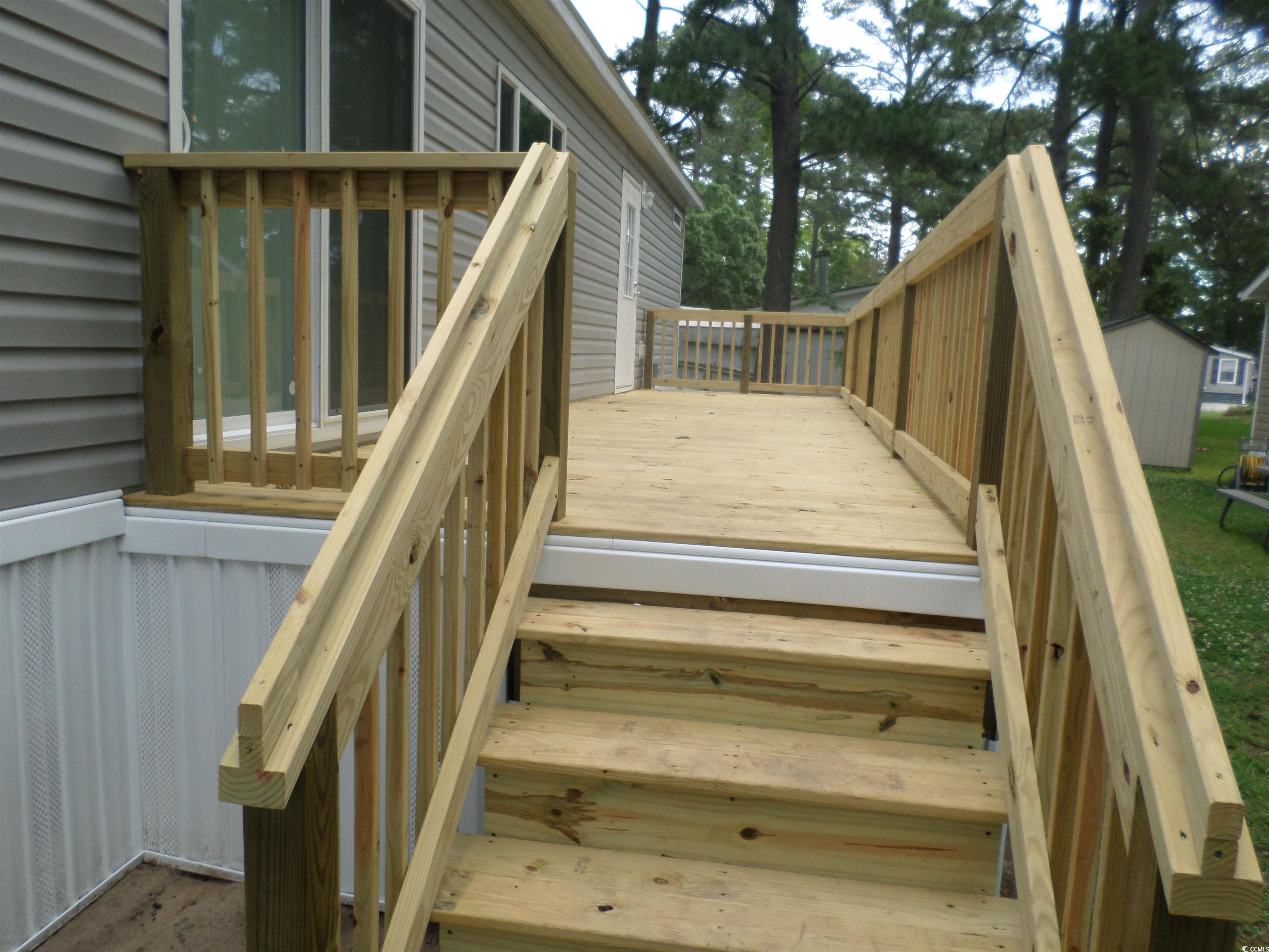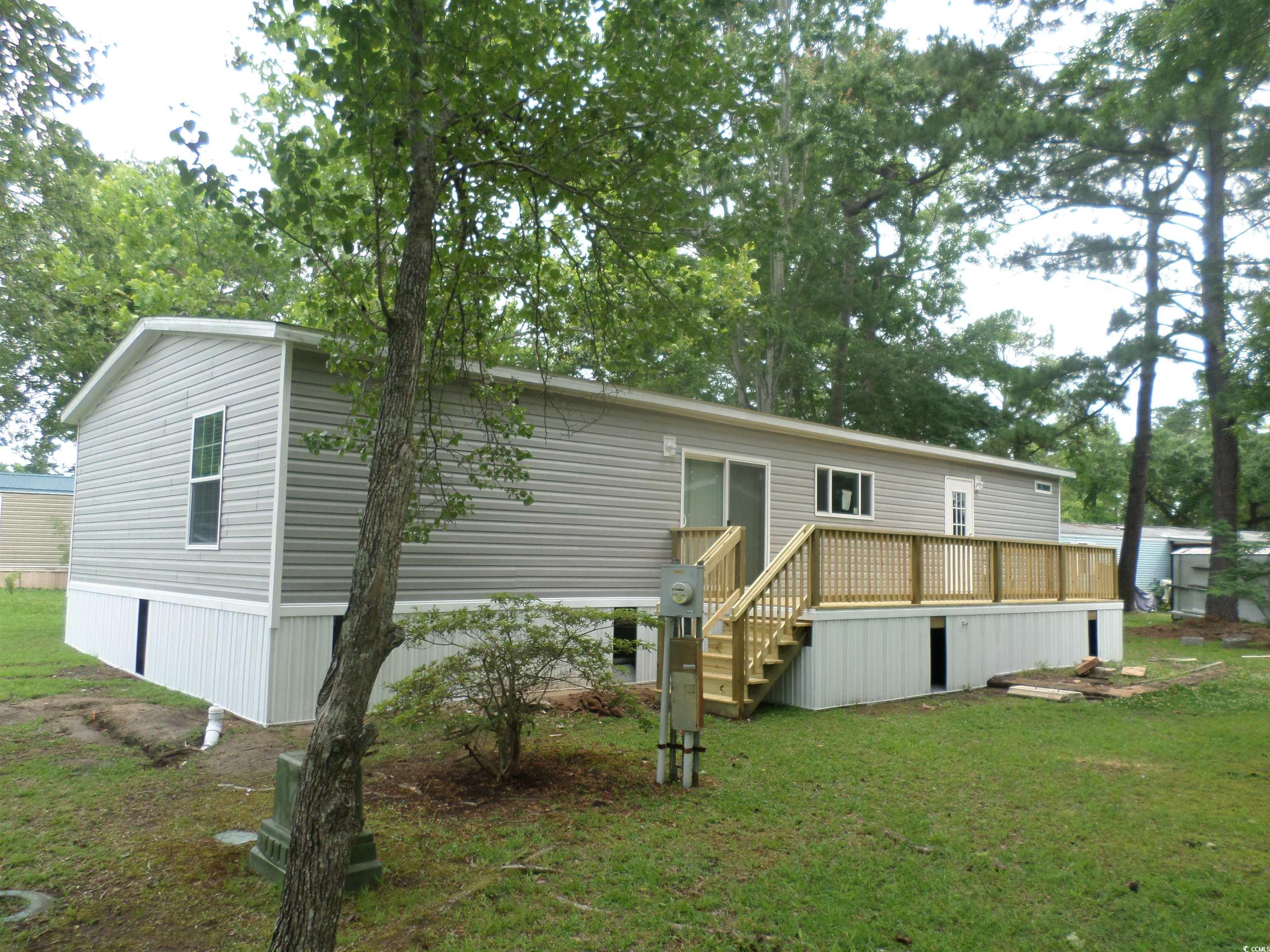 Back on the market at no fault of the seller. NEW Fleetwood 4 bedroom 2 1/2 bath manufactured home set up in the sought after leased lot community of Kingston Village downtown Myrtle Beach, SC only a few blocks to the beautiful Atlantic Ocean. This lovely home has an appliance package, heat pump, water heater, plenty of cabinets and an island bar which is great for entertaining. One large rear outside deck is installed with plenty of room for relaxation and bbqs. The front wood deck is another option for home entry. This home has lovely appointments, a living room ceiling fan. The master bedroom has a large walk in closet, comfortable carpeting and recessed lighting. The guest bathroom has a tub/shower combination and the utility room is plumbed with washer/dryer connections. With the purchase of this home, a buyer will receive a one year manufacturers warranty. The home would make a great primary residence or vacation residence. The concrete parking space allows for easy access in and out of the community. Kingston Village is close to all Myrtle Beach attractions, restaurants and only minutes to the beautiful Atlantic Ocean. It is a must see at an affordable price. Schedule your showing appointment today.