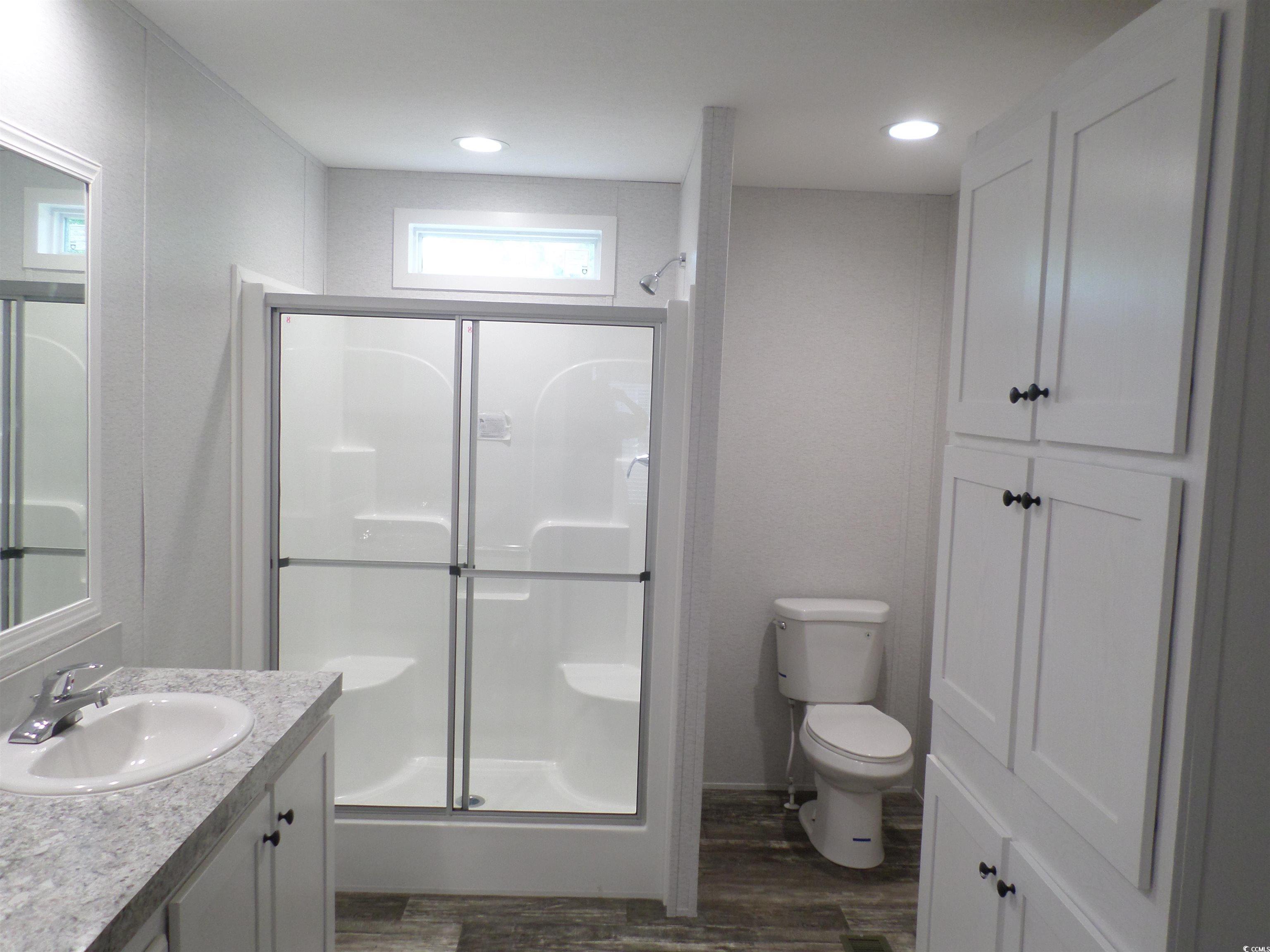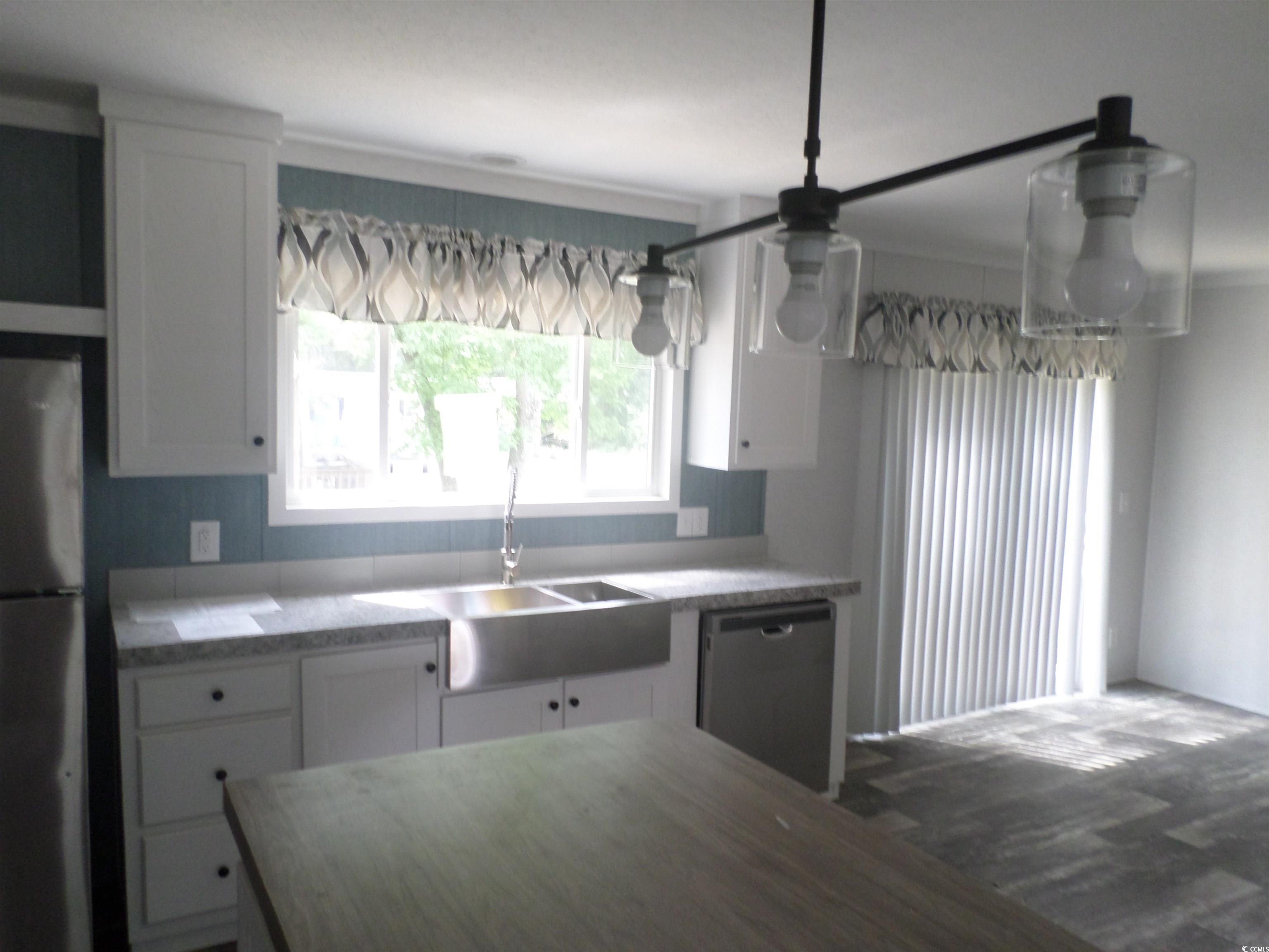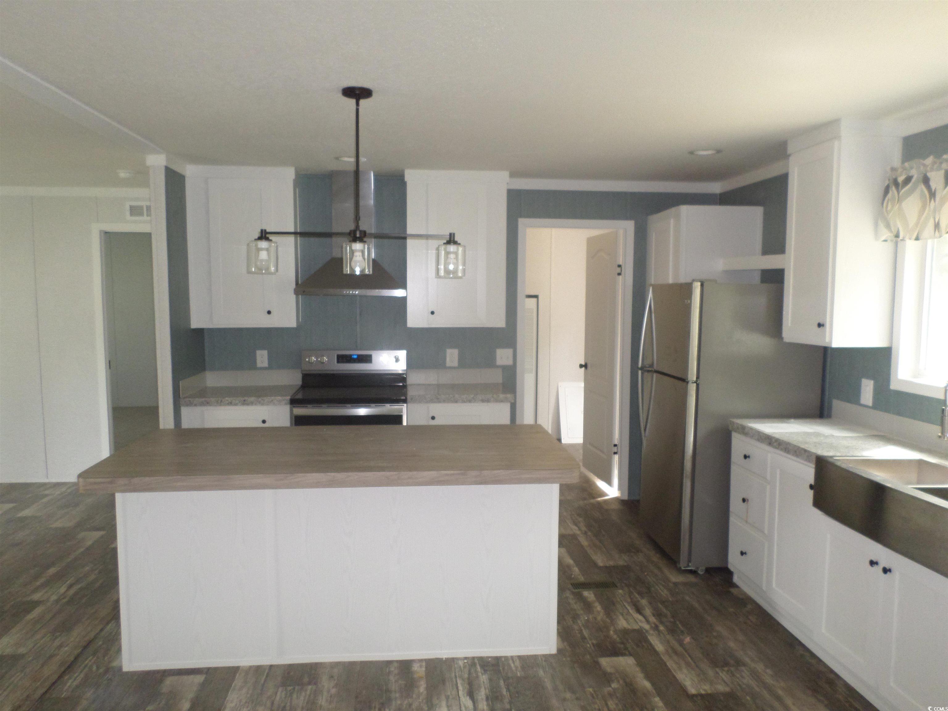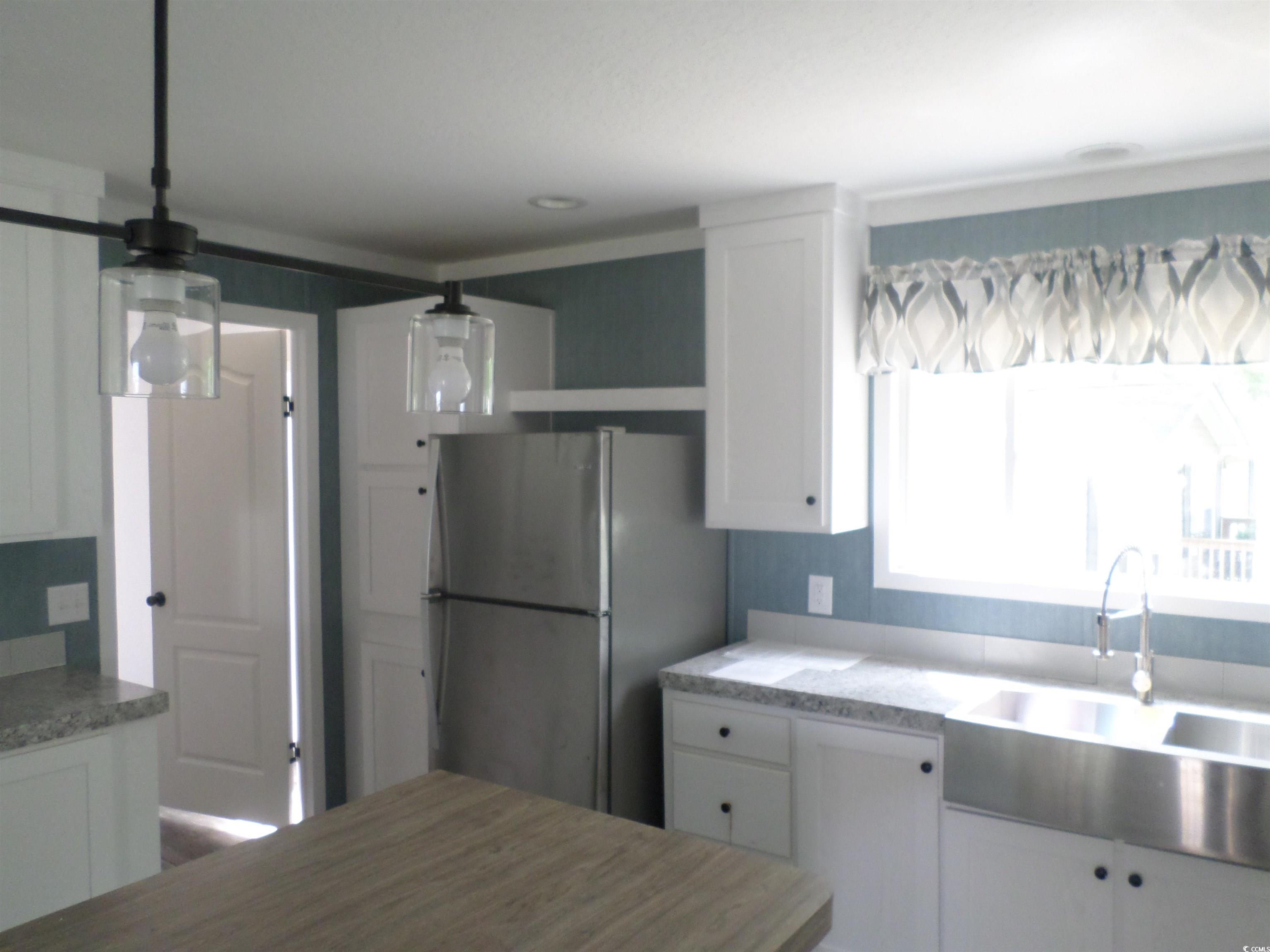 Back on the market at no fault of the seller. NEW Fleetwood 4 bedroom 2 1/2 bath manufactured home set up in the sought after leased lot community of Kingston Village downtown Myrtle Beach, SC only a few blocks to the beautiful Atlantic Ocean. This lovely home has an appliance package, heat pump, water heater, plenty of cabinets and an island bar which is great for entertaining. One large rear outside deck is installed with plenty of room for relaxation and bbqs. The front wood deck is another option for home entry. This home has lovely appointments, a living room ceiling fan. The master bedroom has a large walk in closet, comfortable carpeting and recessed lighting. The guest bathroom has a tub/shower combination and the utility room is plumbed with washer/dryer connections. With the purchase of this home, a buyer will receive a one year manufacturers warranty. The home would make a great primary residence or vacation residence. The concrete parking space allows for easy access in and out of the community. Kingston Village is close to all Myrtle Beach attractions, restaurants and only minutes to the beautiful Atlantic Ocean. It is a must see at an affordable price. Schedule your showing appointment today.