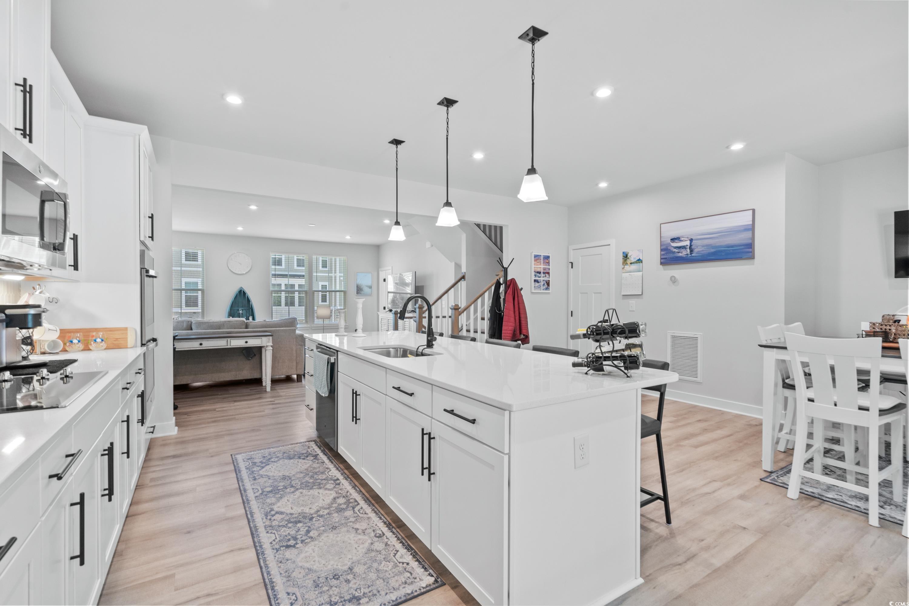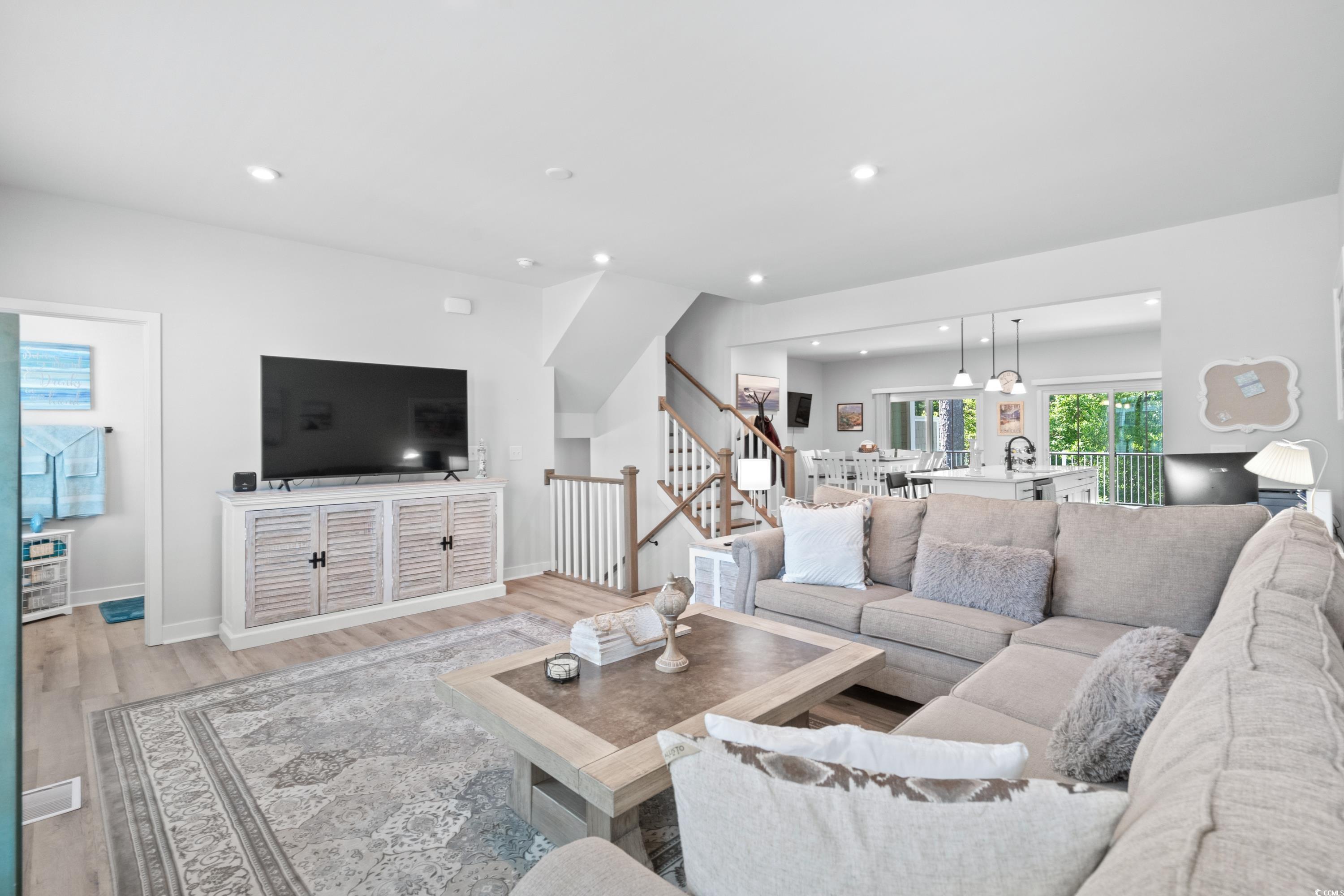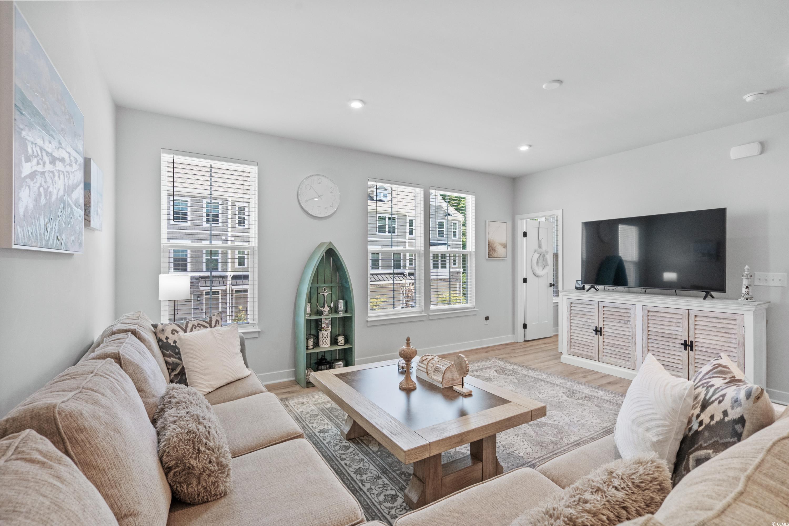 Welcome to the Dye Townhomes at Barefoot Resort & Golf, a luxury townhome style community located within the gated Dye Club section in Barefoot! Unit 602 comes mostly furnished, featuring 4 bedrooms 3.5 baths, and has a 2-car private garage. Both short term & long term rentals are allowed! The ground level features a massive 4th bedroom/recreational room with access to a full bathroom and private screened-in porch. Upstairs, the main living area is plenty spacious for group gatherings and just off the kitchen you have access to the large covered porch which is perfect entertaining guests. Half bath is located on the main living area. The top floor encompasses the primary suite along with two additional bedrooms, full bathroom with tub/shower combo and a full-size laundry room equipped with washer/dryer. The primary suite features a large walk-in closet along with its own bathroom, a dual vanity sink, and tile shower. Additional features include luxury vinyl plank flooring, gourmet kitchen with tile backsplash, double oven, stainless appliances, quartz countertops in the kitchen & all bathrooms, soft-close cabinetry, elongated toilets, and craftsman-style trim, doors, and hardware. Barefoot Resort amenities include a newly constructed Oceanfront Cabana, four championship golf courses, 15,000sqft saltwater pool on the waterway, restaurants, marina, driving range, bars, pro shop, Barefoot Landing shops, and much more! This would make the perfect primary residence or second home. Call the listing agent today for a showing!