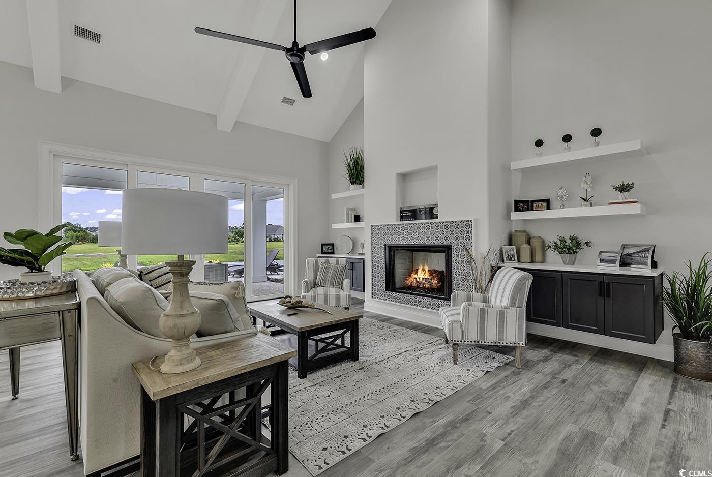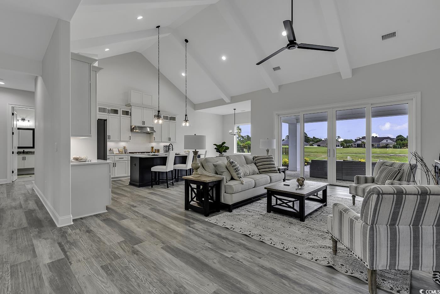 MOVE IN READY!!! Nestled in the prestigious Wild Wing Plantation, a stunning golf course community, this new construction home offers serene views, located directly on the Golf Course and the pond. An Open Floor Plan Concept with lots of upgrades and fine finishes. The great room boasts a vaulted, beam ceiling, a cozy gas fireplace, and sleek floating cabinets and bookshelves. The designer kitchen features stainless steel appliances, solid cabinetry with soft-close doors, and high-quality quartz countertops. The owner's suite includes spacious walk-in closets with custom shelving, an en-suite bathroom with double vanities, a walk-in shower, and a private water closet. The first guest bedroom has its own private en-suite, while the second guest bedroom has convenient access to a hall bath. Upstairs, a private guest suite with a full bath provides additional comfort. Outdoor entertaining is a breeze with a covered rear porch leading to a patio that overlooks the pond and golf course. Wild Wing's incredible amenities include three pools, a water slide, playground, fitness room, tennis courts, basketball court, and community day docks with a boat ramp and parking. This community is conveniently located near shopping, dining, entertainment, and all the attractions the Myrtle Beach - Grand Strand area has to offer.