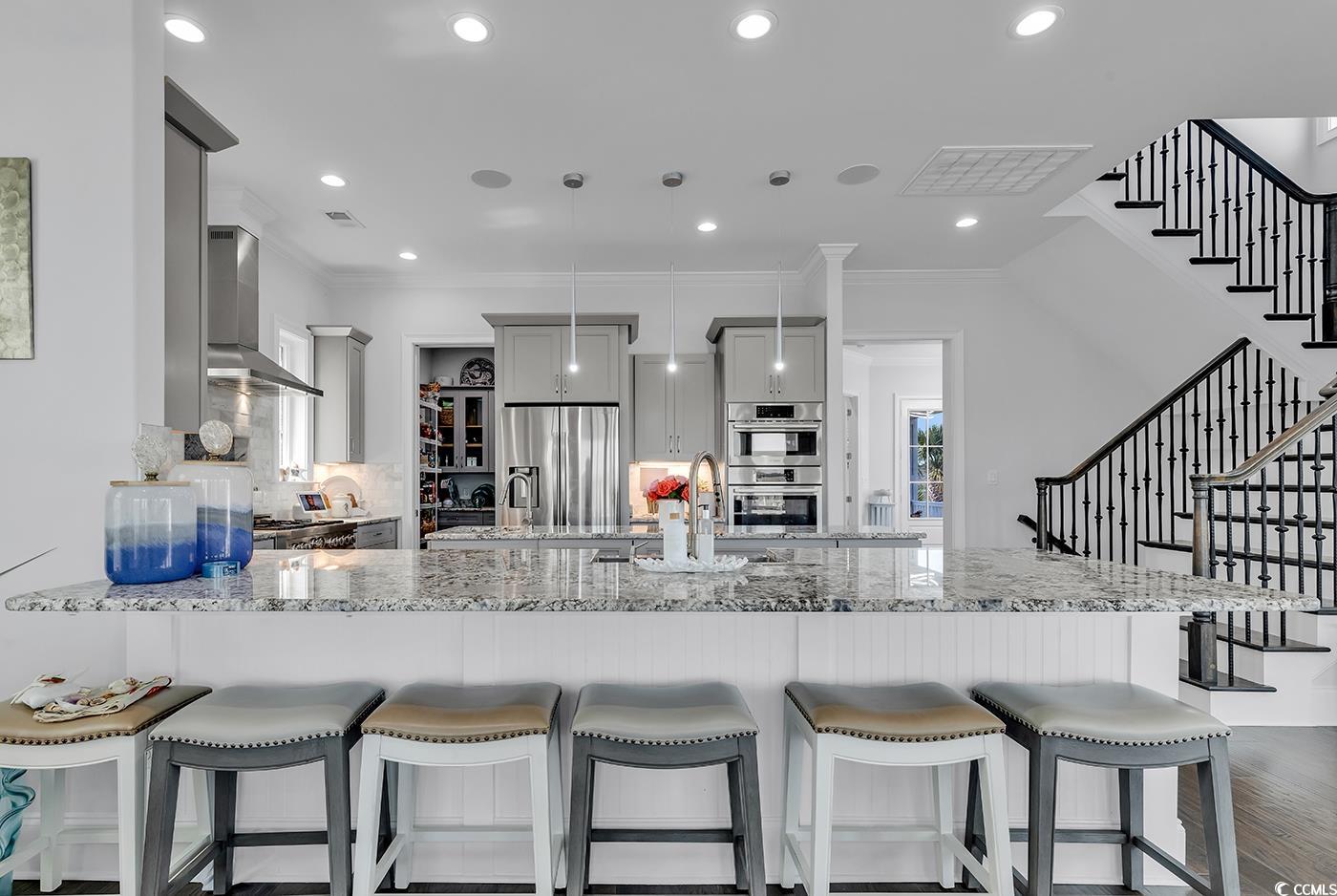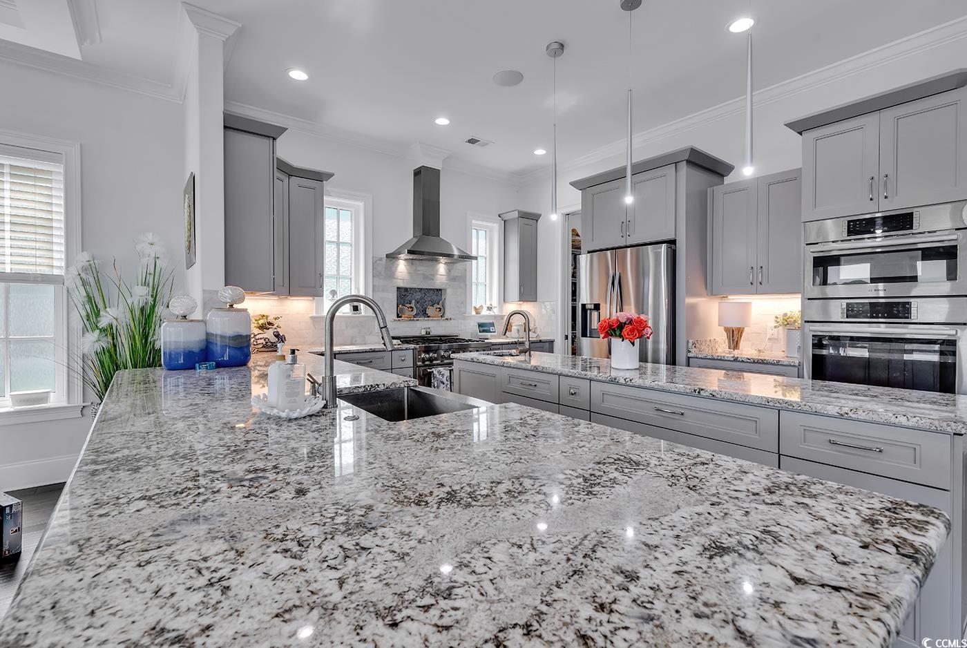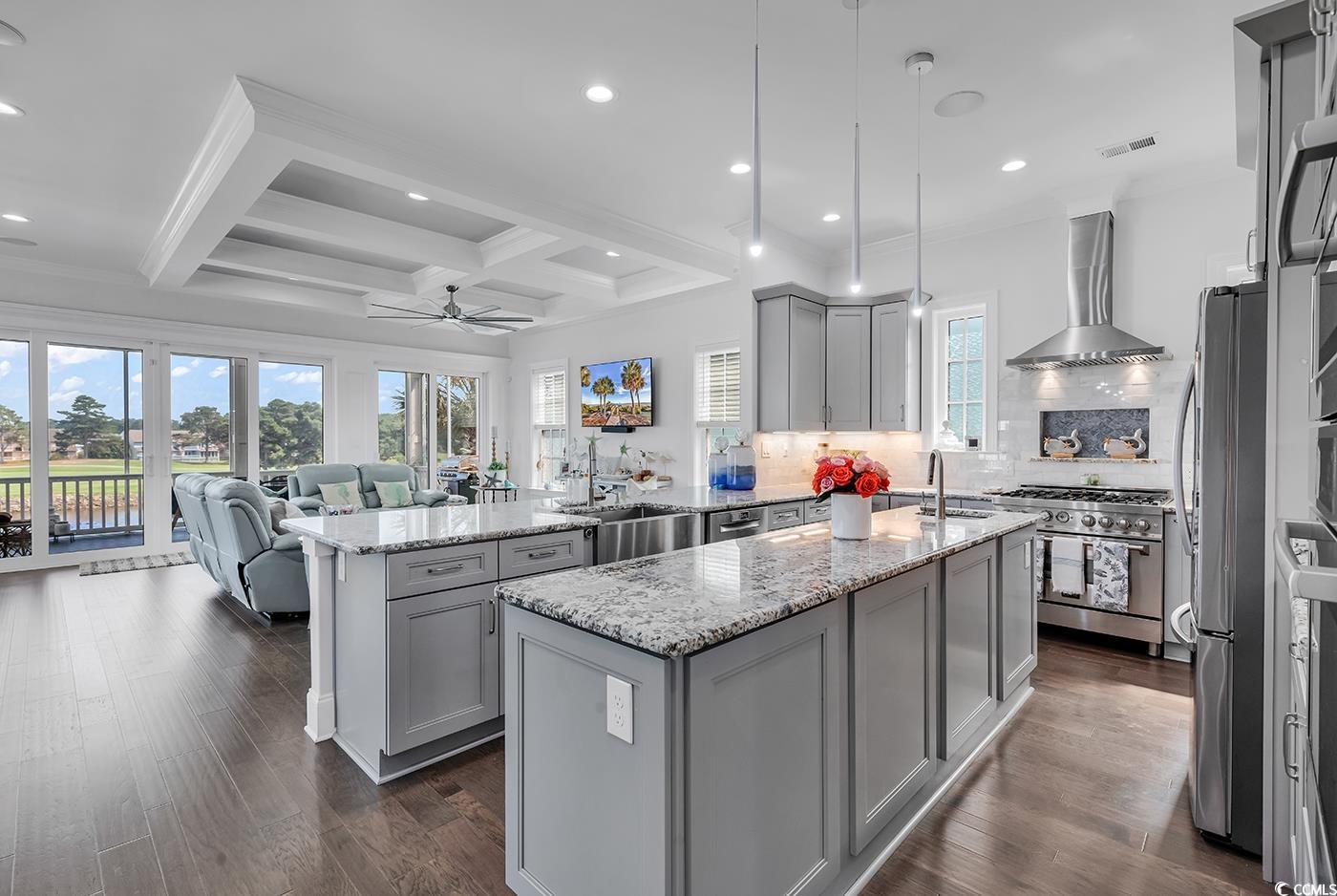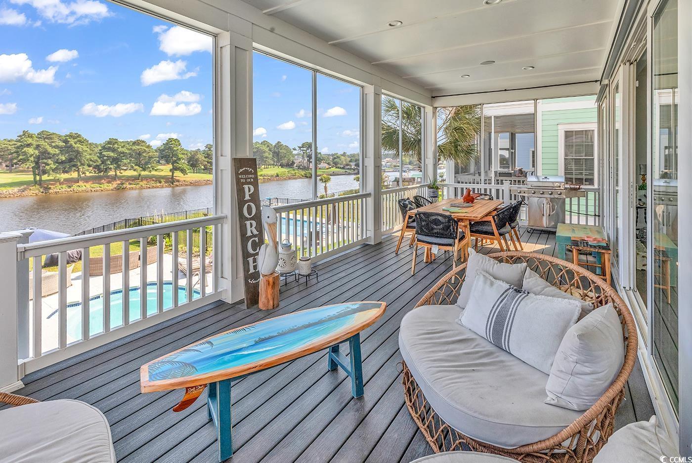 Waterfront Luxury with Room for Everyone - Myrtle Beach Living at Its Best! Welcome to your dream home on the Intracoastal Waterway! This incredible 5-bedroom, 5-bath custom residence offers the perfect blend of luxury, comfort, and coastal lifestyle, with 4,370 heated square feet (5,963 total). Enjoy breathtaking water and golf course views from two expansive balconies, or step out back to your private oasisfeaturing a heated saltwater pool, fenced yard, and a private dock with boat lift and two skidoo lifts for all your waterfront adventures. Inside, the open floor plan is filled with high-end features: coffered and tray ceilings, a custom gourmet kitchen, spacious walk-in closets, and even a full in-law suite with its own kitchen and living areaideal for guests or multigenerational living. A residential elevator adds convenience to this thoughtfully designed home. Whether you're relaxing by the pool, cruising the waterway, or entertaining in style, this property truly has it all. Coastal luxury awaits! This is a gated community with an amazing resort style amenity center. Just minutes to the beach, entertainment, golf courses, restaurants, shopping and more!