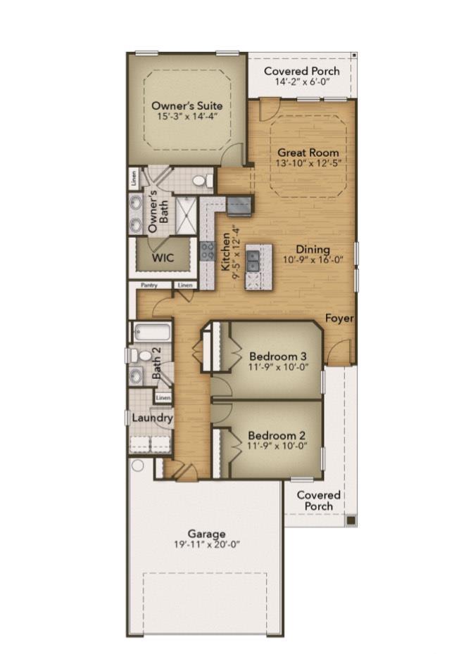 The Sunflower model is a bright and cheery home with over 1,500 square feet of comfortable living space. This cozy floorplan combines comfort and efficiency seamlessly. Step into the great room with an open kitchen and great room from the covered porch. A spacious pantry behind the kitchen leads to a hallway with a convenient laundry room and access to the two-car garage. Two bedrooms and a full bathroom offer privacy away from the Owner's Suite. Enjoy beautiful sunsets from the rear covered porch off the great room. The Owner's Suite is a private oasis with a generous bath and large walk-in closet. Make The Sunflower your ideal home. Welcome to Traditions at Carolina Forest - a single-family community nestled in the desirable centrally located Carolina Forest Area of Myrtle Beach, SC! Discover a blend of contemporary conveniences such as natural gas and the picturesque lifestyle you've always wanted. Play a round of golf at prestigious courses or relax on stunning beaches nearby. Indulge in local flavors at restaurants, shop 'til you drop at malls and outlets, and savor live entertainment and festivals on weekends. With outstanding schools and medical centers, this community provides the ideal setting for living, working, and enjoying life. The proposed community amenities are under construction and are designed to cater to every lifestyle. Whether you prefer a refreshing dip in the pool, a playful afternoon at the dog park, an exciting match on the pickleball court, quality time with the kids at the playground, or an invigorating workout in the clubhouse's fitness center, you'll find it all right here.