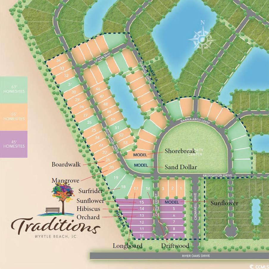 Traditions is located off of River Oaks Drive, right across from Waterway Palms Plantation. It's a new residential community in Carolina Forest. This area is popular for its beautiful homes, community amenities, and convenient location near the Intracoastal Waterway. If you need specific details or directions to Traditions, feel free to ask! Enter 566 Banna Arch Loop, Myrtle Beach, SC 29579 in Google Maps for directions our Sales Office at Traditions at Carolina Forest.Courtesy of Today Homes Realty Sc, Llc