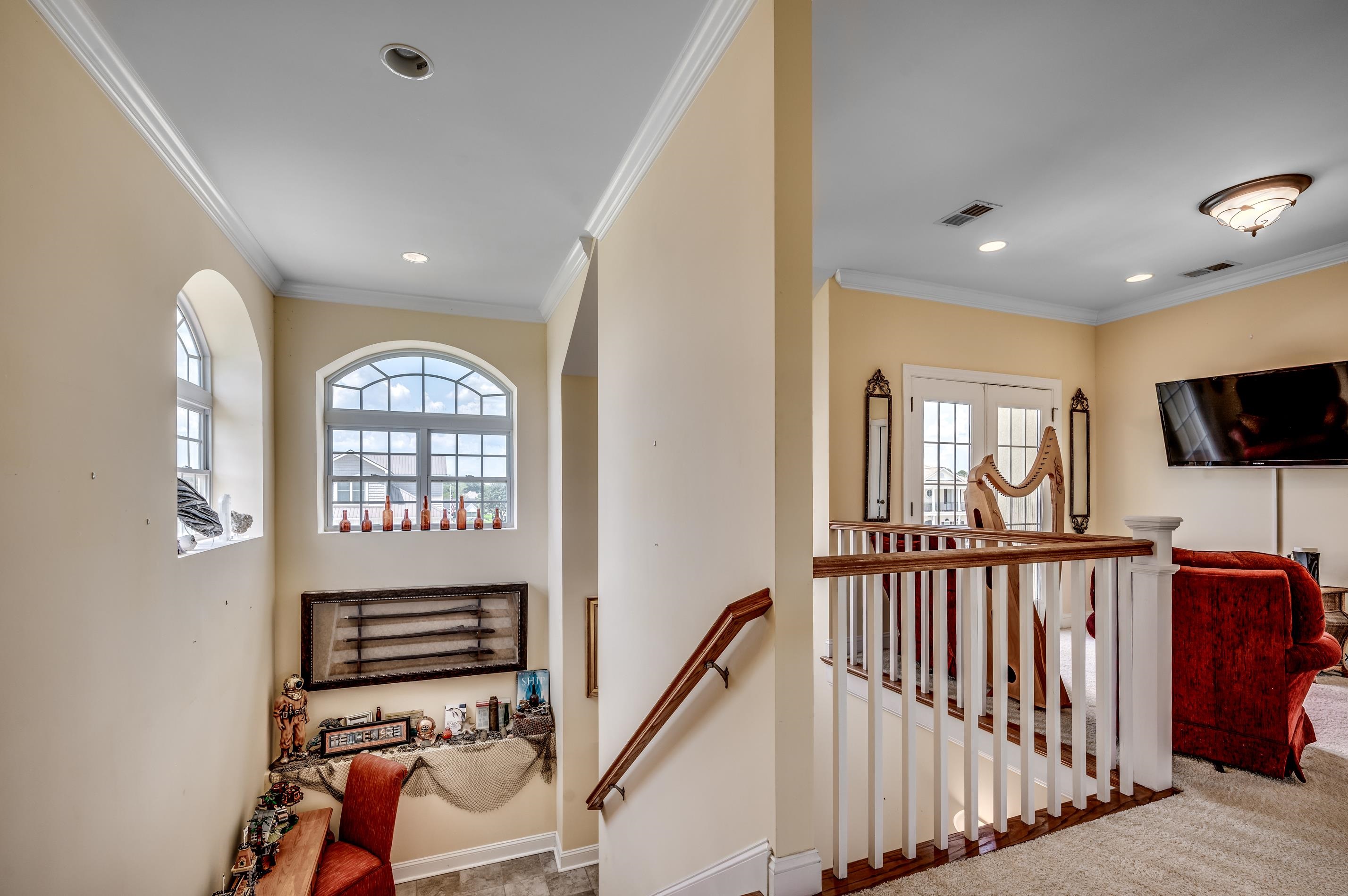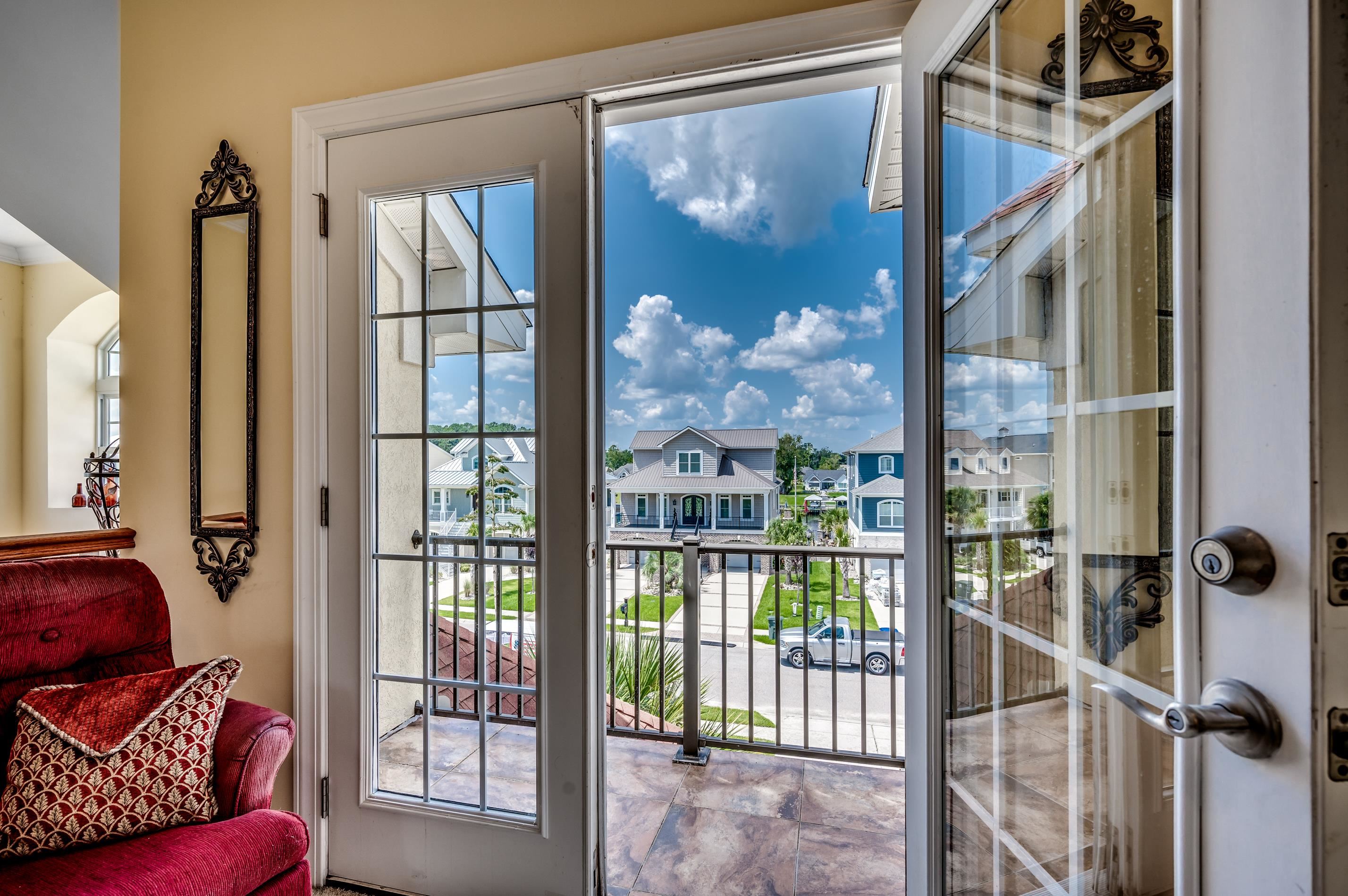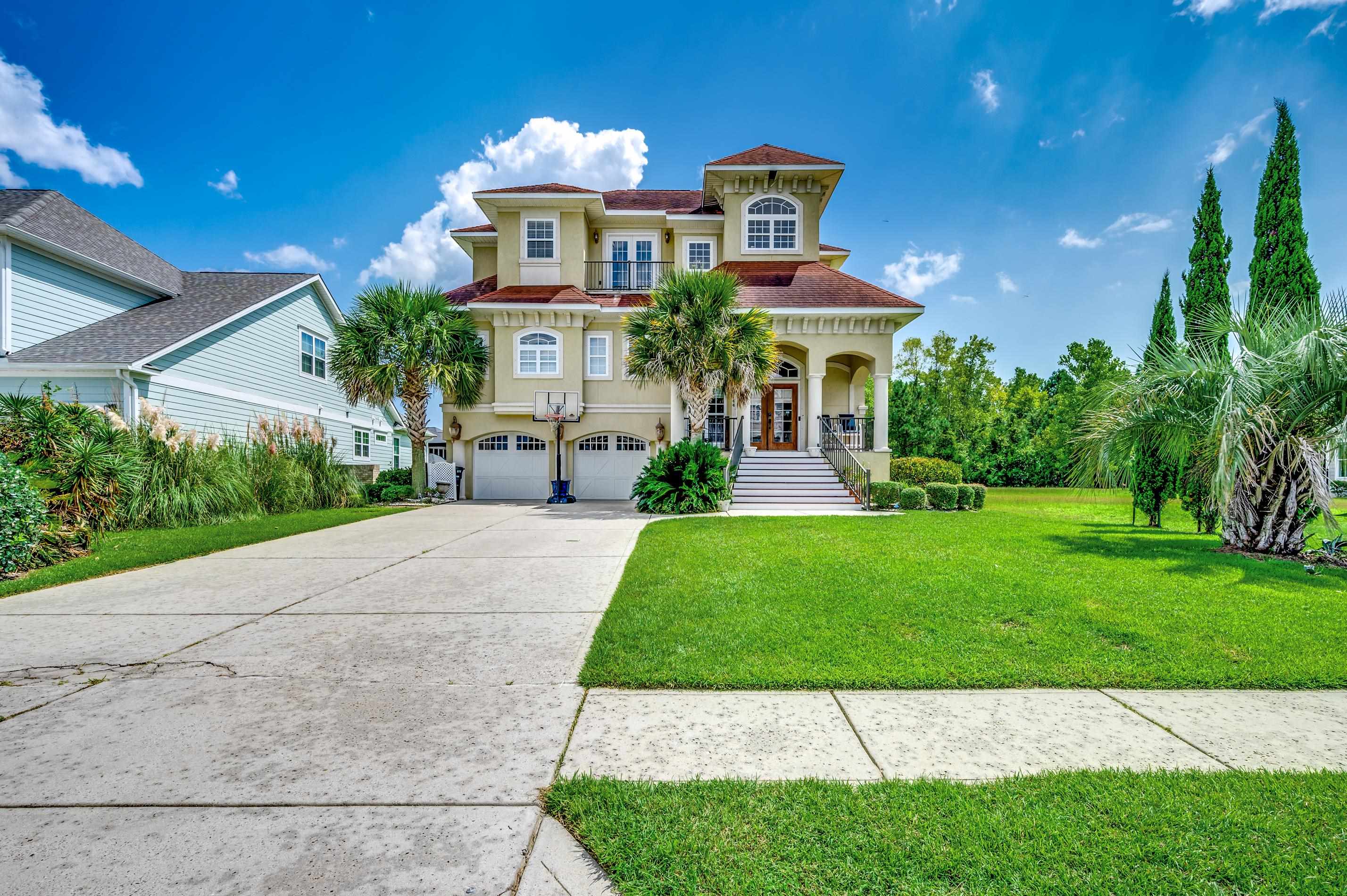 Beautiful 5BR/4.5BA spacious home in the Intracoastal Waterway community of Palmetto Harbor. This home offers fantastic views of the waterway on the front and a small lake on the back. The front steps take you up to the second floor, the main floor where you will find your two-story living area with a fireplace and an open-concept kitchen and dining area. 2 sets of double glass doors lead out to a covered porch overlooking the lake. The gorgeous kitchen boasts granite countertops, pendent lighting, and stainless steel appliances. Off the kitchen is your laundry room/pantry. Also on the main floor, you will find your master suite with a walk-in closet, a private bath that includes a jacuzzi tub, a large walk-in shower, and a private water closet, and double doors leading onto the rear porch. Head up to the 3rd floor and you will find a sitting area with an interior balcony overlooking the living room. This floor has 2 bedrooms each with its own bath The first floor has one bedroom, one full bath, a craft room (bedroom) with a Murphy bed and craft center with built-in shelving and table, a large storage room, and access to the 2 car garage. Some highlights of the home include hurricane shutters, recessed lighting, ceiling fans, coffered ceilings, hardwood floors, Alexa-controlled lighting and thermostat, wiring in place for a security system, Ring front doorbell, and shelving in the garage and storage room. The spacious backyard has room for a pool overlooking the lake. Palmetto Harbor in North Myrtle Beach is close to popular spots like Barefoot Landing and Tanger Outlets and is less than 10 minutes from the beach!