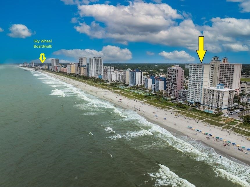 When you first enter this condo, you will be absolutely amazed by the breath-taking views of the Atlantic Ocean. What a fantastic opportunity to own this true 1 bedroom, 1 bath condo in the highly desirable Carolinian Beach Resort. This magnificent oceanfront resort has been designed to utilize every available detail to create wonderful views of the Atlantic. This unit features wall to wall and floor to ceiling windows in the living room and primary suite. This produces the best panoramic views of The Grand Strands southern shoreline. This beautifully decorated one bedroom unit has been thoughtfully upfitted with custom handcrafted furniture pieces. The owners commissioned a New England craftsman to build them two mahogany top end tables and coffee table, a hightop inlayed game/dining table, two nightstands, a storage chest, a dresser, and an entertainment console that offers locking soft closed drawers and locking cabinets. These pieces were thoughtfully designed to allow them to store as many of their personal items as possible. The owners love to be able to fly in and travel lite. They know their personal items are locked safely away and will be waiting for them during their next stay. Convenience abd functionality at it's best! The unit offers a nice size balcony perfect to enjoy your morning coffee and afternoon sunsets. This condo lives like a home not a hotel. It boasts a full-sized kitchen upgraded with granite countertops, a living room large enough to accommodate a queen size sleeper sofa and comfy side chair, a large bathroom featuring a granite top vanity and garden tub/shower combo, Stackable Washer/Dryer, a primary En Suite large enough for a king size bed and sitting area adjacent to one of your balcony accesses. What more could you want? What about amazing amenities? Carolinian Beach Resort amenities include an oceanfront pool, an oceanfront sundeck, a Tanning Lawn, a Winding lazy river, hot tub, kiddie pool and fitness center. The Location is close to the Myrtle Beach Convention CenterBroadway at the Beach Entertainment ComplexArea Sports Complexes...walking distance to great restaurants, Myrtle Beach Boardwalk, and Sky Wheel. Location! Location!! Location!!! HOA is all inclusive of your utilities even your Wi-Fi and interior electric. Don't miss the oportunity to view this property today.