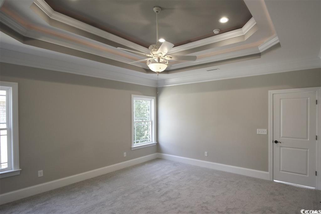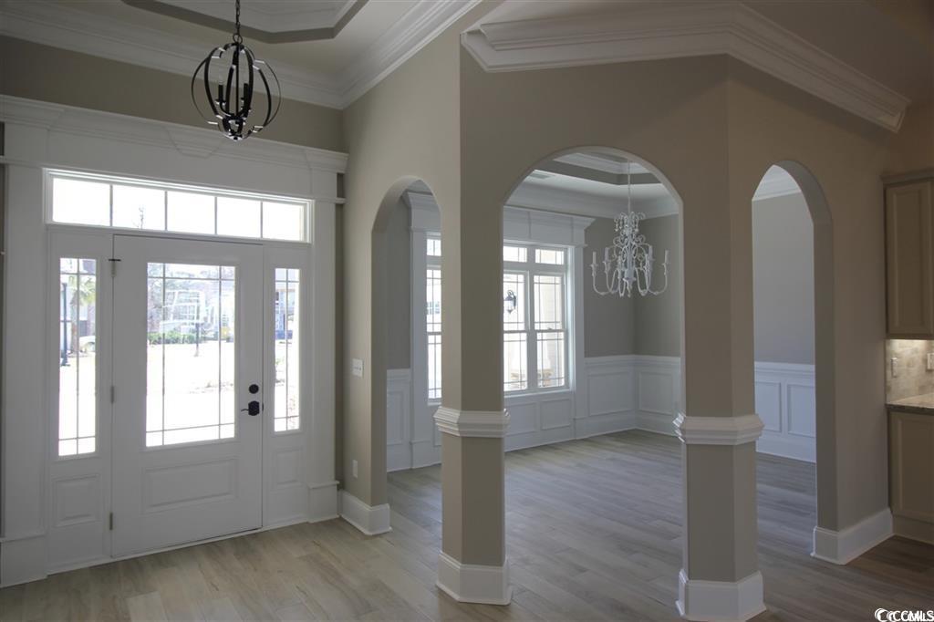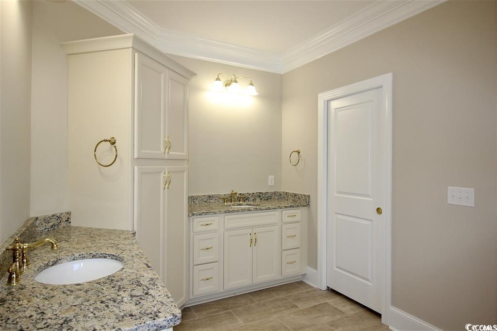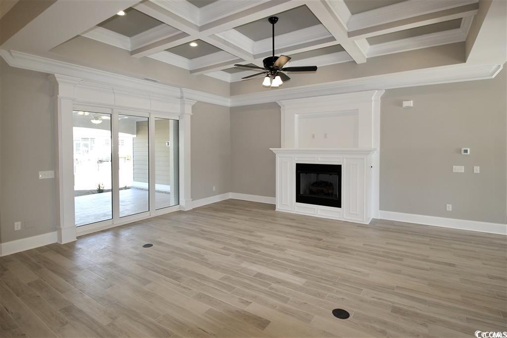 This brand-new custom home boasts 5 spacious bedrooms and 4 luxurious bathrooms, designed for an exceptional lifestyle. Highlights include 12' ceilings in the foyer, great room, dining room, kitchen, and breakfast area, with custom coffered ceilings in the great room and double tray, rope-lit ceilings in the dining room and master bedroom. The home features stunning LVP flooring throughout, complemented by exquisite crown molding and trim details. You'll be impressed by the arched cased openings, bullnose corners, deluxe 5 1/4"" crown moldings, chair rail, 7 1/4"" baseboards, wainscoting, and custom window trim that enhance the open, airy floor plan. Custom cabinetry and quartz countertops, along with porcelain sinks in the kitchen, master bathroom, guest bathrooms, and laundry room, add a touch of elegance. All closets are custom-designed with upgraded wood shelving. The expansive covered rear porch, features porcelain tile flooring, 2 ceiling fans, 10 recessed lights, and an outdoor TV setup. The home includes an oversized, finished 3.5-car garage with epoxy flooring. Wild Wing Plantation offers two award-winning golf courses, a practice facility, pro-shop, and restaurant. Conveniently located off Highway 501, the community is close to shopping, dining, attractions, and Coastal Carolina University. Square footage is approximate and not guaranteed; buyers are responsible for verification. New construction homes may be customized and subject to changes.