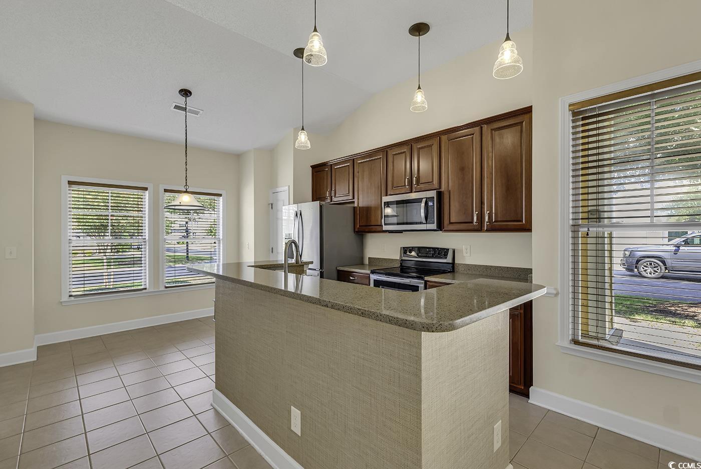 Welcome to Coldstream Cove a quaint golf community in Prince Creek across from TPC Myrtle Beach golf course. TPC is a PGA Tour-caliber golf course designed by Tom Fazio and awarded 5 stars by Golf Digest. This townhouse has 3 bedrooms and 2.5 baths with the primary bedroom/en-suite on the first level. There are two additional bedrooms and a full bathroom on the second level. It also features a loft that can be used as a TV room, office, etc. This spacious townhouse is an end unit and so unique that it has a Carolina room and back patio which is great for hosting BBQs and/or just sipping your coffee on those quiet mornings. One owner since it was built and this unit was never rented. Owners did some enhancements to the unit, updated carpets in the bedrooms, new HVAC, finished 1.5 car garage, finished attic with climate control, new dryer and stainless steel appliances. Kitchen boasts a breakfast bar, granite countertops, pantry, laundry closet and a kitchen nook. Also has a dining area that leads into the living room. Enjoy entertaining in this open floor plan. Turn on the fireplace on those cool nights, play a round of golf year round, or take a dip in the community pool on those scorching summer days. Yes folks, the pool is only a few steps away. Perfect as a primary residence or as a vacation home. Just 2 miles to the Marsh Walk, 4 miles to the beach, and right at the Dustin Johnson Golf School for those golf lessons. Conveniently located near all the attractions, restaurants, shopping and more. Don't miss your opportunity to own this meticulously maintained townhome and start living the DREAM!! Some photos in this listing have been virtually staged. All measurements and square footage are approximate and not guaranteed. Buyer's agents are responsible for verifying.
