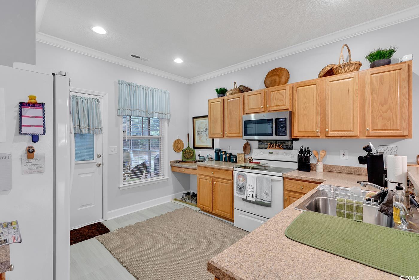 Stunning Fully Furnished 3-Bedroom Condo with Loft and Year-Round Carolina Room. This beautifully designed condo features 3 spacious bedrooms, 3.5 well-appointed bathrooms, and an additional loft area that offers versatility for an office, playroom, or guest space. The property includes a one-car garage, providing convenience and extra storage. Enjoy peace of mind with a newly installed roof, ensuring durability and protection for years to come. The first floor showcases elegant luxury vinyl planking and tile flooring, combining style with easy maintenance. This seamless flooring creates a cohesive flow throughout the living and dining areas. The bright and airy open-concept layout is perfect for entertaining, featuring a spacious living room that invites natural light and warmth. Relax in the inviting Easy Breeze Carolina room, equipped with a portable heater and air conditioner, allowing you to enjoy this additional space year-round. Whether you want to sip your morning coffee or host evening gatherings, this versatile room adapts to your needs. The master suite is a true retreat, complete with an en-suite bathroom and ample closet space. The additional bedrooms are generously sized, ensuring comfort for family and guests. Nestled within the sought-after Prince Creek community, this property offers abundant amenities, including walking trails, pools, and clubhouses. Golf enthusiasts will appreciate the world-class golfing opportunities nearby. With a focus on quality and convenience, this home offers a low-maintenance lifestyle, allowing you to spend more time enjoying your new space and less time on upkeep. Don't miss this opportunity to own a stunning condo that perfectly balances comfort, style, and functionality within a vibrant community. Schedule your private showing today and experience all that this exceptional property has to offer!