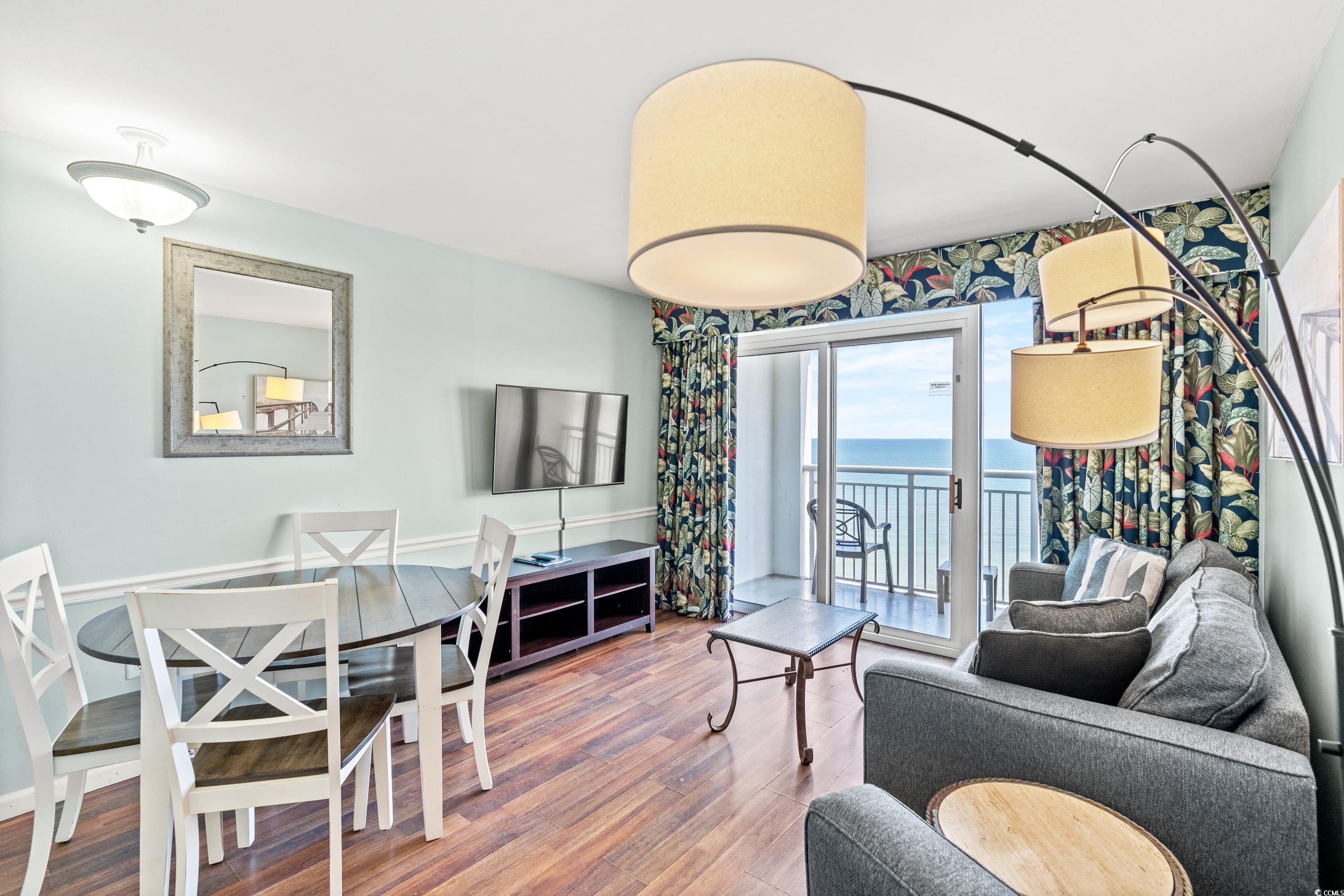 Camelot by the Sea...The place you want to be. This oceanfront 1BD/1BA condominium features an expanded kitchen with upgraded ceramic tile flooring. BRAND NEW HVAC JULY 2025. The unit also offers upgraded furnishings and bedding. The views from the oceanfront balcony are truly breathtaking at anytime of the day. Camelot amenities include indoor/outdoor pools and hot tubs, lazy river, kiddie pools and a fitness center. There is an onsite coffee shop as well. The attached parking garage is a fantastic bonus protecting you from the elements and offers added piece of mind with parking. See you at Camelot.