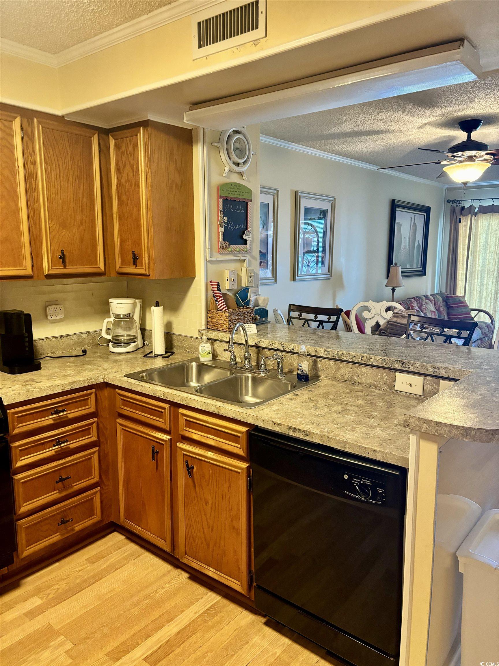 Rarely available direct ocean front, condo at this popular Shore Drive resort. Fully furnished and beautifully maintained three bedroom, two and one-half bathroom vacation home. Many great features including two screened porches plus open balcony off of master bedroom, private laundry room with full size washer and dryer, split bedroom floorplan, open kitchen overlooking living room, two swimming pools, playground, two elevators in building and covered parking. Central HVAC. This complex has recently had extensive updates to the exterior including all new windows, sliding glass balcony doors, complete new balconies, exterior siding, paint and more! Close to Tanger Factory Outlets, Wal-Mart, Arcadian Shores Golf Course, lots of great restaurants and easy access to Hwys 22 and 31. Make this special condo your very own beach getaway. Call listing agent today to view this special property!! Square footage is approximate and not guaranteed. Buyer is responsible for verification.