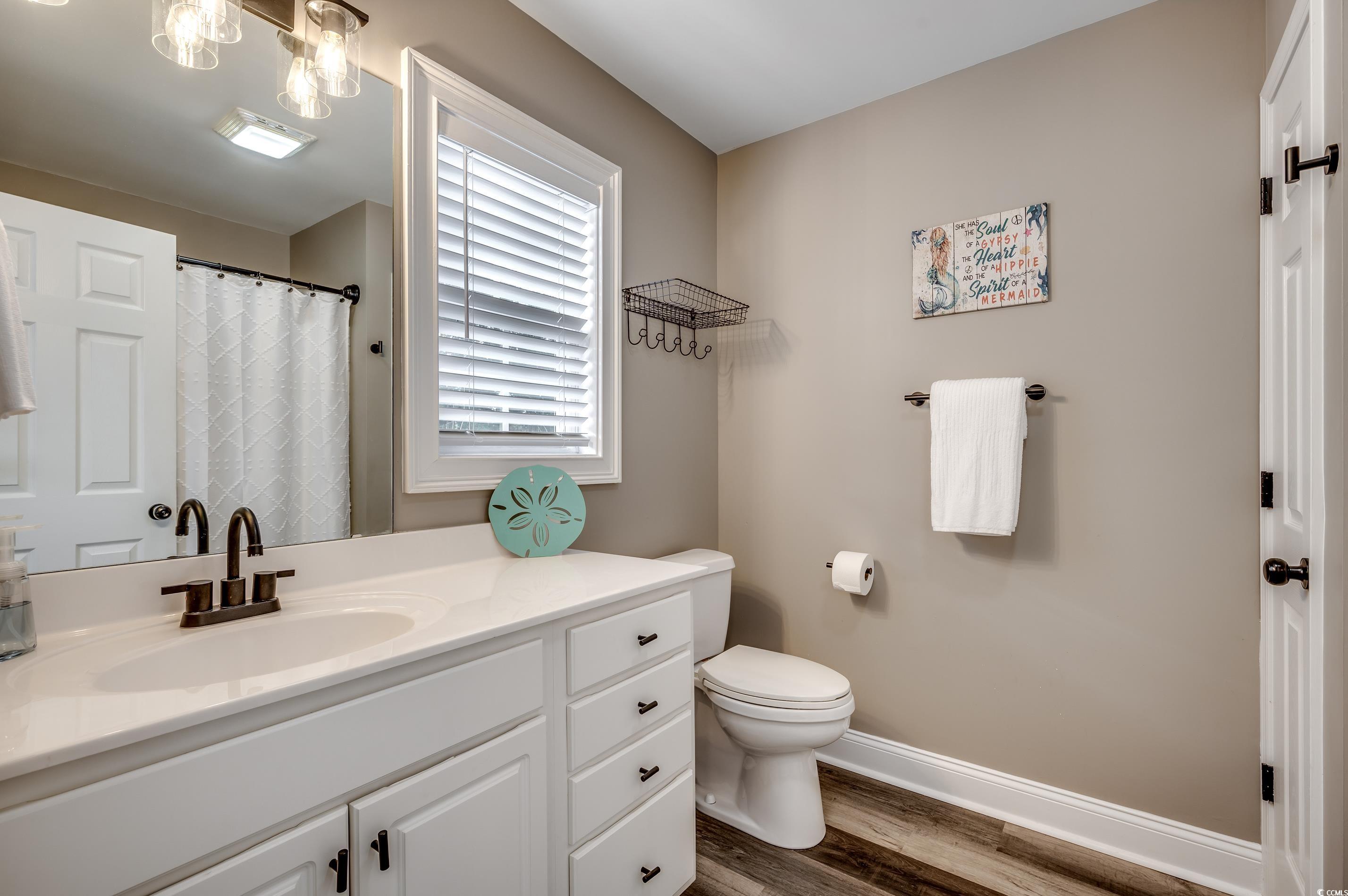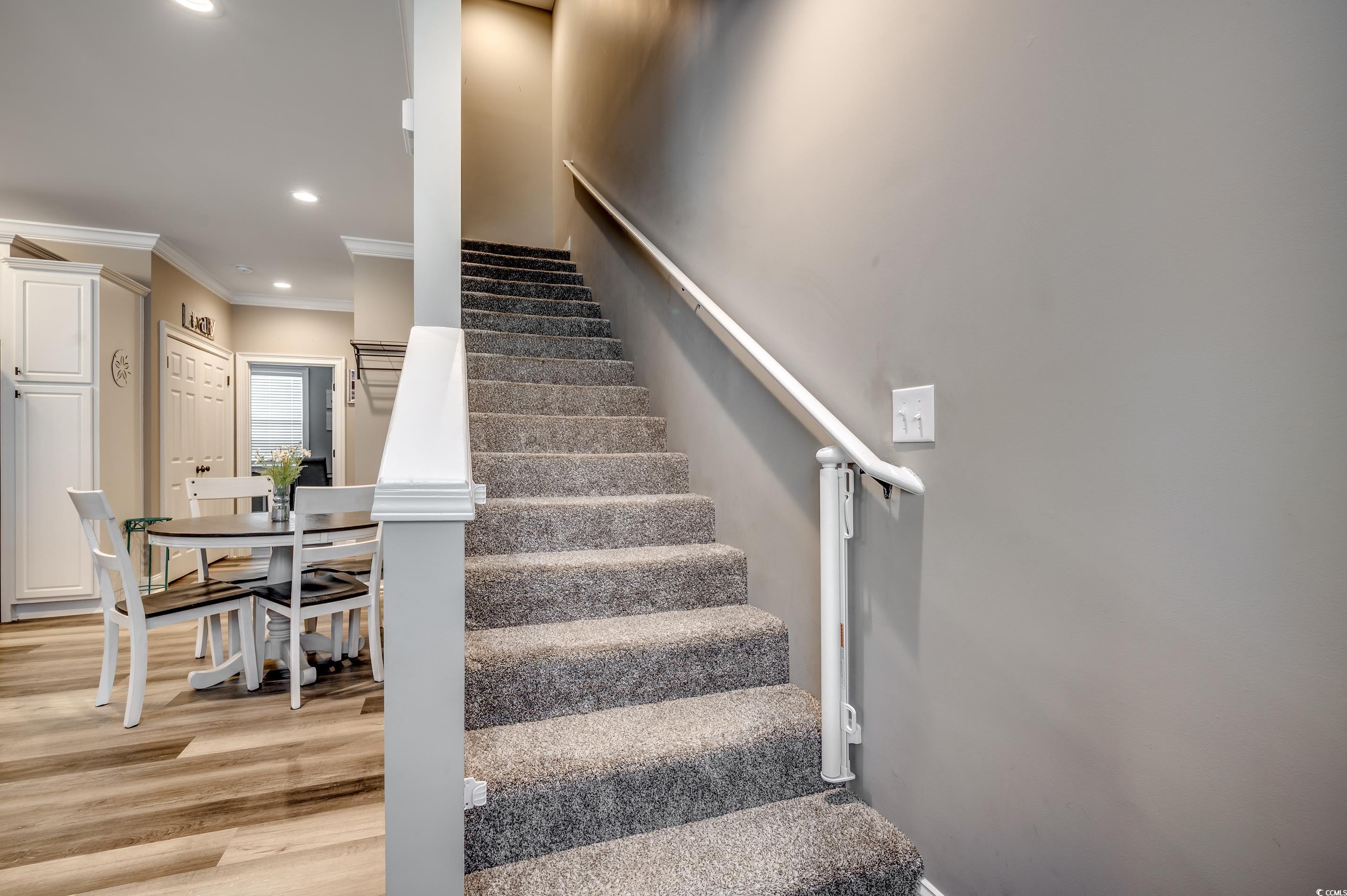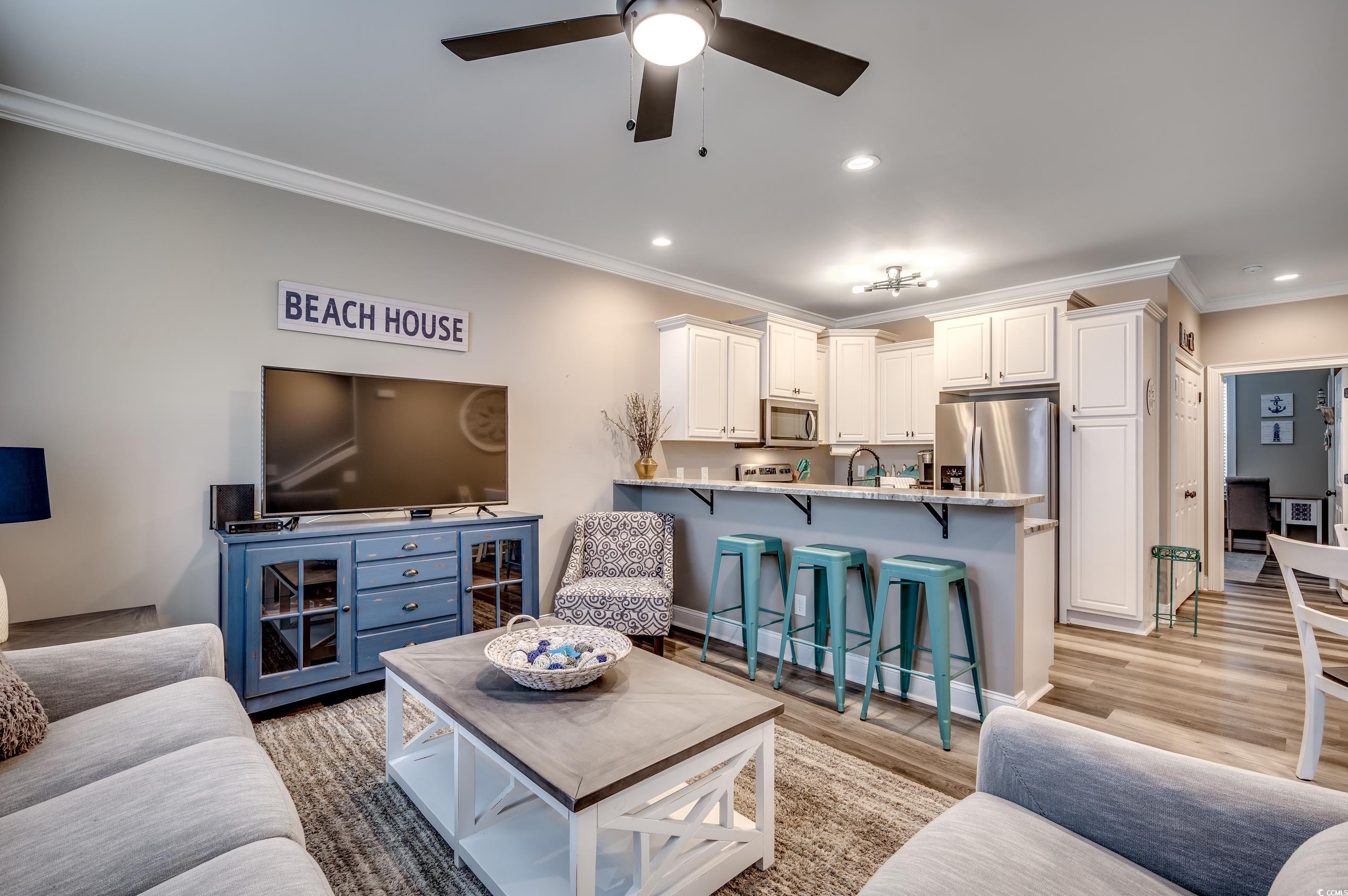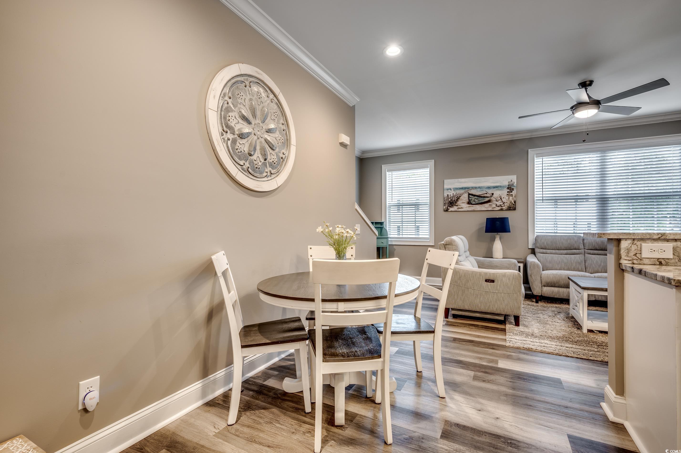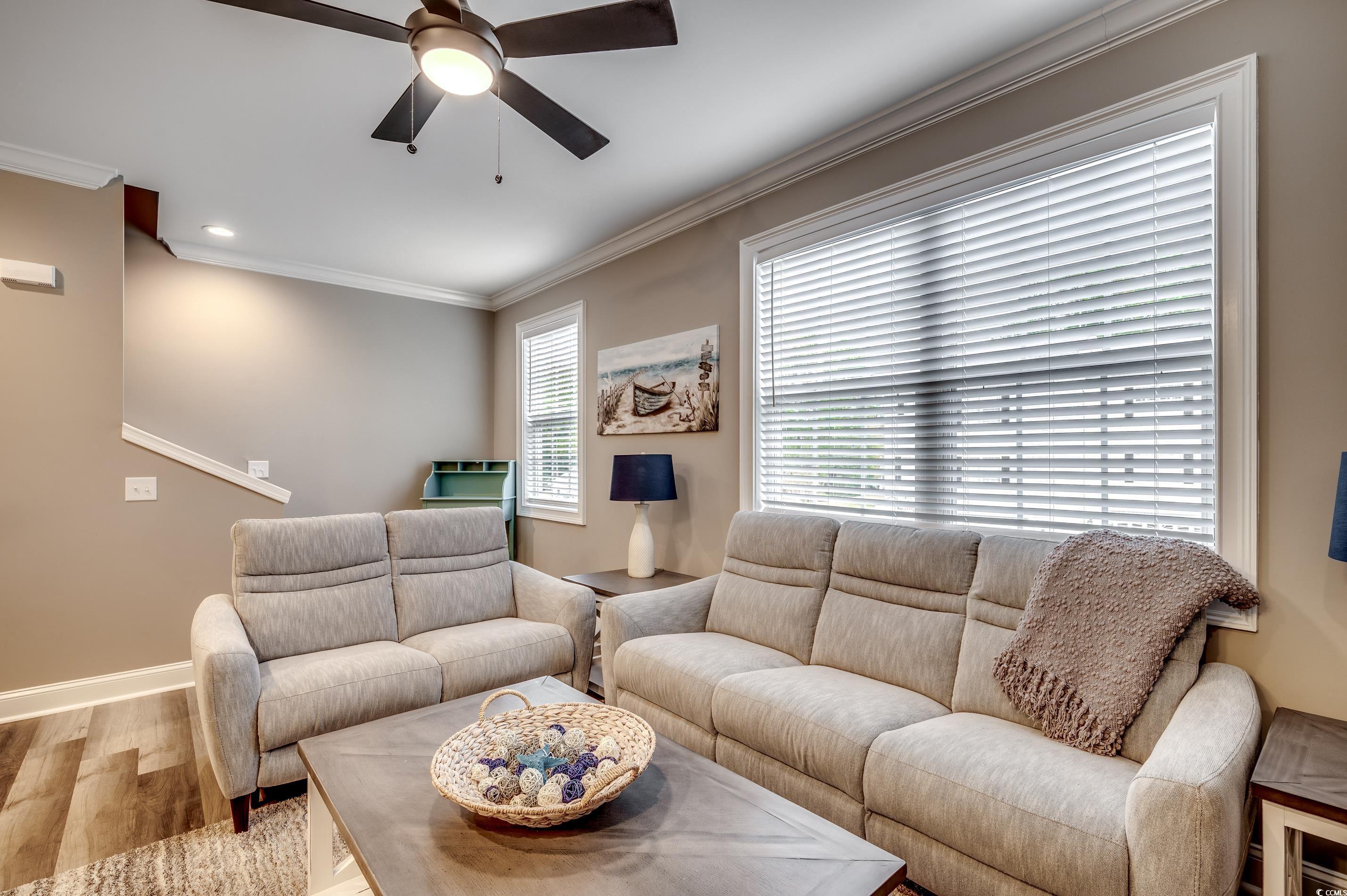 Embrace the coastal lifestyle in this beautiful 3-bedroom, 3 full bath, 2 half bath townhouse in the desirable Kingswood Community, nestled in North Myrtle Beachs vibrant Cherry Grove neighborhood. Just off Sea Mountain Hwy and less than a mile to the beach, this spacious gem offers leisure living near the ocean! Each bedroom is its own private retreat, complete with a walk-in closet, a full bathroom featuring a tub/shower combo, and a vanity. The garage is a standout, with room for two cars, a workshop space, and direct access to your private, fenced paver patioperfect for entertaining or unwinding complete with landscaping beds and an outdoor shower. On the second floor, youll find an inviting open-concept space with a beautifully appointed kitchen, living, and dining area featuring sleek LVP flooring. This level is a chef's delight with a breakfast bar, stainless steel appliances, and high-end granite countertops. The primary suite is a sanctuary with a spacious walk-in closet and full-sized bathroom. The third floor is all about relaxation and fun, with a fully carpeted bonus room set up for movie nights or lounging with a built-in desk, TV, and plush sectional pit. Two additional ensuite bedrooms with walk-in closets make this space ideal for guests or family. Freshly painted in calming neutral tones and outfitted with new ceiling fans, this home is minutes from Cherry Groves best shopping, dining, and entertainment. This is a rare opportunity to own a beautifully upgraded townhouse in one of North Myrtle Beachs most desirable locations!