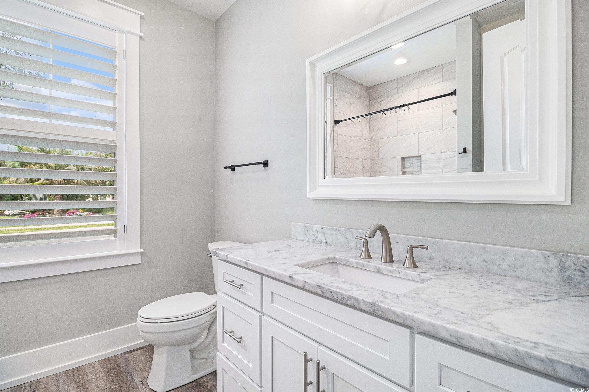 Better than new!!!! You've built your dream home walking distance to the beautiful Atlantic Ocean, but before you can move in you have to get your Plantation Shutters installed, Epoxy coating on the garage floor, and custom tile on the patio, all the little touches you didn't think of because you were busy getting the house built!!! This recently built home already has these touches and is ready for you to move in right away instead of spending the next year acquiring the perfect lot, designing a home, and finding just the right builder. Situated on a large corner lot in prestigious Surf Estates, this home was constructed in 2023 and has seen all the improvements you would make if you had just purchased the home. Built on a slab for easy walk in entry it is NOT in a flood zone despite being just blocks to the ocean. Clad with cement fiber siding the exterior boasts stone accents, custom tile on the rear porch, and tongue and groove wood accents on the exterior ceilings. On the interior you have a spacious open-concept floorplan with Luxury Vinyl Plank Flooring, Marble Counter Tops, and Stainless Appliances. This home is loaded with custom features such as the stone fireplace with custom built-ins, tray ceilings, crown molding throughout and custom casements. The layout is an extremely livable layout featuring a split floor plan with a primary suite that has access to the laundry room from the large walk in closet. The bonus room above the garage features a full bathroom so that any additional guests have their own accommodations. All of this while being located in beautiful North Myrtle Beach, just steps to the beach and a short drive from all of the shopping and dining that the Grand Strand has to offer. Do not delay!!! Make your dreams come true today!!!