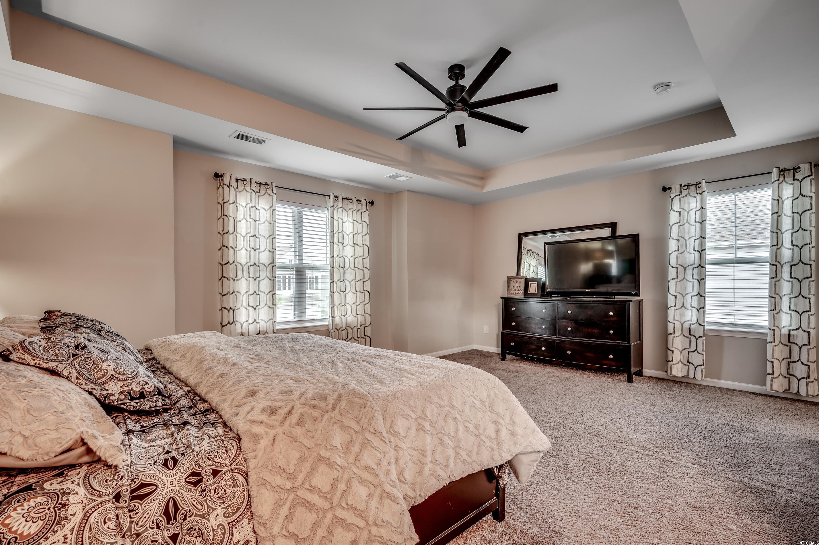 PrimaryBedroom: TrayCeilings, CeilingFans, LinenCloset, WalkInClosets