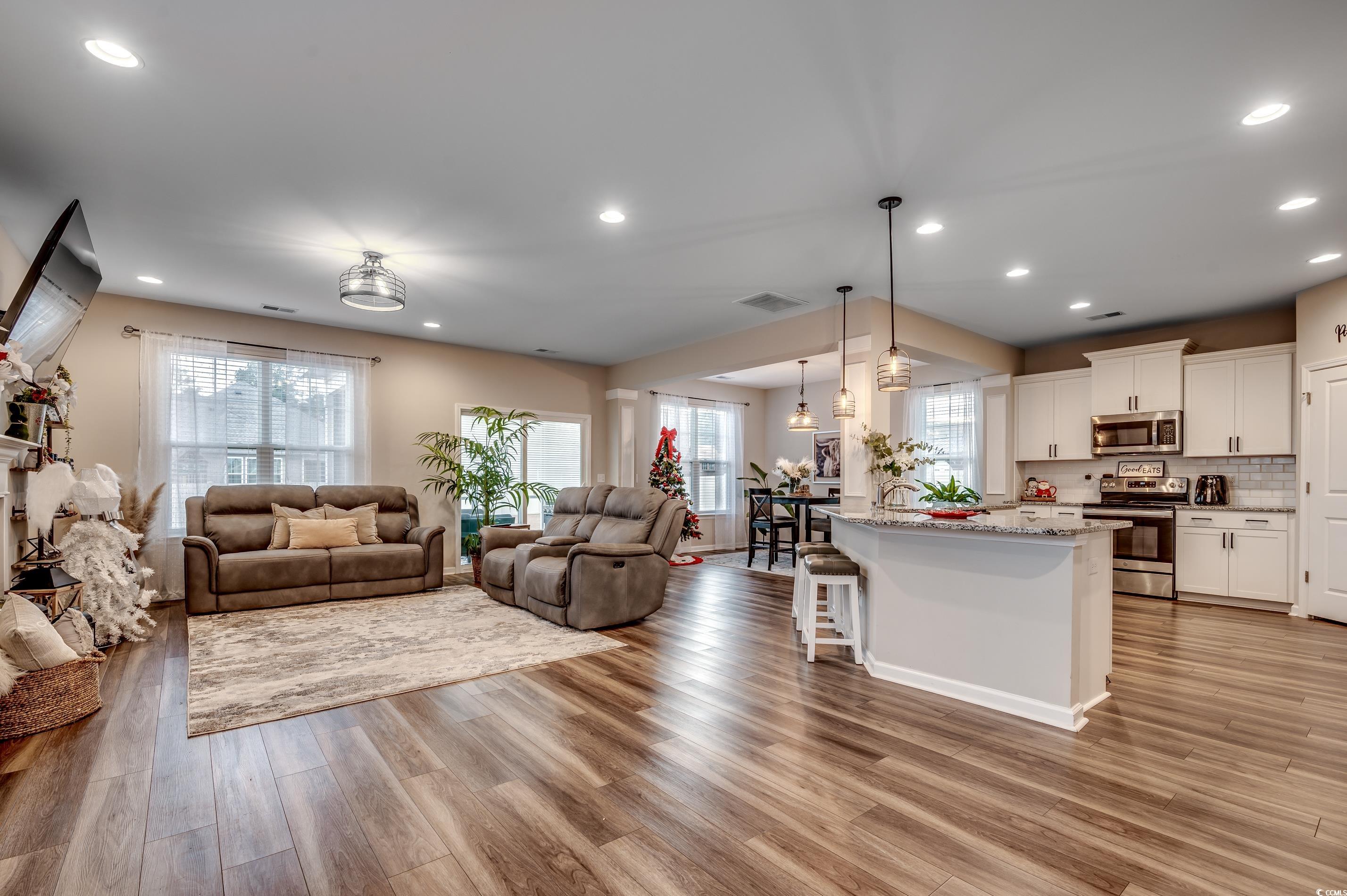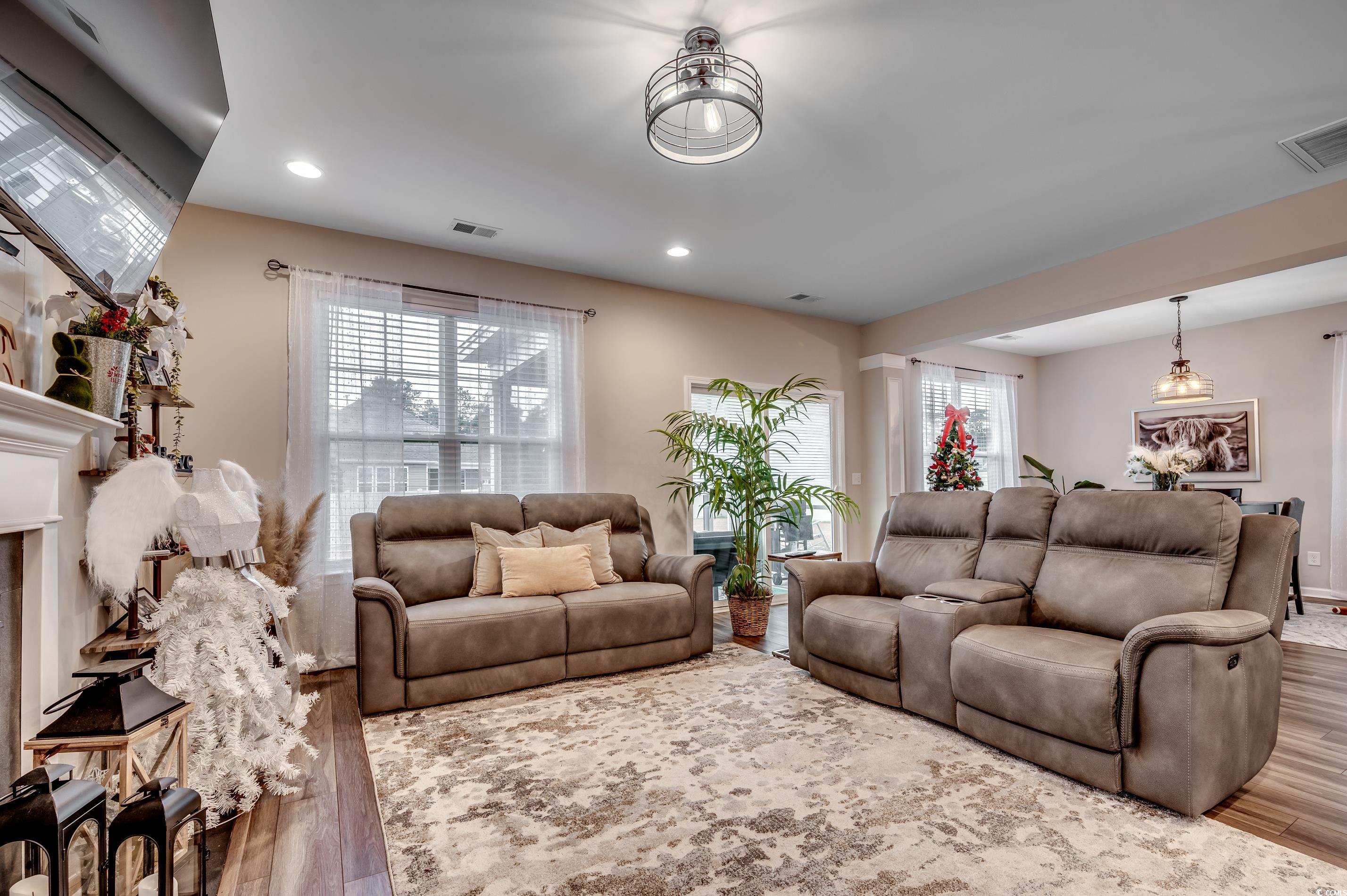Step inside this beautiful home and be greeted by a charming foyer that flows effortlessly into a spacious, open-concept great roomperfect for entertaining and everyday living. The heart of the home is the kitchen, where the curved granite countertop has been upgraded to a single, expansive level, creating a massive counter space and seating for at least five. The kitchen also boasts stunning white cabinetry, a classic tile backsplash, stainless steel appliances, and a pantry for ample storage. Just off the kitchen, youll find a versatile bonus area designed for a home office and drop zonepractical and stylish. The adjacent family room exudes farmhouse charm with custom built-ins and shiplap details framing the cozy gas fireplace. Hosting dinner parties is a breeze in the formal dining room, which offers a seamless flow for entertaining. Step outside to enjoy the screened-in porch, leading to an oversized patio and a fully fenced backyardspacious enough to add a pool! The large garage is a dream for hobbyists, featuring built-in shelving and a 220V outlet for all your projects. Upstairs, youll discover a generously sized master suite, two large guest bedrooms, and a loft area perfect for a playroom, rec room, or additional lounge space. This home is nestled in the highly sought-after Clear Pond community, where resort style amenities are abound! Clear Pond offers two sparkling pools, a clubhouse, a fitness center, walking trails around a serene lake, playgrounds and more. Conveniently located near top-rated schools, Coastal Carolina University, Conway Hospital, shopping, dining, golf, and just minutes from the Grand Strands beautiful beaches. Don't delay - arrange for a private showing today!