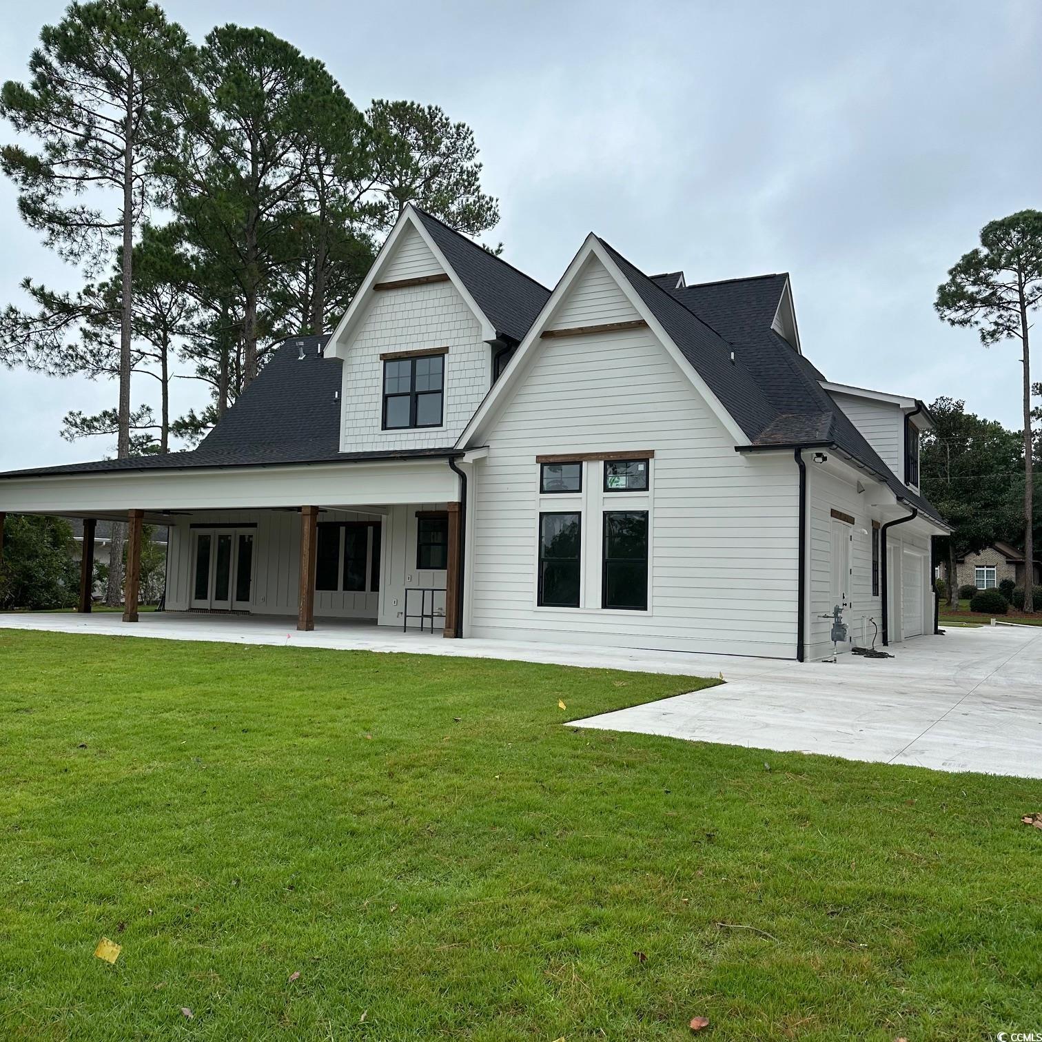 VERY RARE!!!!! NEW CONSTRUCTION EAST OF HWY 17 LESS THAN MILE FROM THE BEACH. NO HOA, LOCATED ON LAKE NEAR ARCADIAN GOLF COURSE. 5 BEDROOMS ALL HAVE THEIR OWN BATH (Master and Guest Suite on main level) LARGE REAR COVERED PATIO which has rough ins for Outdoor Kitchen. The main level will surely check all of the wish list items - open and airy, master suite, guest suite, great kitchen, oversized dining room with vaulted ceiling, the list goes on and on. The kitchen anchors the living spaces and will make meals and entertaining a snap. The family room with its warming fireplace is suitable for quiet times and fun game nights. The master suite is private and will allow the occupants to recharge and refreshen themselves for the next days activities. The spa-like bath adds to the luxury of the suite. Huge outdoor Covered PATIO complete with rough ins for future outdoor kitchen. The patio expands the living areas that makes entertaining a pleasure. The upper level contains three additional bedrooms, each with their own bath and walk-in-closets. The loft could be a sitting area or media center for homework or games. Over 4100 sf with 3 Car Garage and Circular Driveway with additional parking for RV if needed, separate storage area . Additional extras include Natural Gas with Tankless water heater, 8' doors with 10' ceilings on main and 9' upstairs, 48"" Kitchen Aid Cooktop with double ovens. 8' Doors on both levels. All Bedrooms have their own Bathrooms. Great Plan for Large family or plenty of room for guests. Also Sprinkler System is feed from the lake which means no Water Bill for the irrigation system in the yard.