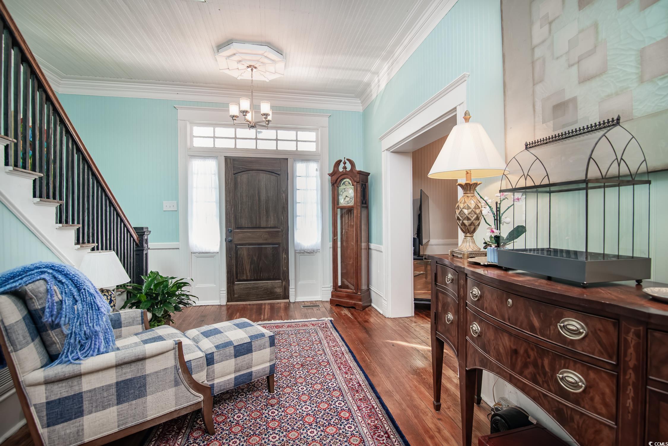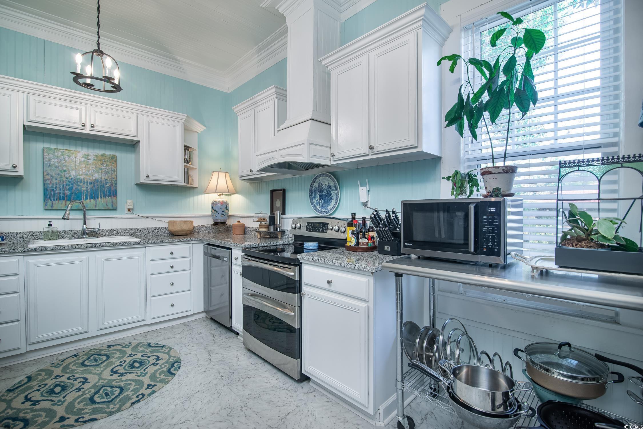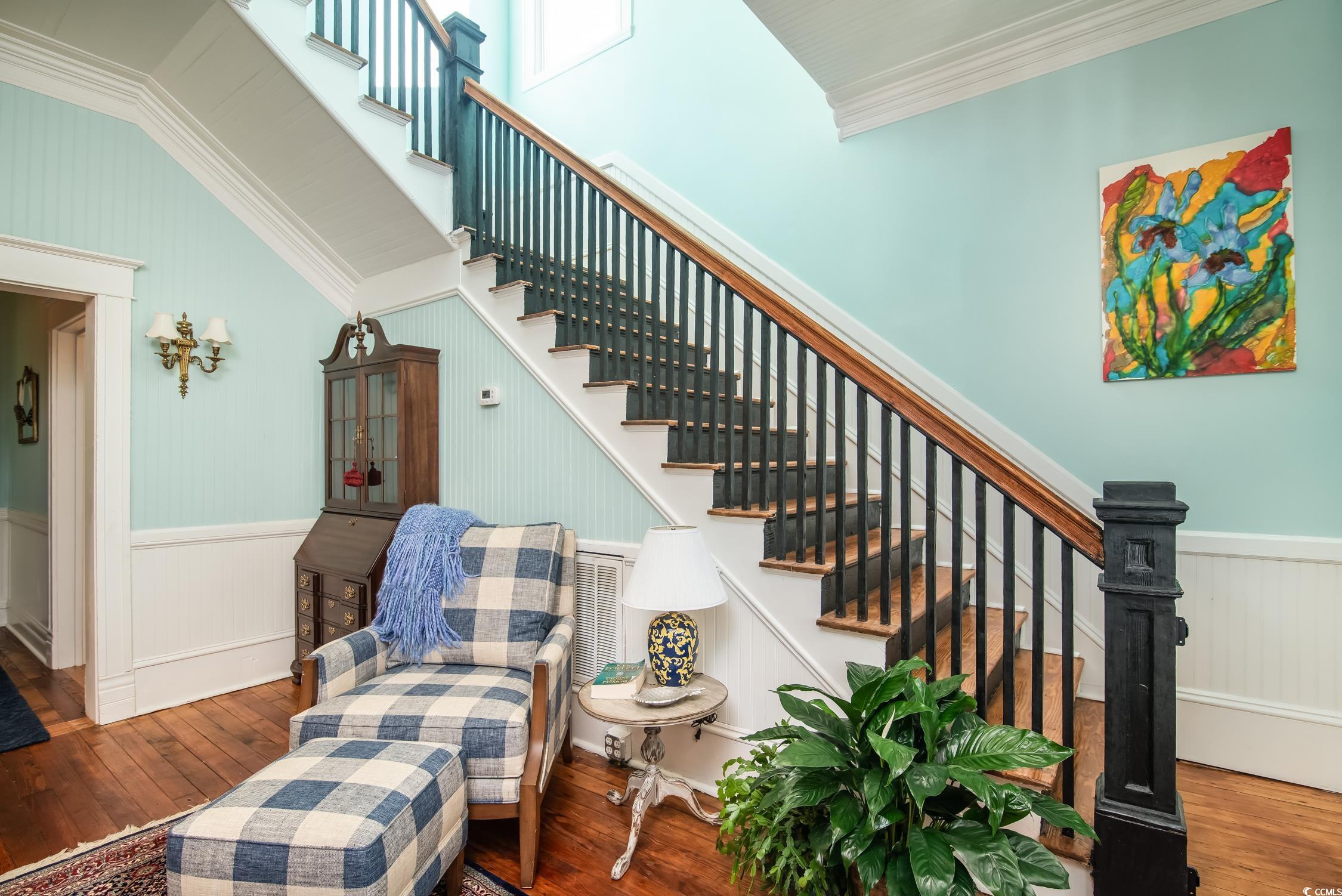 Main Street corner lot and meticulous recent renovations. Come see the extensive work and traditional setting of this home. Welcoming foyer leads to parlor and formal dining room. Kitchen has stainless appliances, granite counters, and adjoins butlers pantry with laundry. Master on the first floor with en-suite bath and dressing room. Upstairs you will find three guest rooms, a full bath and huge storage closet. Corner lot, fencing, porches, and pergola to enjoy outdoor spaces.