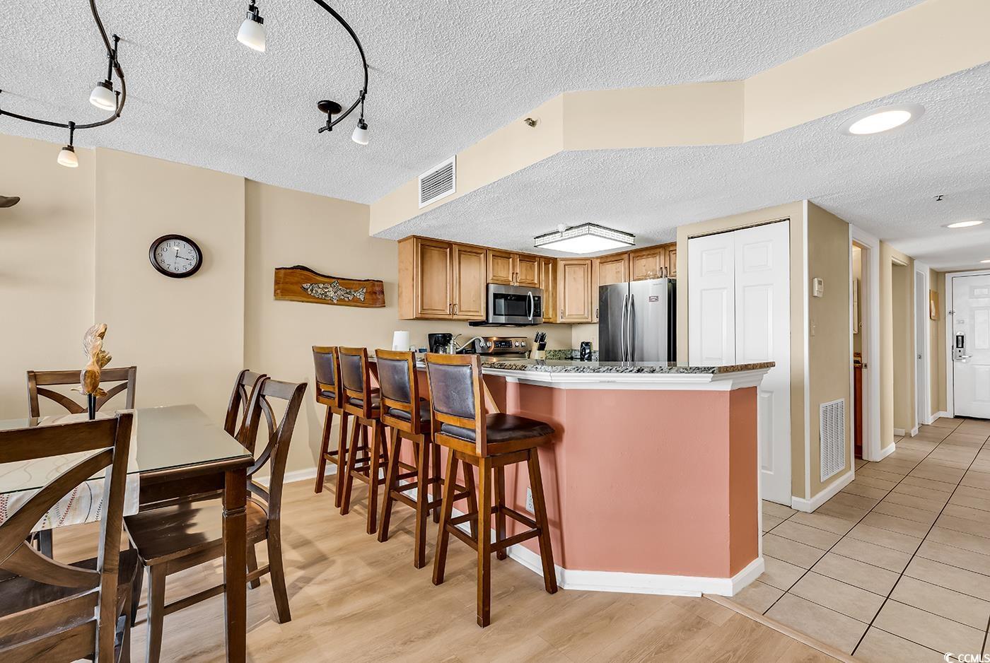 Rare Four-bedroom Three-bathroom direct oceanfront condo at Beach Colony on the 7th floor. This unit has INCREDIBLE rental projections and there are only 7 floor plans like this one in the entire building. This unit includes LVP flooring, granite countertops, stainless steel appliances, and balcony access from both the living room and also the master bedroom. According to the seller, the dishwasher and washer and dryer are about 1 year old while the refrigerator and stove are about 3 years. This resort has outdoor pools, indoor pool, lazy river, hot tub, fitness center, tiki bar, arcade, and an onsite restaurant. Beach Colony is located along The Golden Mile a premier location on the beach. It is just a few miles from Broadway at the Beach, Myrtle Beach International Airport, the restaurants, miniature golf courses, and shopping outlets that Myrtle Beach has to offer. Come by and view this condo today!