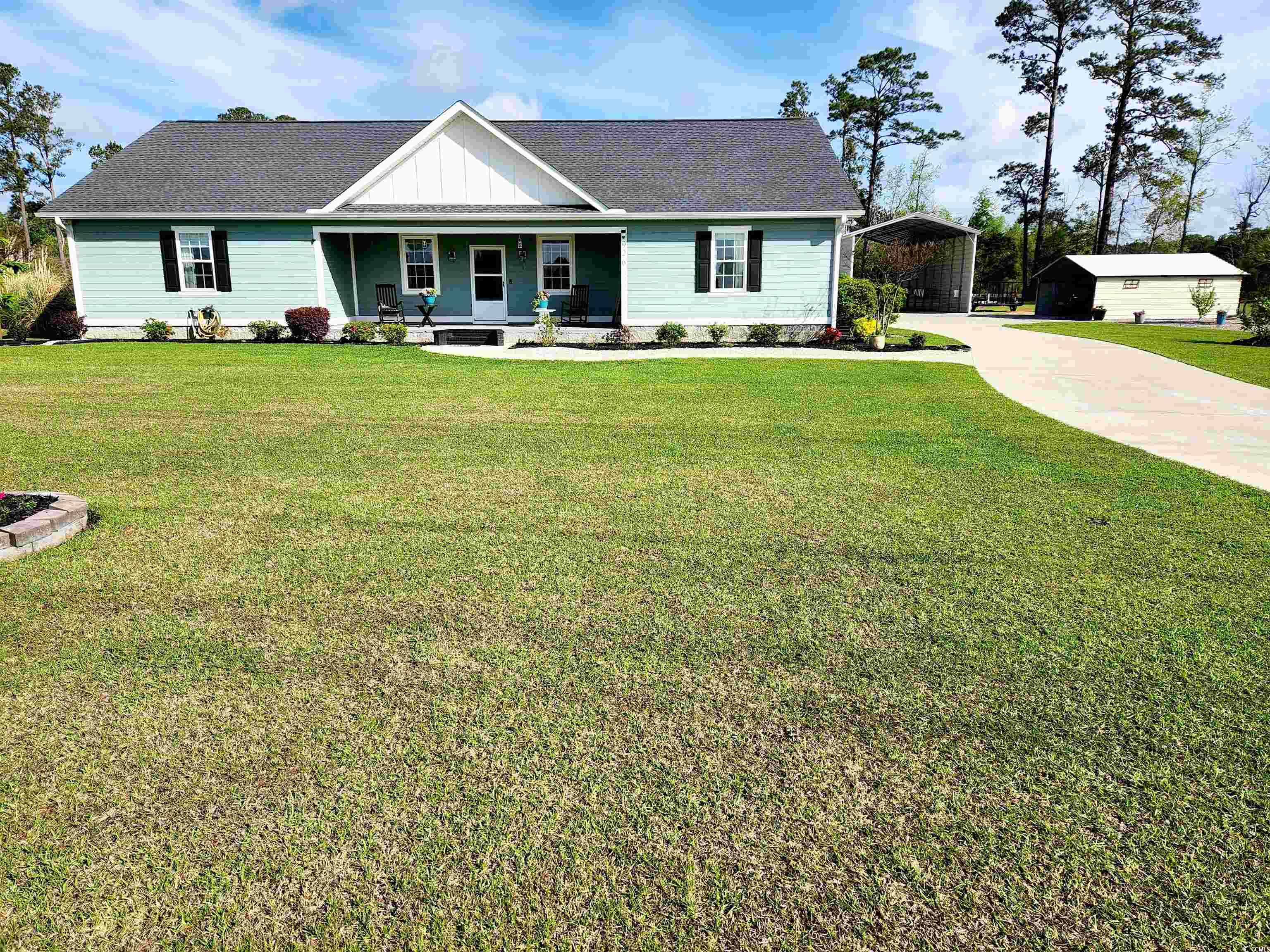 PRICED TO MOVE, View Today! Welcome to an exceptional residence that blends thoughtful design and superior craftsmanship in every corner. Spanning an impressive 2,476 square feet, this single-story treasure offers 3 generously sized bedrooms and 2 full bathrooms. From the moment you enter the spacious custom home, it exudes a sense of solidity and quality. The heart of the home could be the expansive living room with a gas fireplace, or the sprawling cook-friendly kitchen with an abundance of storage. The primary bedroom features a peaceful sanctuary complete with paired walk-in-closets en-suite bathroom including dual vanities and new luxury vinyl plank flooring. Situated in the pantry are a commercial washer & dryer, and a utility sink. Step outside and the beautifully landscaped, generous lot immediately makes its presence known. Whether your dream includes gardening, lazy pool days, riding a horse, buzzing around on the ATV, enjoying a roaring fire in the stone pit, or weekend barbecues, there is plenty of room for it all here, with space left over for very spoiled dogs. Upon approaching the 5.27acre homestead (4.27 acres zoned for farming) you notice the premier ranch style fencing, with the main entrance being a remote-controlled gate. The second gated entrance is designed for RVs, boats, farm equipment, horse trailers and other recreational toys. The impressive RV port (25 x 45 with a height of 155) contains 30 amp hook up, in addition the hefty carport has 50 amp hook up. Situated just a short drive from education and recreation, including a respected academic center, local parks and beaches, this location checks all the right boxes for convenience and a private peaceful lifestyle. No HOAs & Not in a flood zone. Listing information is deemed reliable, but not guaranteed. All measurements are approximate and listing information is the responsibility of the buyers and their agent to verify accuracy.