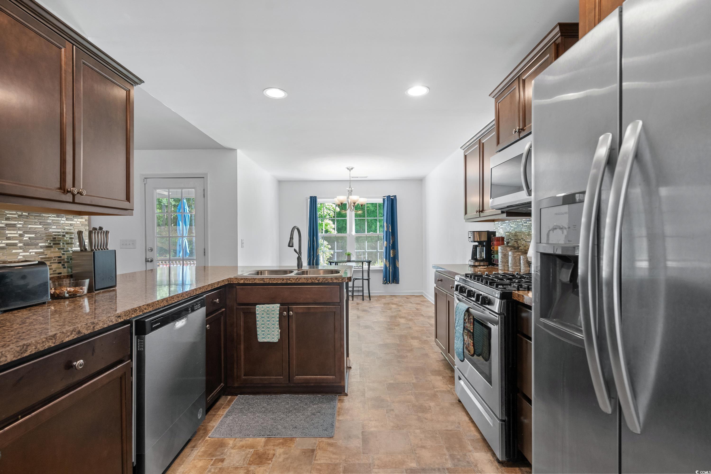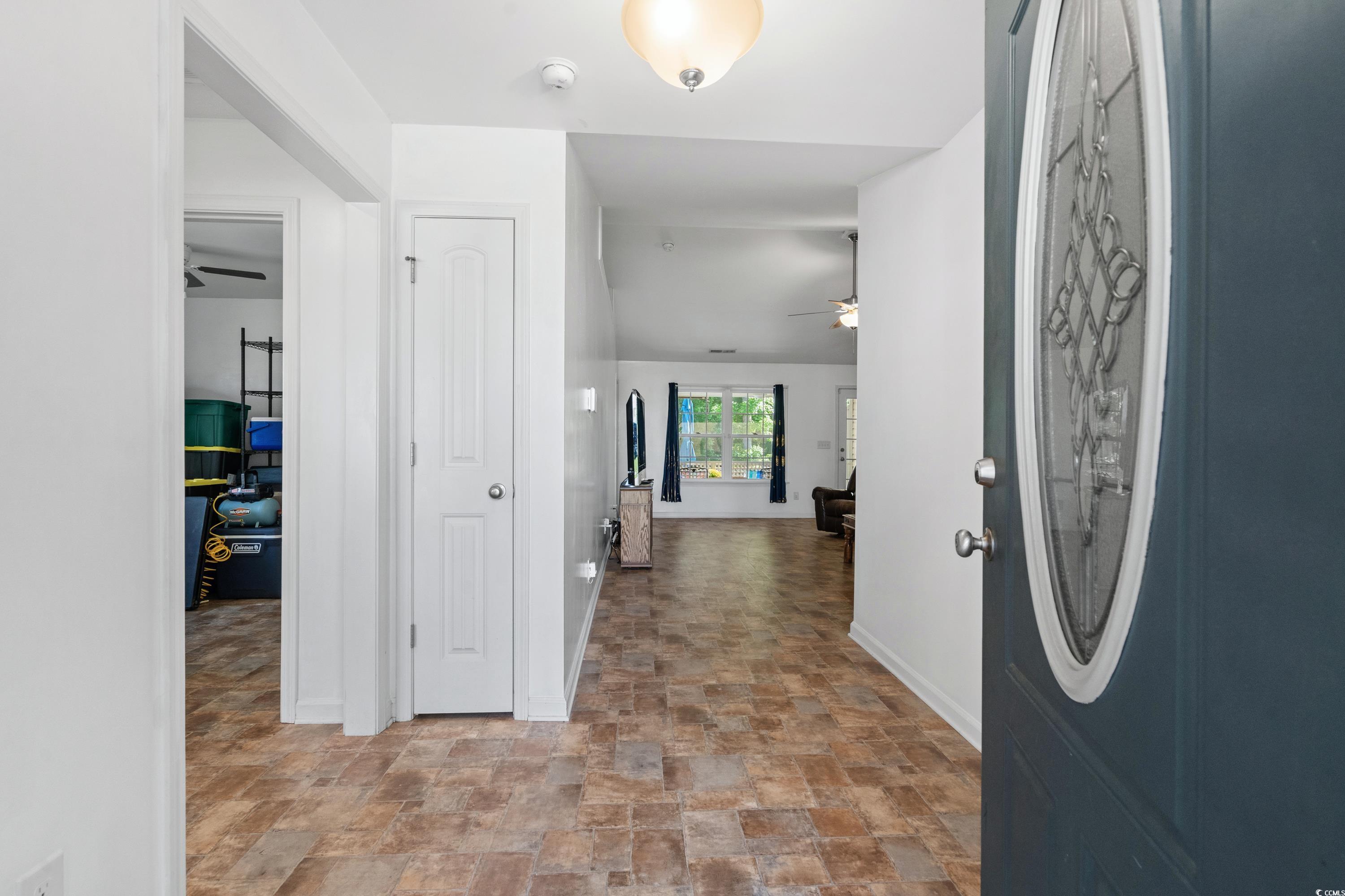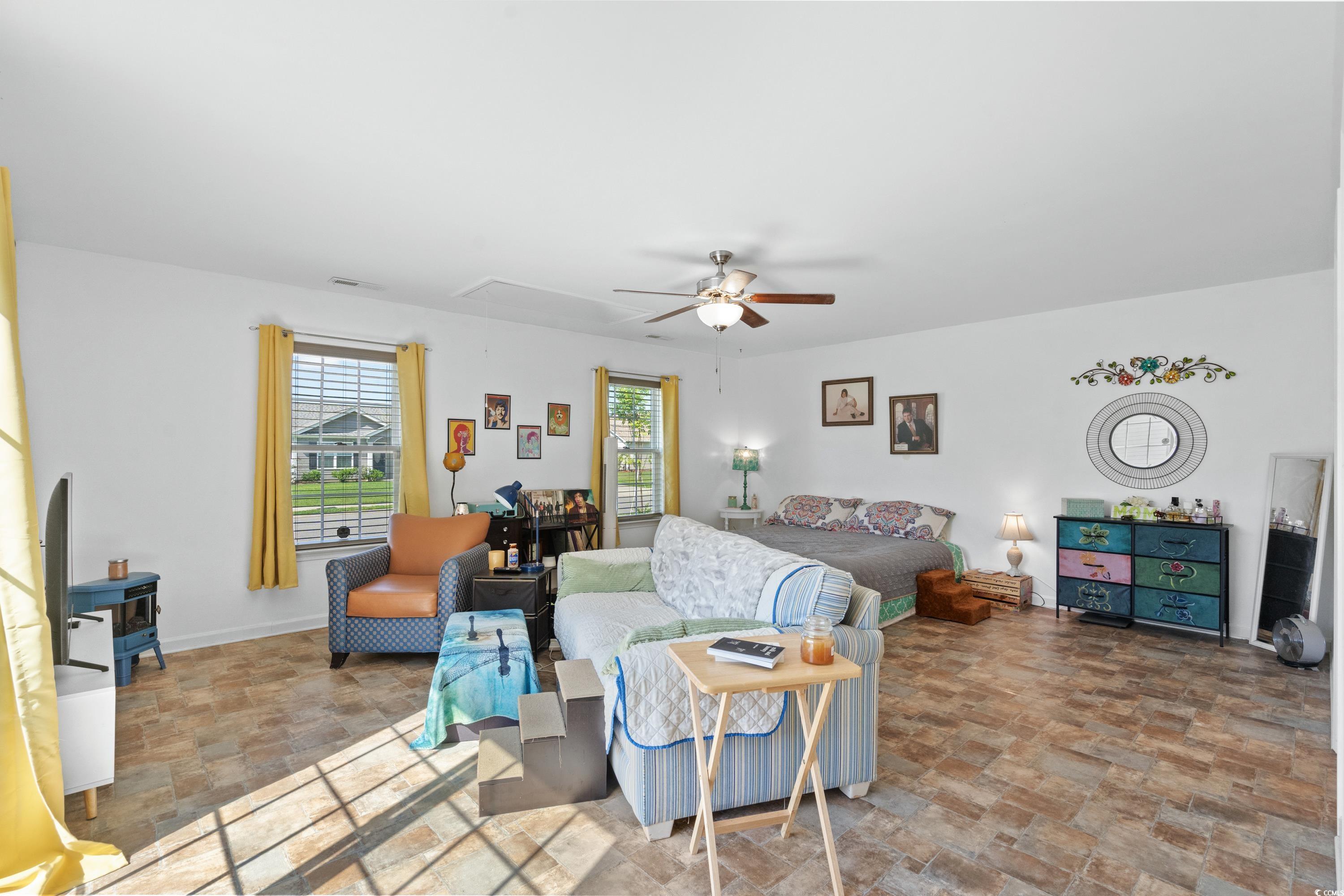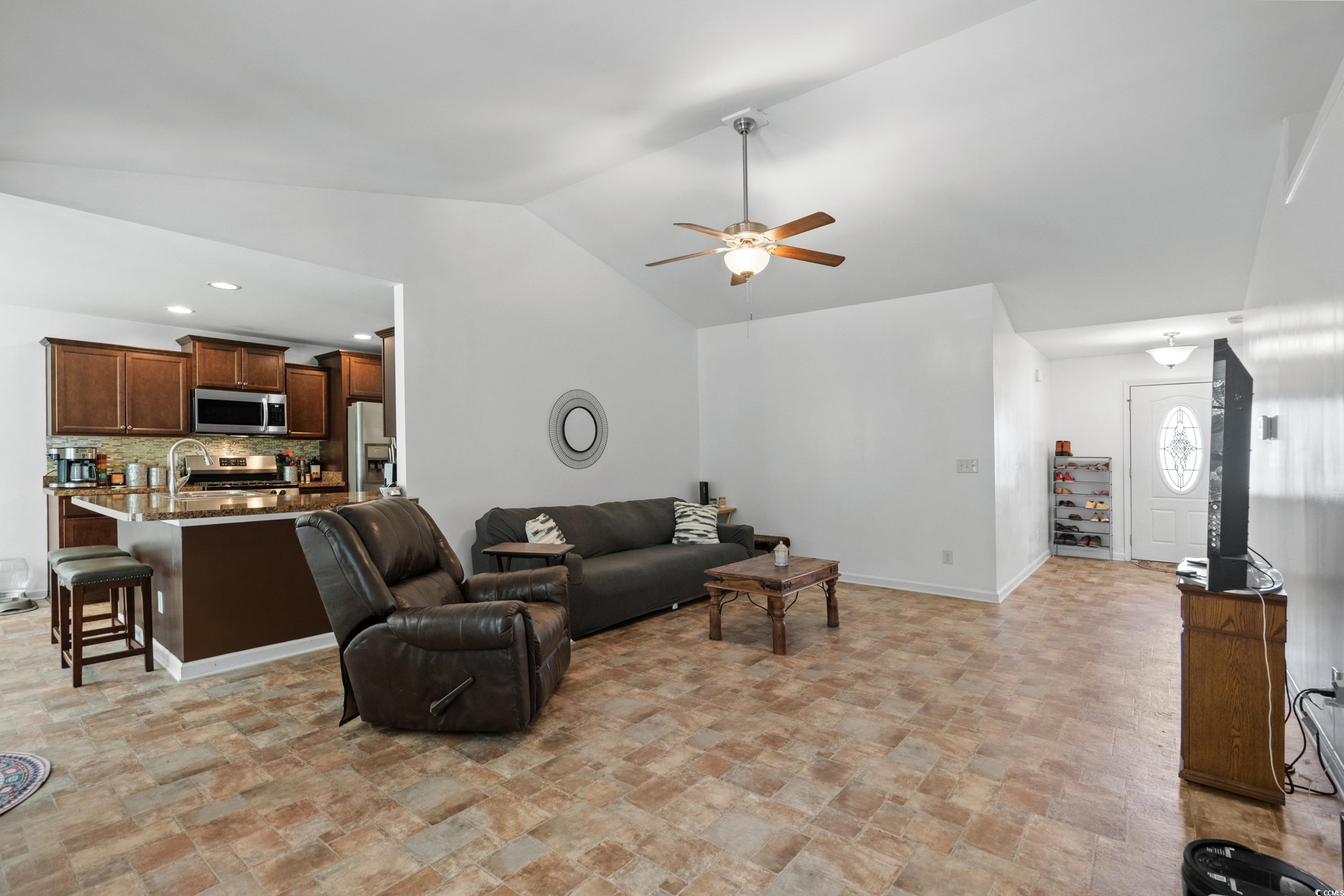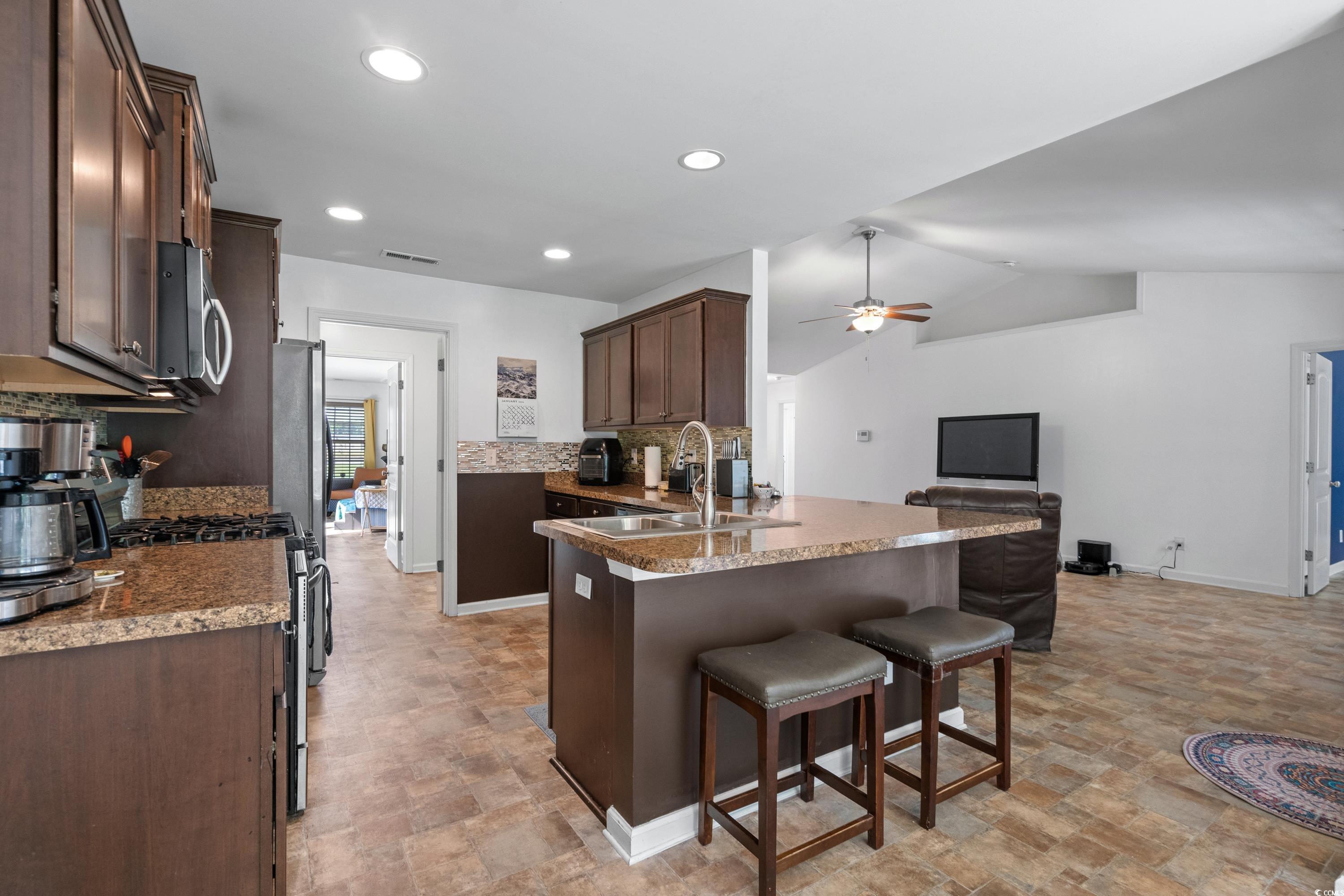Welcome to this charming 4-bedroom, 3-bathroom home nestled in the sought-after community of Woodland Lakes. As you enter through the foyer, you're greeted by a spacious main living area featuring a vaulted ceiling adorned with a fan, and an abundance of windows flooding the space with natural light, creating an inviting atmosphere for entertaining guests. The kitchen and dining area boast seamless flow, with beautiful dark cabinets that add a touch of elegance to the room. Ample counter and cabinet space make organization a breeze, while the breakfast bar provides a convenient spot for quick meals. The master bedroom is a sanctuary of its own, complete with a vaulted ceiling and a private ensuite bathroom, offering a perfect retreat after a long day. Two additional bedrooms, each equipped with ceiling fans, share a well-appointed bathroom, ideal for accommodating both residents and guests. A unique feature of this home is the fourth bedroom, which doubles as a mother-in-law suite with its own private entrance. This spacious suite offers flexibility for various living arrangements and includes its own ensuite bathroom. Convenience is key with a laundry room just off the kitchen, making chores a breeze. Step outside onto the screened porch and bask in the tranquil sounds of nature, from morning birdsong to evening crickets. The back patio provides an ideal space for outdoor entertaining. The lot backs up to mature woods adding privacy. For those with a green thumb, a garden awaits providing an opportunity for gardening enthusiasts to cultivate their own oasis. Nearby, a firepit beckons for cozy gatherings and roasting marshmallows under the stars. Woodland Lakes is also a natural gas community. Woodland Lakes offers the perfect blend of suburban tranquility and urban convenience, with easy access to Downtown Conway and the riverwalk, as well as being just 20 miles from the pristine shores of the Atlantic Ocean. Don't miss your chance to call this meticulously crafted home yours! Buyer is responsible for verification