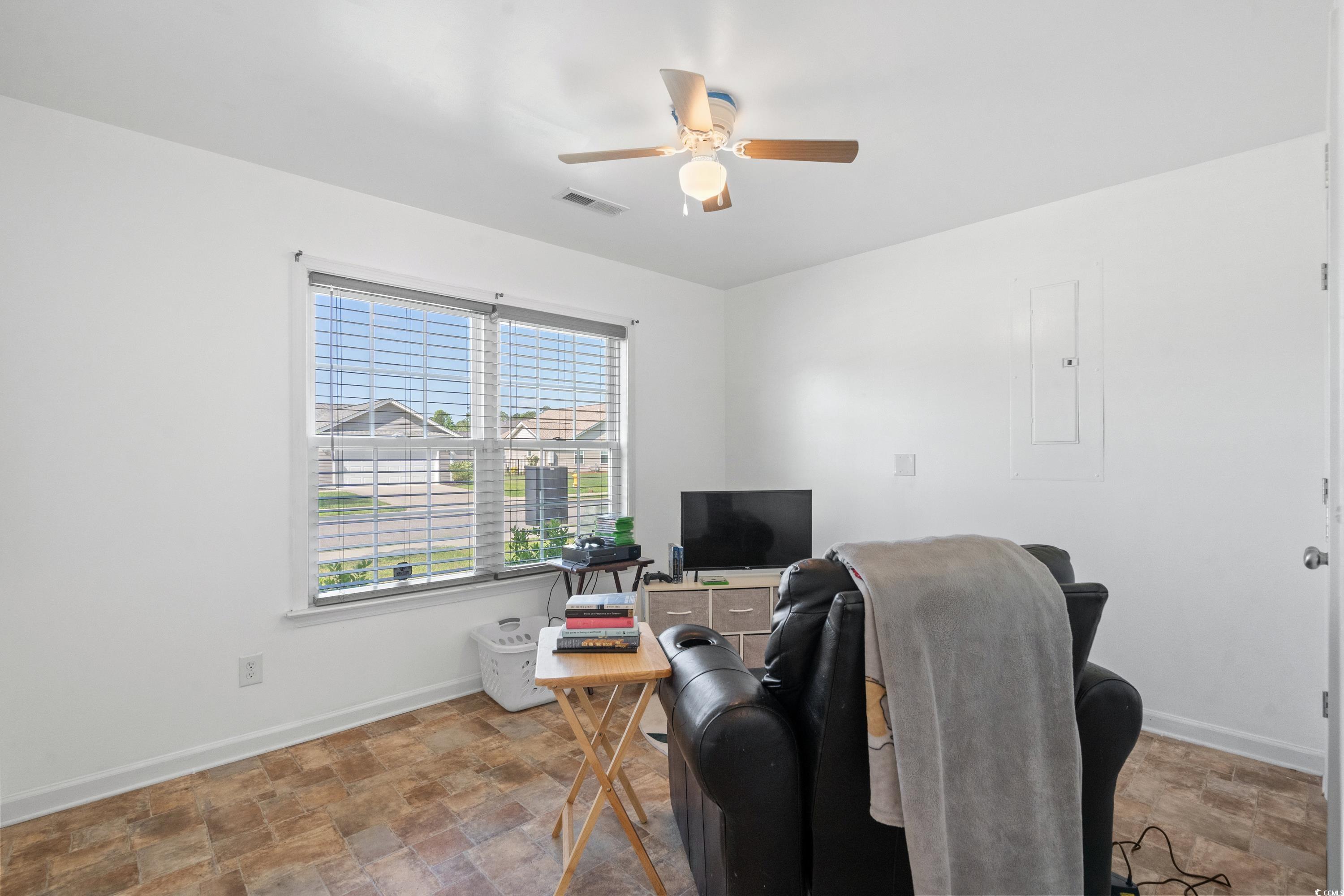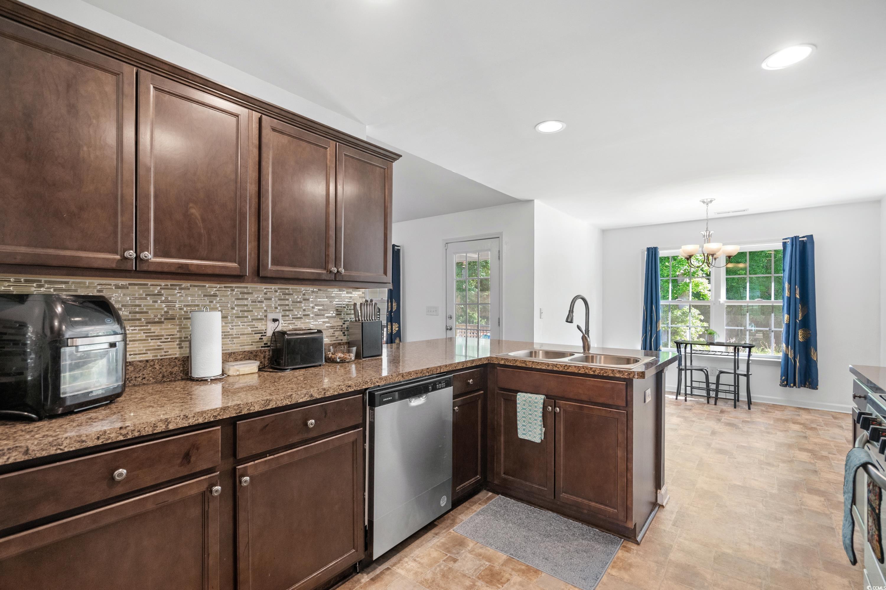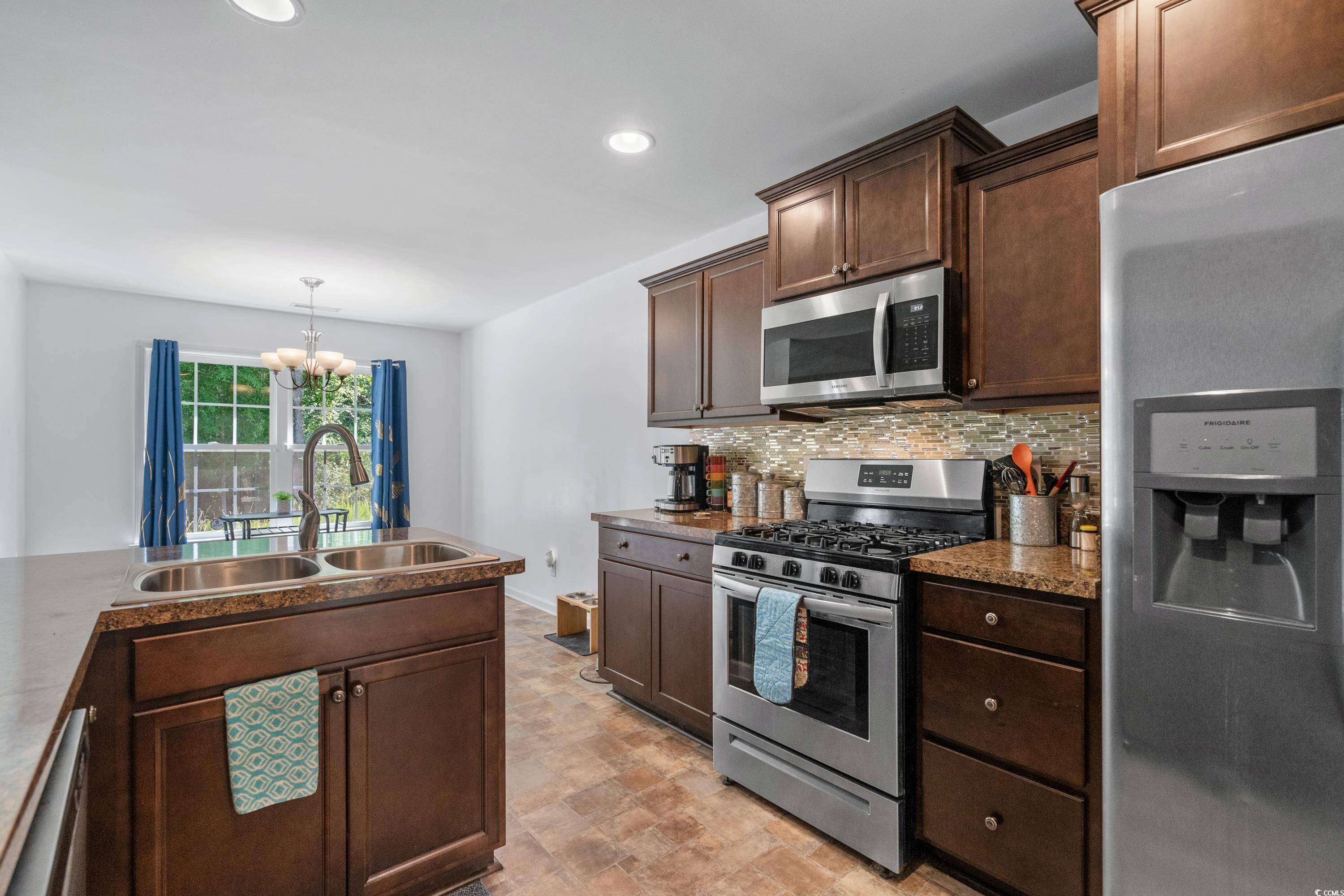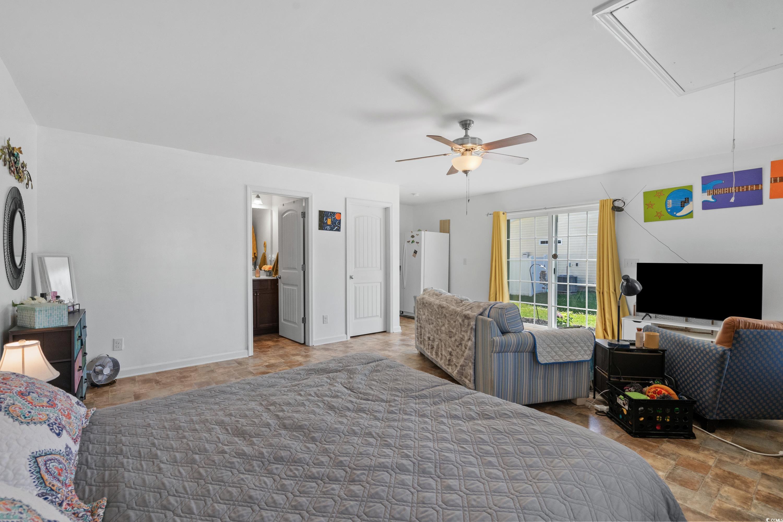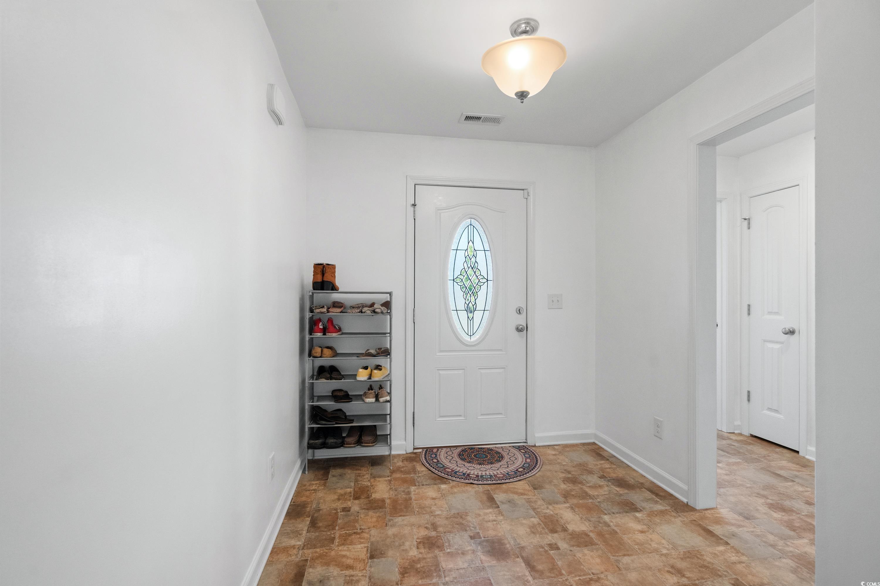 Welcome to this charming 4-bedroom, 3-bathroom home nestled in the sought-after community of Woodland Lakes. As you enter through the foyer, you're greeted by a spacious main living area featuring a vaulted ceiling adorned with a fan, and an abundance of windows flooding the space with natural light, creating an inviting atmosphere for entertaining guests. The kitchen and dining area boast seamless flow, with beautiful dark cabinets that add a touch of elegance to the room. Ample counter and cabinet space make organization a breeze, while the breakfast bar provides a convenient spot for quick meals. The master bedroom is a sanctuary of its own, complete with a vaulted ceiling and a private ensuite bathroom, offering a perfect retreat after a long day. Two additional bedrooms, each equipped with ceiling fans, share a well-appointed bathroom, ideal for accommodating both residents and guests. A unique feature of this home is the fourth bedroom, which doubles as a mother-in-law suite with its own private entrance. This spacious suite offers flexibility for various living arrangements and includes its own ensuite bathroom. Convenience is key with a laundry room just off the kitchen, making chores a breeze. Step outside onto the screened porch and bask in the tranquil sounds of nature, from morning birdsong to evening crickets. The back patio provides an ideal space for outdoor entertaining. The lot backs up to mature woods adding privacy. For those with a green thumb, a garden awaits providing an opportunity for gardening enthusiasts to cultivate their own oasis. Nearby, a firepit beckons for cozy gatherings and roasting marshmallows under the stars. Woodland Lakes is also a natural gas community. Woodland Lakes offers the perfect blend of suburban tranquility and urban convenience, with easy access to Downtown Conway and the riverwalk, as well as being just 20 miles from the pristine shores of the Atlantic Ocean. Don't miss your chance to call this meticulously crafted home yours! Buyer is responsible for verification