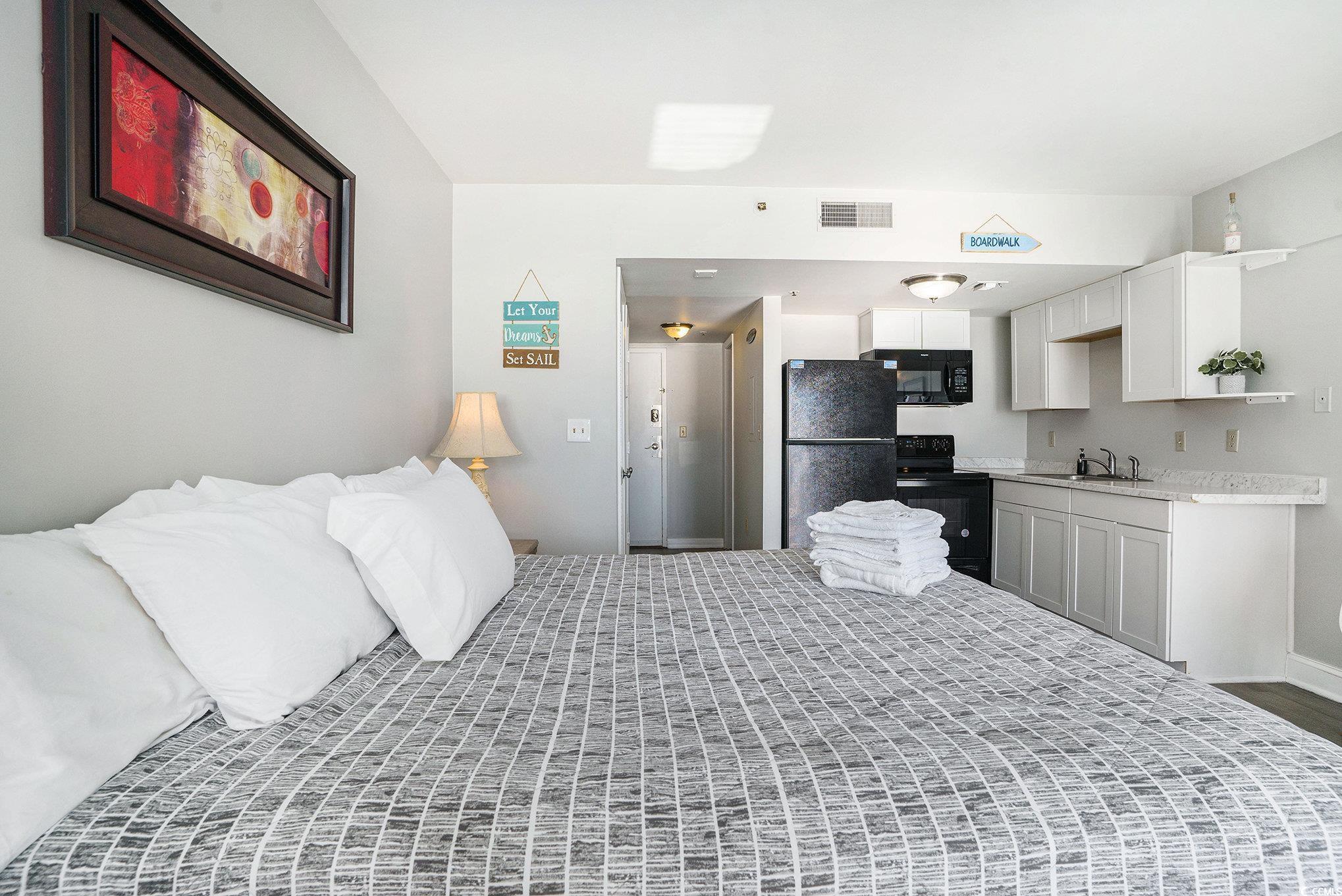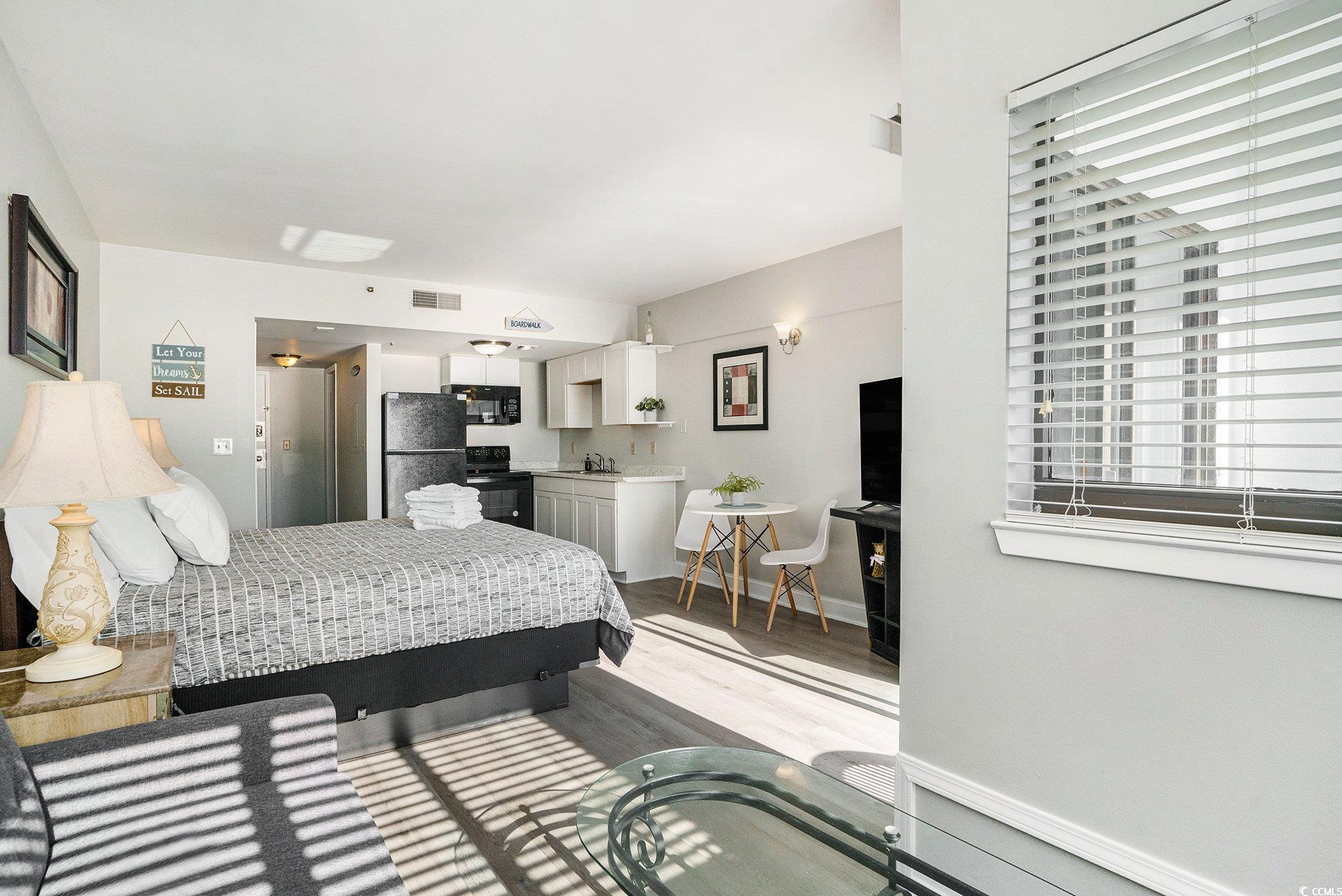 This beautifully updated oceanfront efficiency unit is the perfect blend of comfort and convenience, located in a desirable oceanfront building in Myrtle Beach, SC. Featuring a new kitchen with a stove, microwave and refrigerator, this space is ideal for preparing meals after a day at the beach. The updated flooring adds a fresh, contemporary feel throughout. Step outside to enjoy the year-round outdoor heated pool, a perfect spot to relax and unwind in any season. With low HOA fees, short-term, long-term, and vacation rentals are all permittedthis property is an excellent investment opportunity. For added convenience, washers are available in the hallway on every other floor. Whether you're looking for a beachside retreat, a smart investment, or a vacation rental, this oceanfront unit offers incredible potential. Don't miss out on this incredible opportunity!