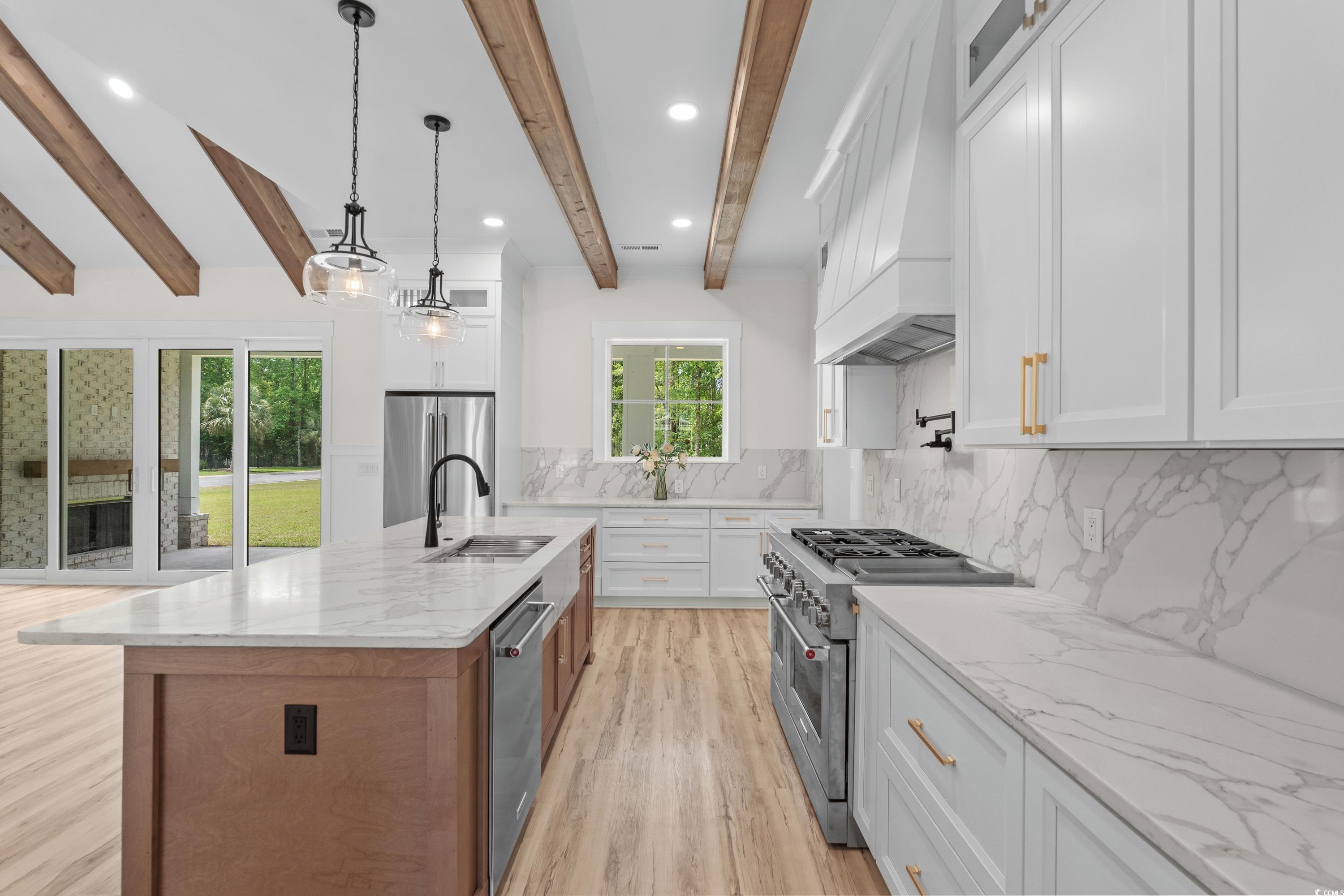 Welcome to this stunning Scalise Dream Properties custom-built home, nestled on an expansive .72-acre private lakefront lot in a peaceful cul-de-sac. With 6 spacious bedrooms, 5 luxurious bathrooms, large loft and approximately 5,666 total square feet (4,330 heated), this home offers the perfect blend of elegance and functionality. The main level features a large primary suite with a sitting area, luxurious private bath with a shower room with the tub inside the shower area, custom walk-in closet, and serene lake views. The gourmet kitchen boasts quartz countertops, custom cabinetry, a generous appliance budget and a butlers pantry. The open floor plan with vaulted ceilings and exposed wood beams in the primary bedroom, great room, kitchen and upstairs loft enhances the home's charm, while custom woodwork throughoutincluding board and batten detailing, dining room and primary bedroom accent walls, crown molding, and wood beam accentsadds character. The outdoor oasis is perfect for entertaining with a custom gas kitchen, fireplace, and professionally landscaped grounds with irrigation and a tree-lined driveway. Other highlights include a large finished area over the garage, epoxy on the floor of the side load 2-car garage, energy-efficient features like a tankless hot water heater, solid core doors, and a purchased 320-gallon propane tank, giving you flexibility and control over energy providers. With a mudroom, two laundry spaces, oversized sliding door to the backyard, and smart home features like Wi-Fi thermostats and remote garage access, this home offers the utmost in luxury and convenience. Enjoy tranquil lake views, a large lot, and exceptional craftsmanshipall in one incredible package. Cypress River Plantation is a prestigious, gated waterfront community located along the Intracoastal Waterway in the Myrtle Beach. This neighborhood offers an array of upscale amenities designed for both relaxation and recreation, including a resort-style pool, clubhouse, fitness center, tennis and basketball courts, boat storage, and a private boat landing. With a focus on privacy and security, Cypress River Plantation provides the ideal blend of natural beauty and convenient access to the water. Nestled within the vibrant Myrtle Beach area, residents of Cypress River Plantation are just a short drive from the Grand Strands renowned attractions. You can enjoy beautiful sandy beaches, championship golf courses, and endless entertainment options, from live music and shows to local festivals and fine dining. The area is also home to top-rated schools, convenient shopping centers, medical facilities, and grocery stores, ensuring that all of lifes essentials are within easy reach. With its luxurious community amenities and proximity to the best of Myrtle Beach. Cypress River Plantation offers a premier lifestyle for those seeking both comfort and adventure along the South Carolina coast. Contact me or your agent today for a private home tour! *Photos shown of a finished home are just for samples of the builder's work and design/finishes will vary. Ask about the included features brochure.