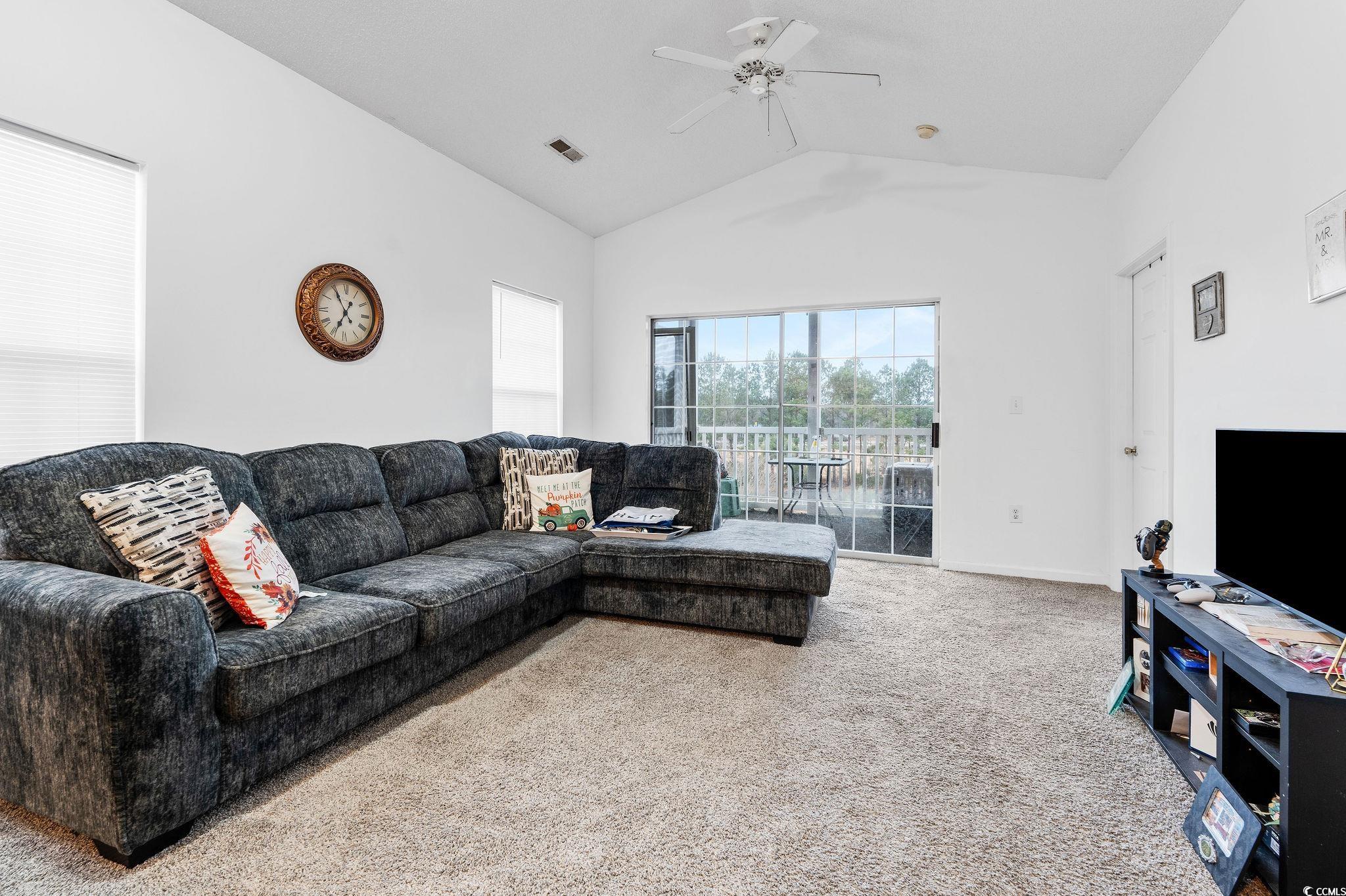 Welcome to this beautiful 2-bedroom, 2-bathroom top-floor end unit in the sought-after Sun Colony community of Longs, SC. Just minutes from the pristine beaches of North Myrtle Beach, this condo offers an open and airy floor plan with a bright living room featuring a slider door that leads to a private balcony. The fully equipped kitchen provides ample cabinet space, while the spacious master bedroom boasts vaulted ceilings and an en-suite bathroom, offering comfort and privacy. An attached storage closet adds extra convenience. Sun Colony provides fantastic amenities, including a sparkling community pool, clubhouse, and exercise facilities, perfect for relaxing or staying active. This condo's central location means you're just a short drive from premier dining, shopping, entertainment, and some of the area's top golf courses, making it an excellent choice for a primary residence, vacation getaway, or investment property. Don't miss your opportunity to own this beautiful coastal retreat! Schedule your showing today and start enjoying the best of beach living.