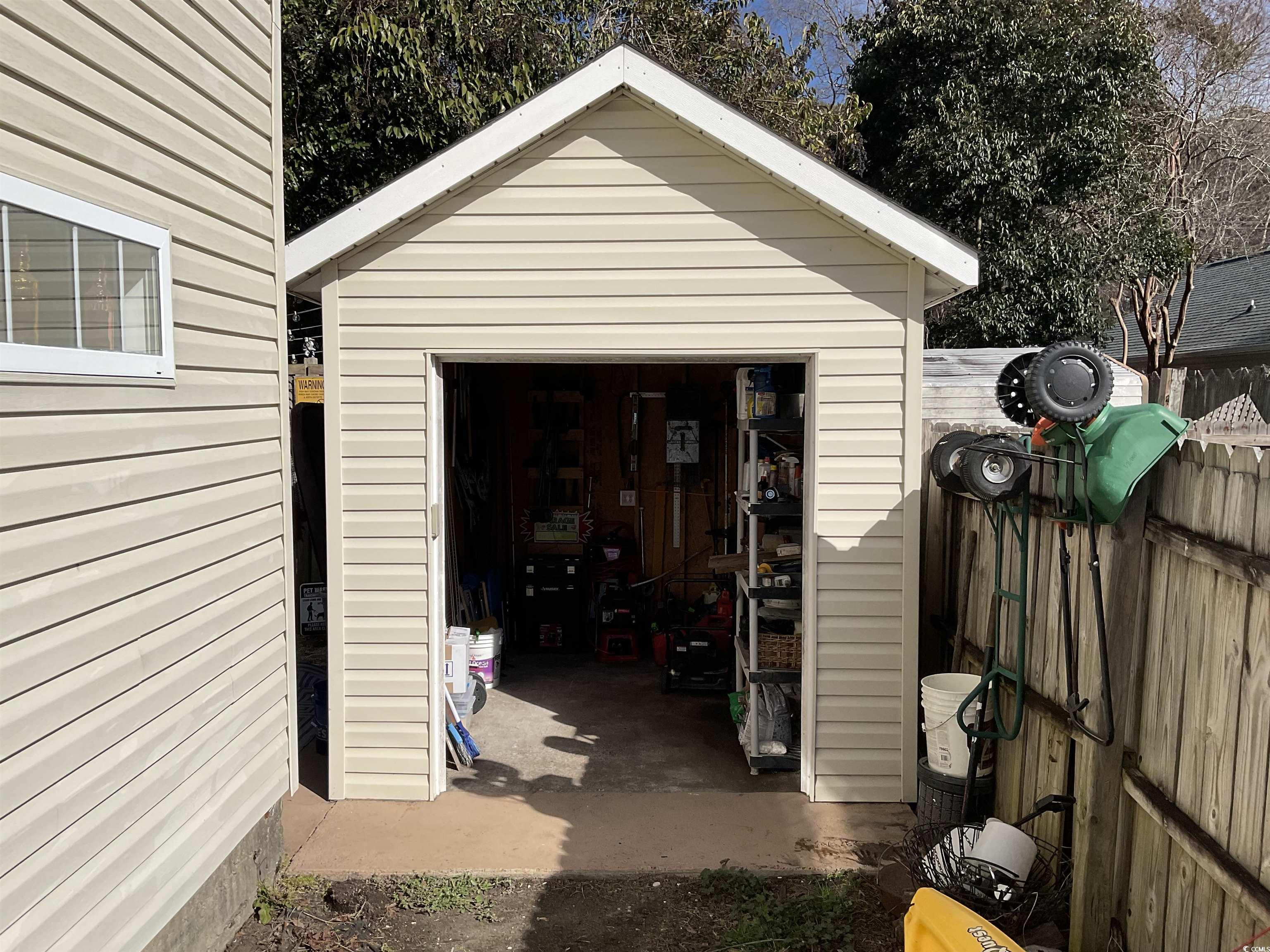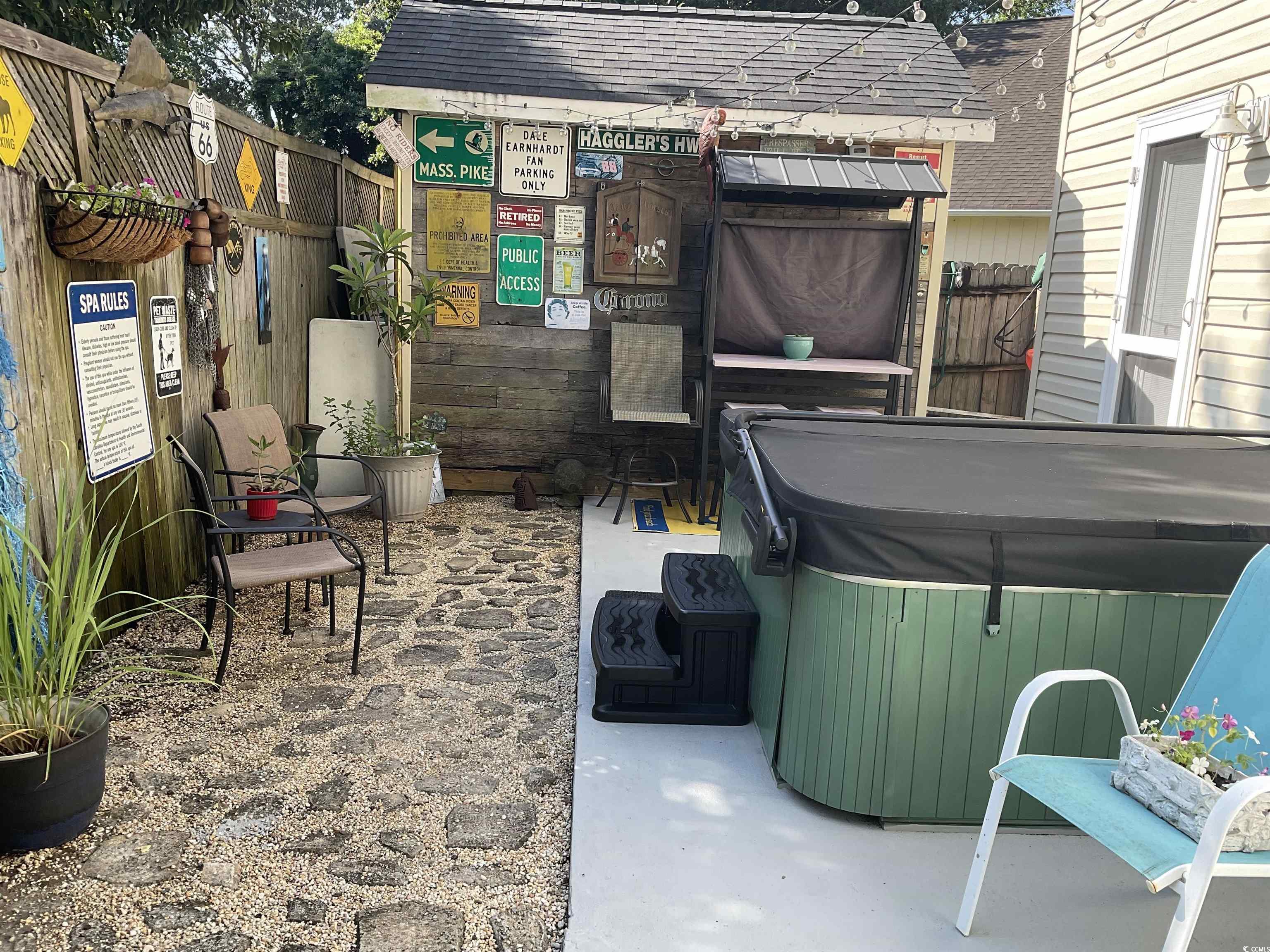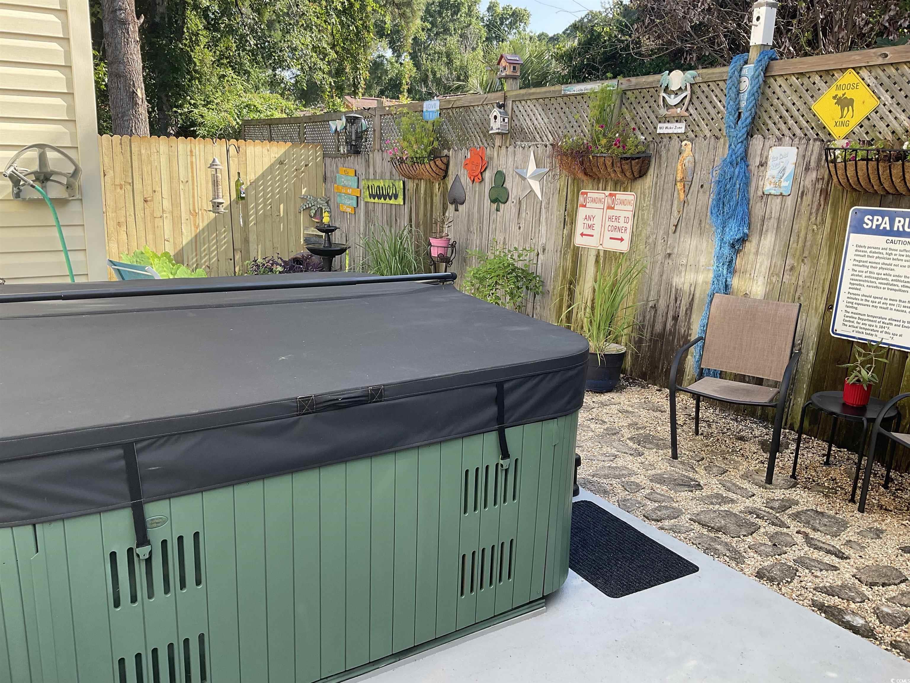 Charming home in a quaint community with NO HOA. Less than a mile to the Atlantic Ocean so bring your golf cart which will have its own home in the garage in backyard as well. Step into your outdoor oasis with a hot tub, which has a brand-new lift cover. Very private backyard with new fencing. This community also has a playground/park nestled in the neighborhood and maintained by the city. Crown molding throughout the first floor and high ceilings. Master bedroom is on the first floor and master bathroom just recently renovated with a tile walk in shower. You will be pleasantly surprised with the size of the two bedrooms on the second floor and another full bathroom. Brand new washer and dryer convey. Refrigerator also brand new. Square footage and all information are correct to best of knowledge but not guaranteed. Buyer's responsibility to verify. Seller is a SC Licensed Realtor.