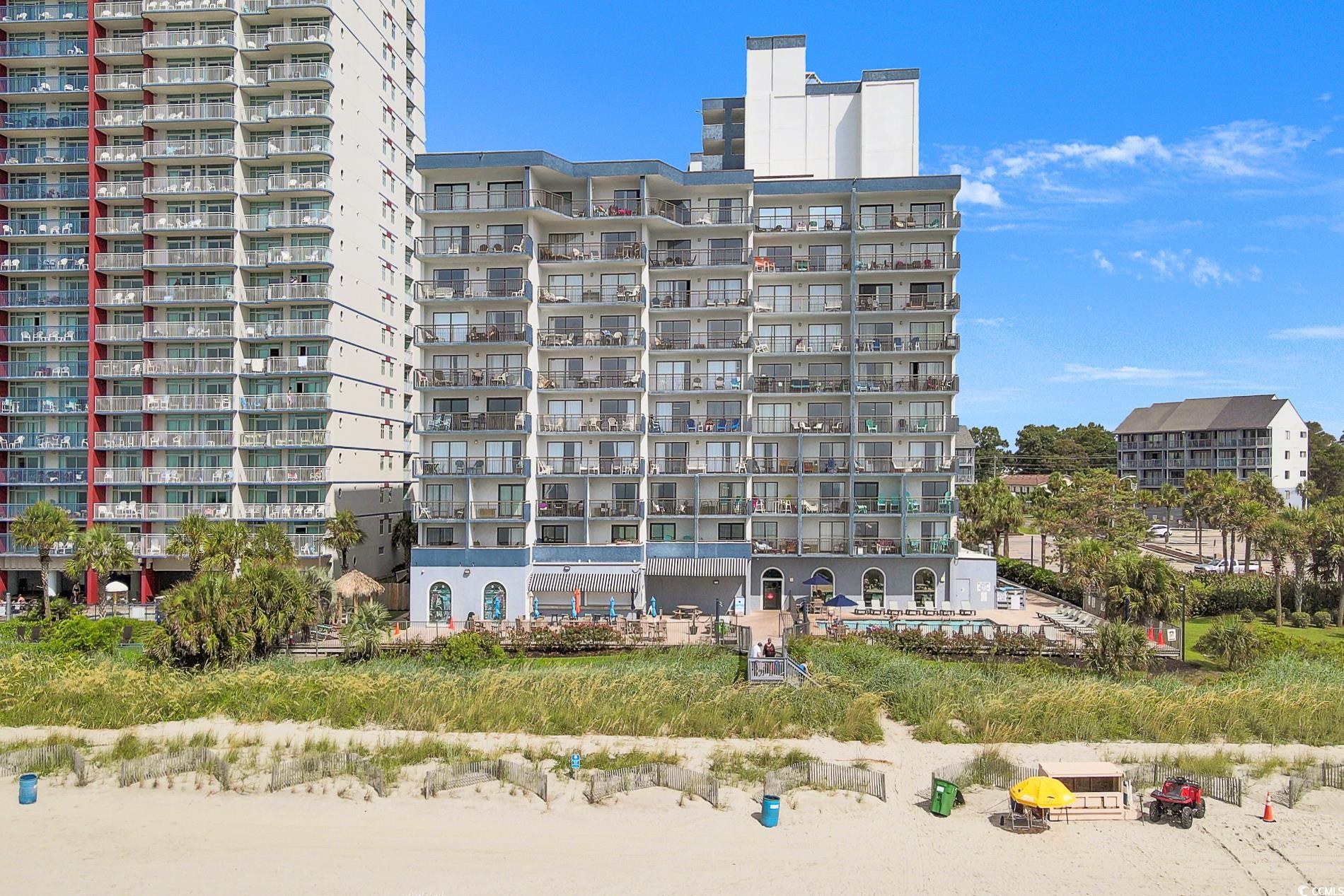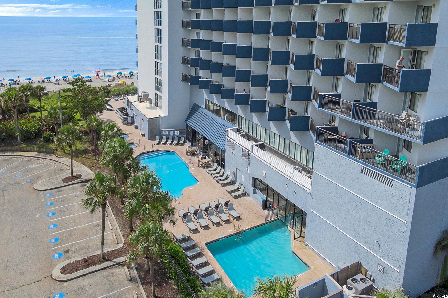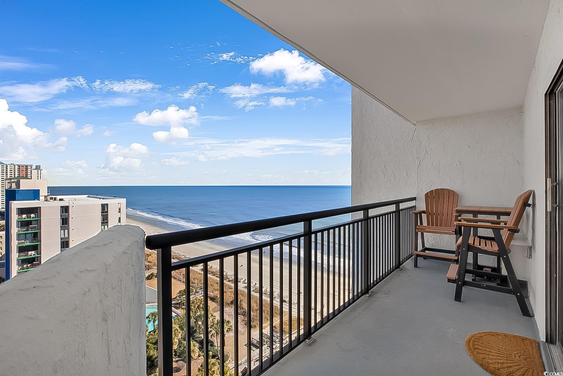 Sunrise from balcony is amazing. This is a floor-plan that only a few offer in this oceanfront high rise. It's called the One Stack plan; in that, upon centering into a foyer. Right is living room with ocean view. Kitchen nestled off living area and that area offers a non-conforming bedroom. The main bedroom opposite end of living area and allows beautiful sunsets. Furnished perfectly and colors so pleasant to enjoy! Close to International Airport and Market Common Area. The city park is located to the north of Bluewater. Convenient to Coastal Mall, Costco, Publix and so many restaurants. Easy to travel Murrells Inlet or use Hwy 31 to Northern Myrtle Beach. Beach Time use as primariy, 2nd home, short term rental. Restaurant on site. This resort offers many pools and indoor. Locked Lobby for security and an office for security on site. Elevators and one elevator dedicated to the higher floors. Come and begin your Beach memories.