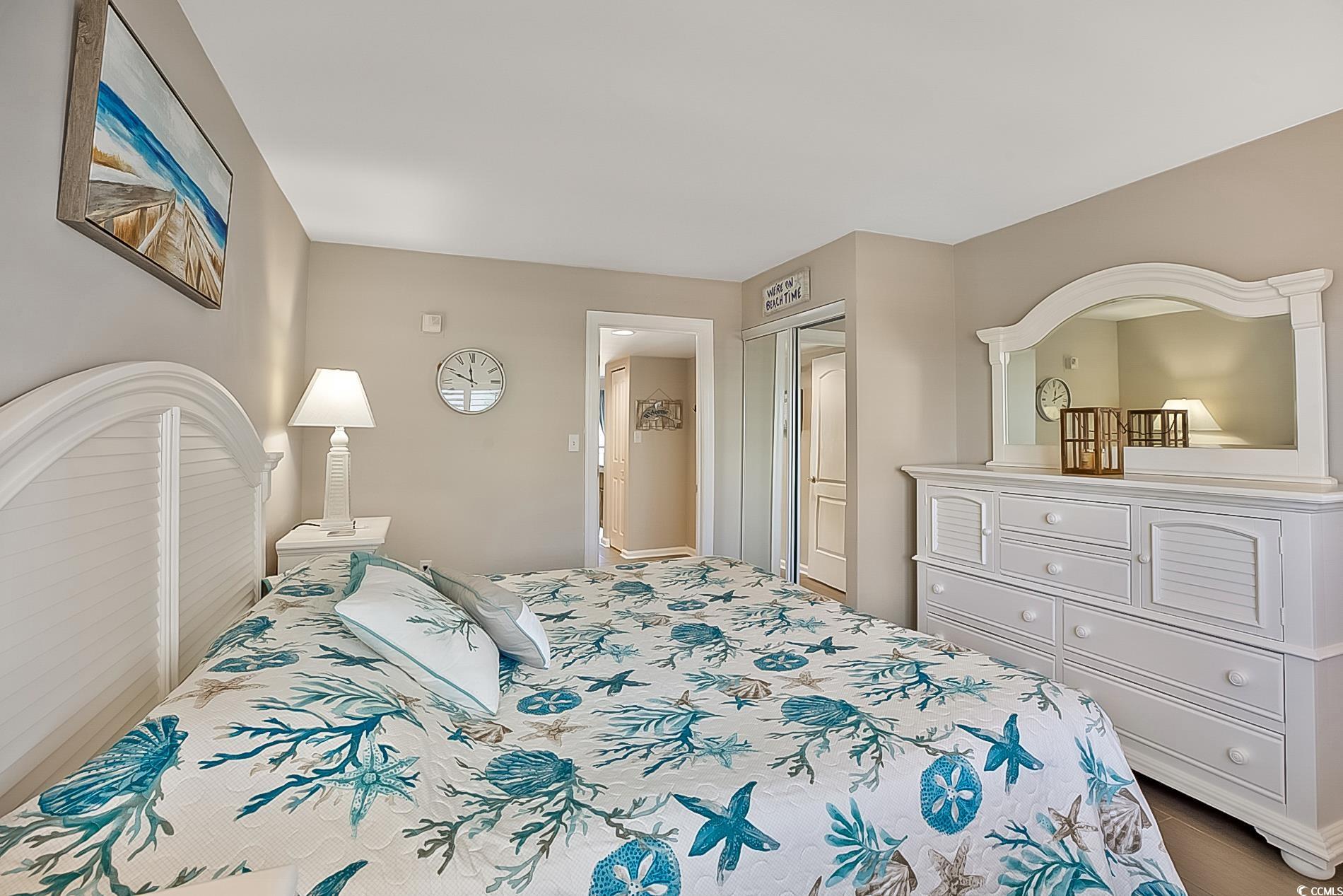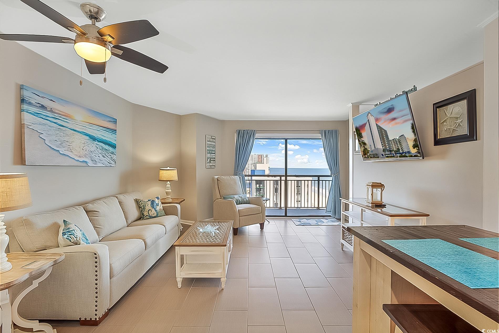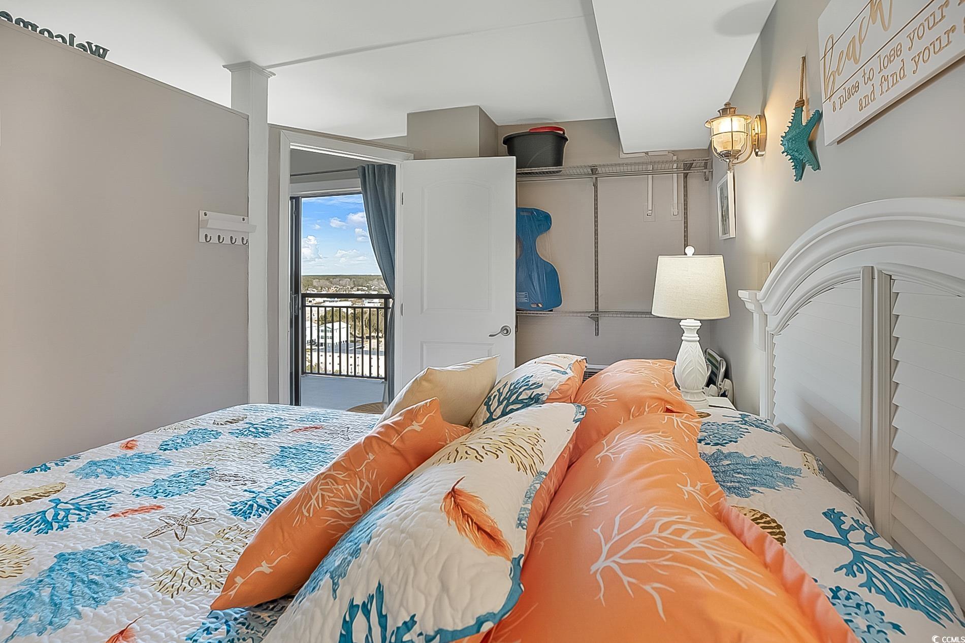 Sunrise from balcony is amazing. This is a floor-plan that only a few offer in this oceanfront high rise. It's called the One Stack plan; in that, upon centering into a foyer. Right is living room with ocean view. Kitchen nestled off living area and that area offers a non-conforming bedroom. The main bedroom opposite end of living area and allows beautiful sunsets. Furnished perfectly and colors so pleasant to enjoy! Close to International Airport and Market Common Area. The city park is located to the north of Bluewater. Convenient to Coastal Mall, Costco, Publix and so many restaurants. Easy to travel Murrells Inlet or use Hwy 31 to Northern Myrtle Beach. Beach Time use as primariy, 2nd home, short term rental. Restaurant on site. This resort offers many pools and indoor. Locked Lobby for security and an office for security on site. Elevators and one elevator dedicated to the higher floors. Come and begin your Beach memories.