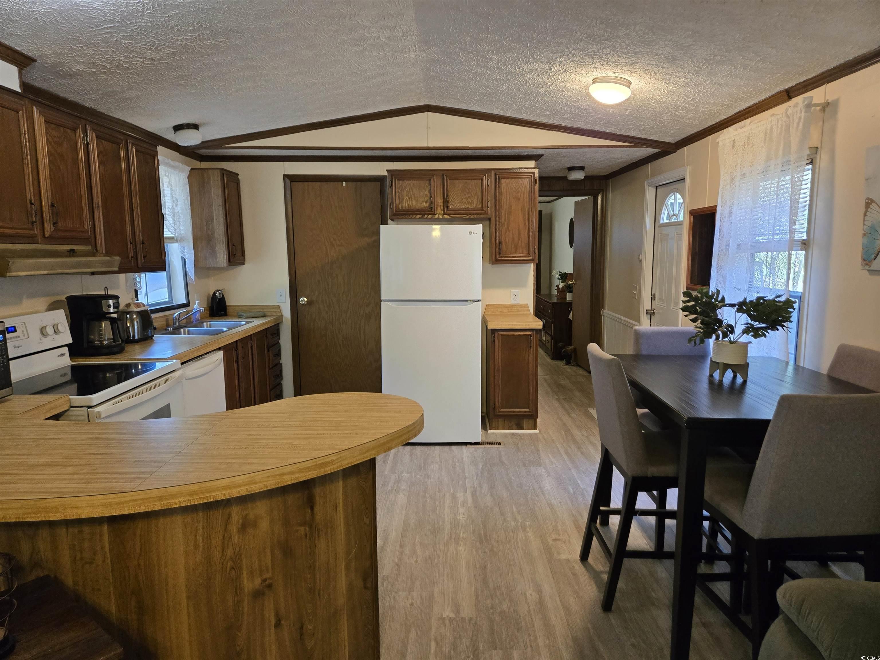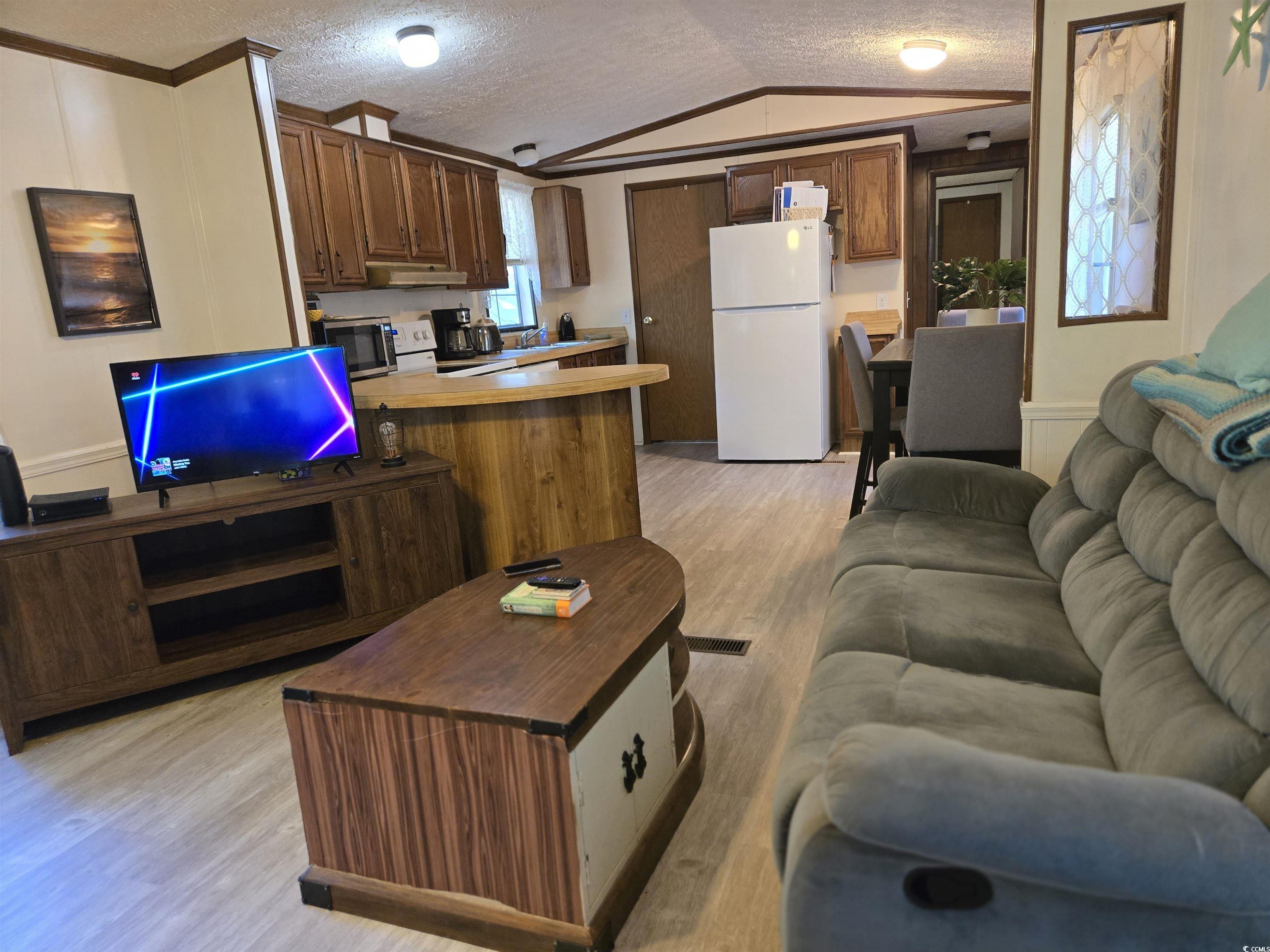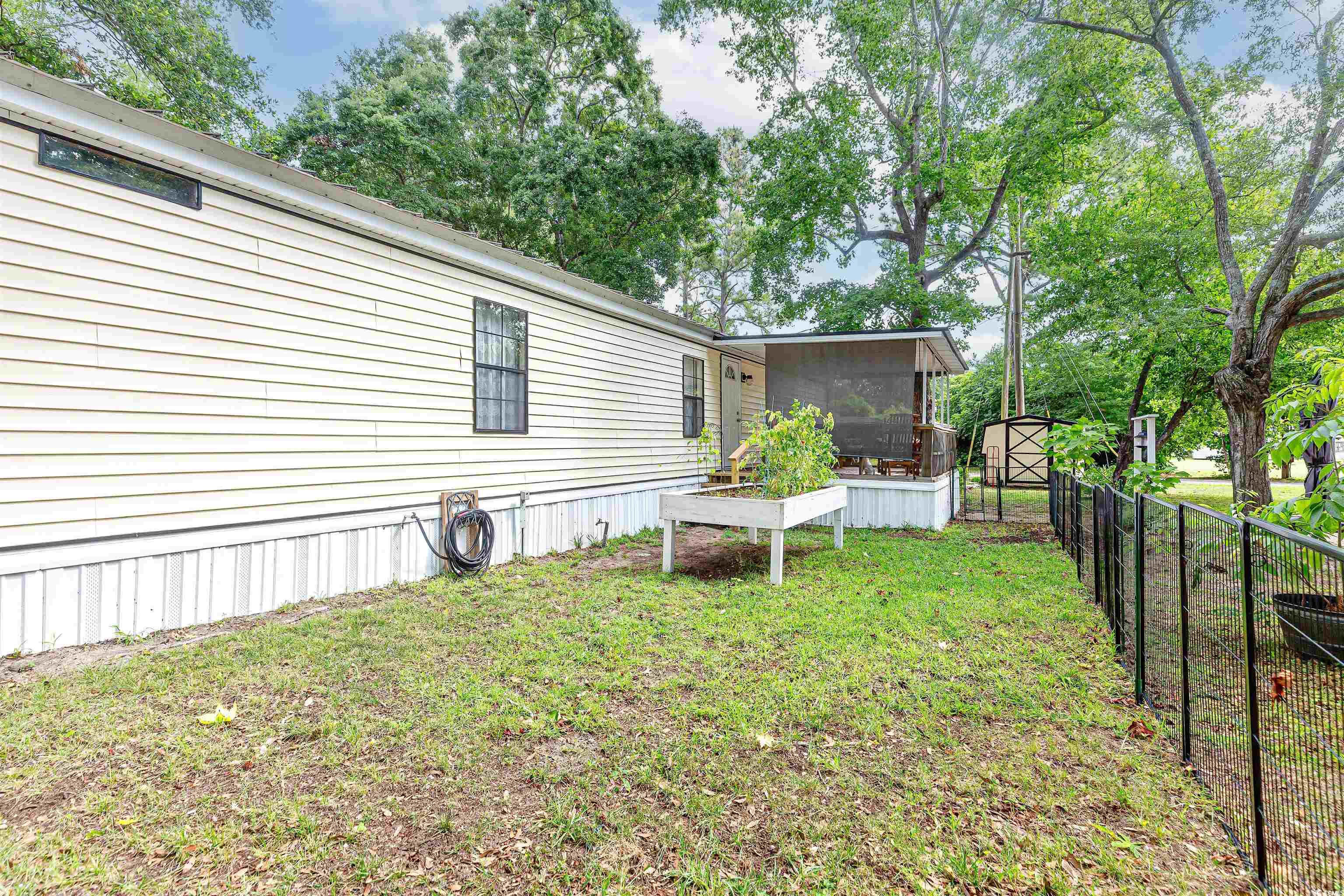 Motivated seller. This home features a large outdoor covered porch that overlooks the sizable yard with a raised garden bed. New siding and New HVAC in 2023, HVAC has new duct work and comes with a 8 year warranty transferrable with the home. New Ridge vent, boot and roof has been freshly sealed with Henry's 10 yr. Sealant. Homeowner recently replaced the refrigerator, dishwasher, both toilets, sinks, and resurfaced the countertops in the bathrooms, and hurricane blinds on the large covered porch. Covered carport and 2 outdoor sheds convey with the home. Plenty of parking on both sides of the property with room for to add an additional bedroom or living area if needed. Property is on water and sewer included in the annual lot lease. Come live the easy low-country lifestyle of Waterford Oaks. Welcome 582 Mimosa Drive in the Waterford Oaks community. Just a short distance to the beach and the marsh, private fishing pier and a private boat ramp located in the community. Surrounded by the peace and tranquility of live oaks, this home offers you a place at the beach on one of the larger lots in Waterford Oaks Move in special going on now. Lease may be able to be paid monthly for the 1st year!