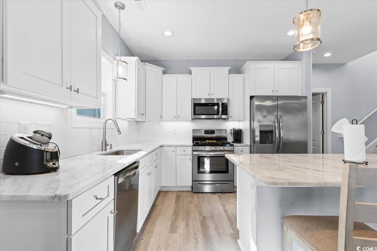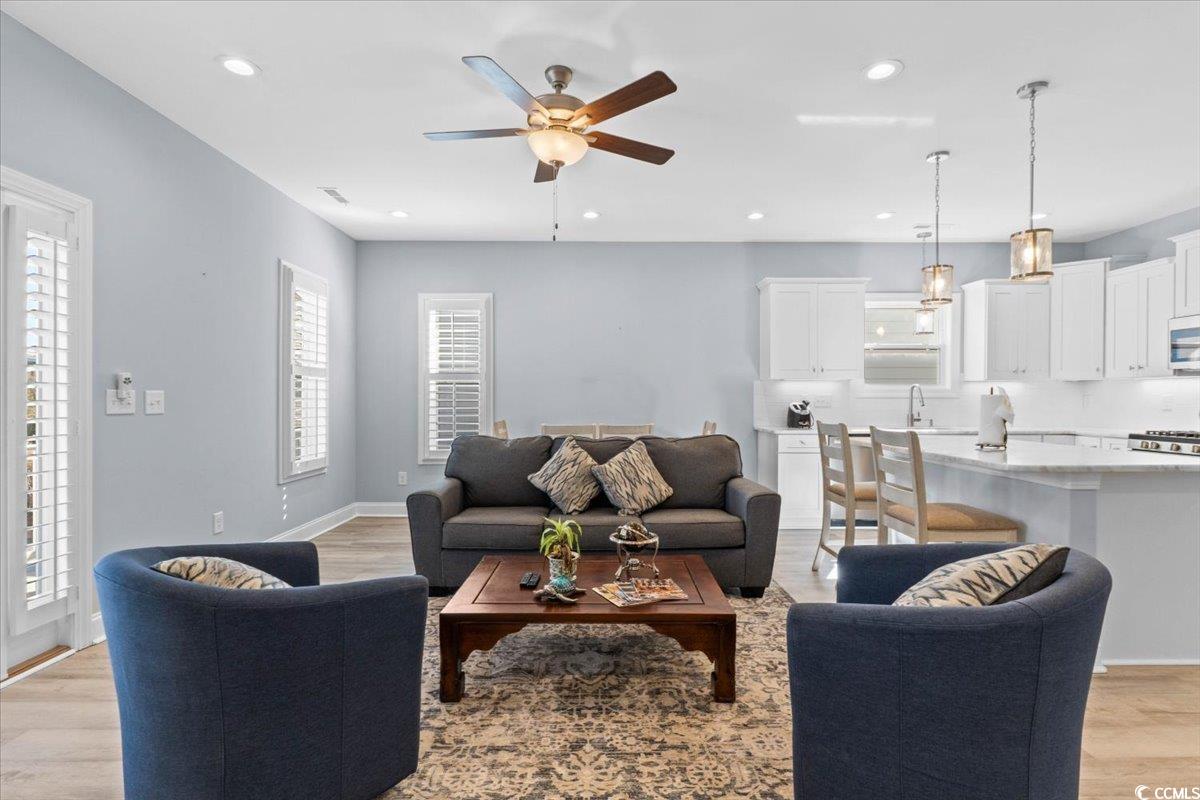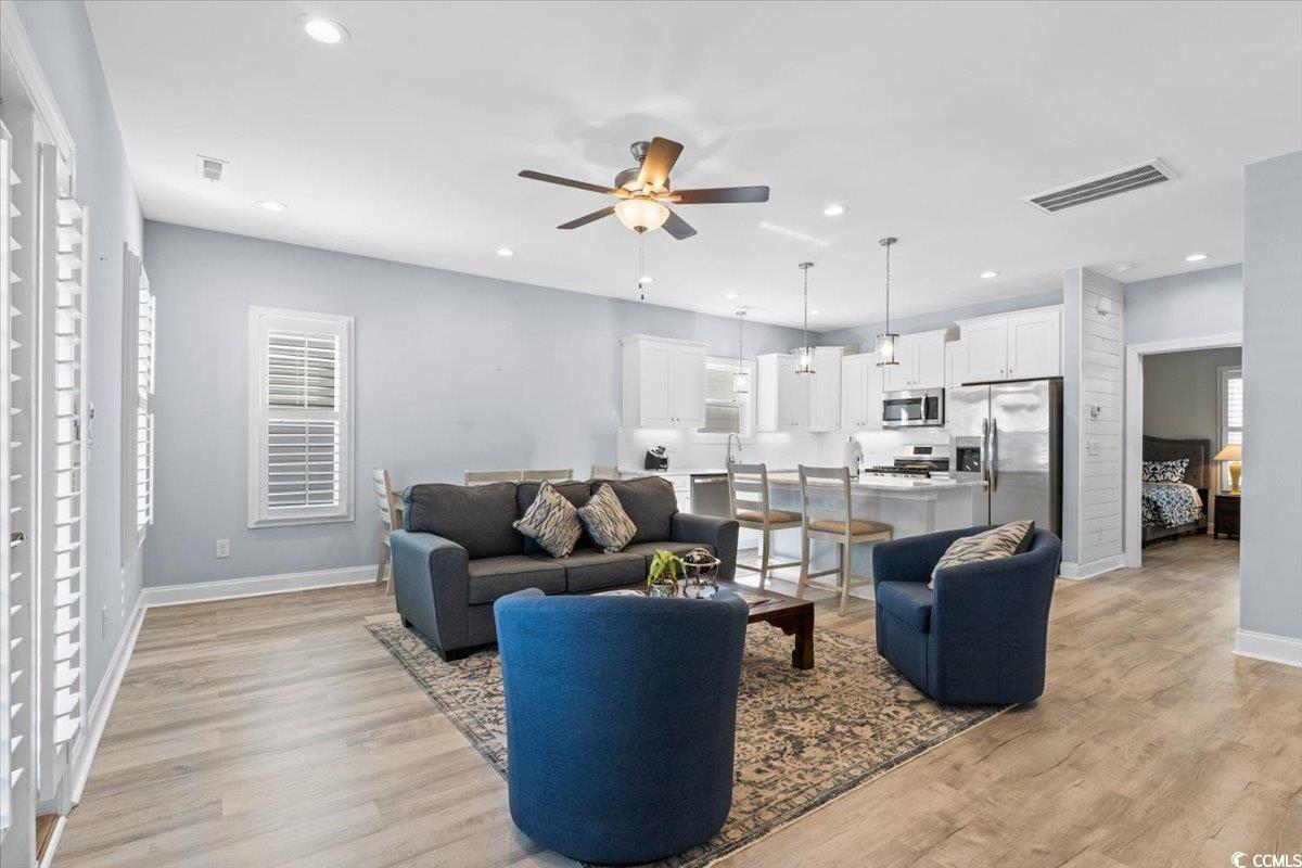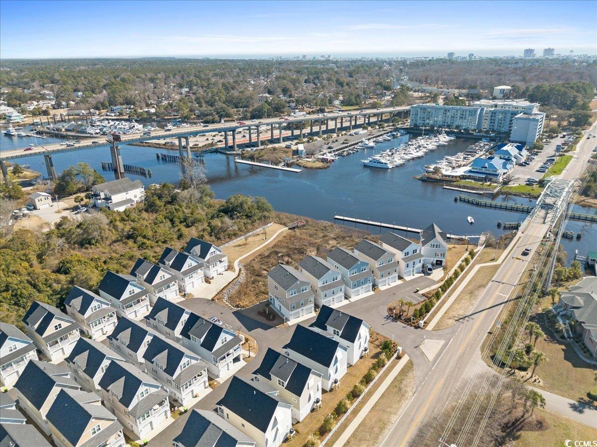 Experience breathtaking views of the Intracoastal Waterway at the Cottages at Marker 350 in Little River. Nestled beside the iconic Capt. ""Poo"" McLauchlin Swing Bridge, this charming cottage-style home with a 3-car garage, boasts granite countertops, stainless steel appliances, brand-new LVP flooring, updated plumbing, tankless water heater, Wi-Fi-enabled garage door opener, plantation blinds throughout with exterior hurricane shutters. The Fernandina Breeze floorplan offers a private 3-stop elevator, 3 spacious bedrooms, 2.5 baths, and a large front porch that spans the entire front of the home. Residents enjoy exclusive access to a private 200' community day dock and pier, along with low HOA fees and maintenance-free lawn care. Dont miss out on this incredible opportunityschedule your tour today!