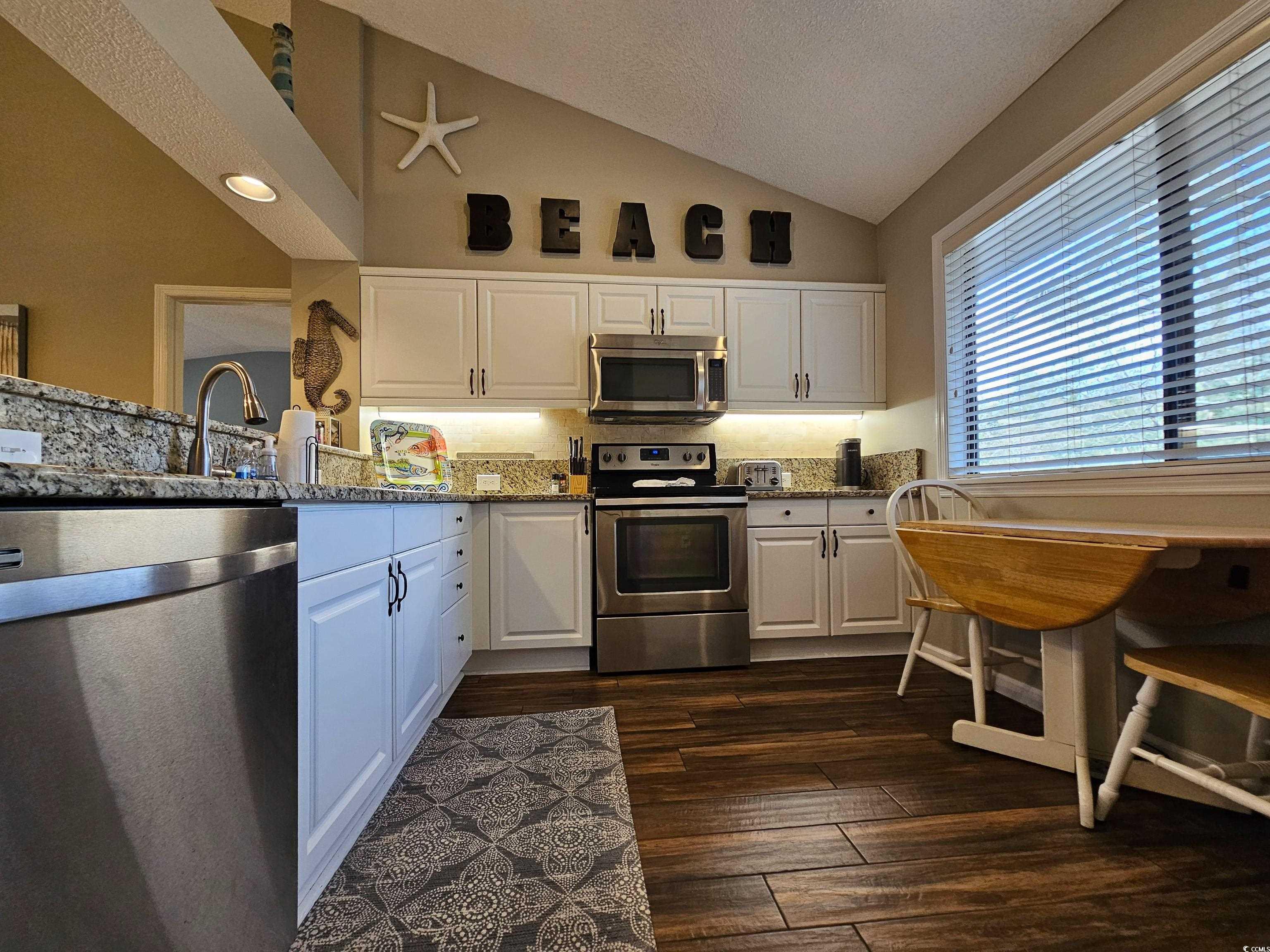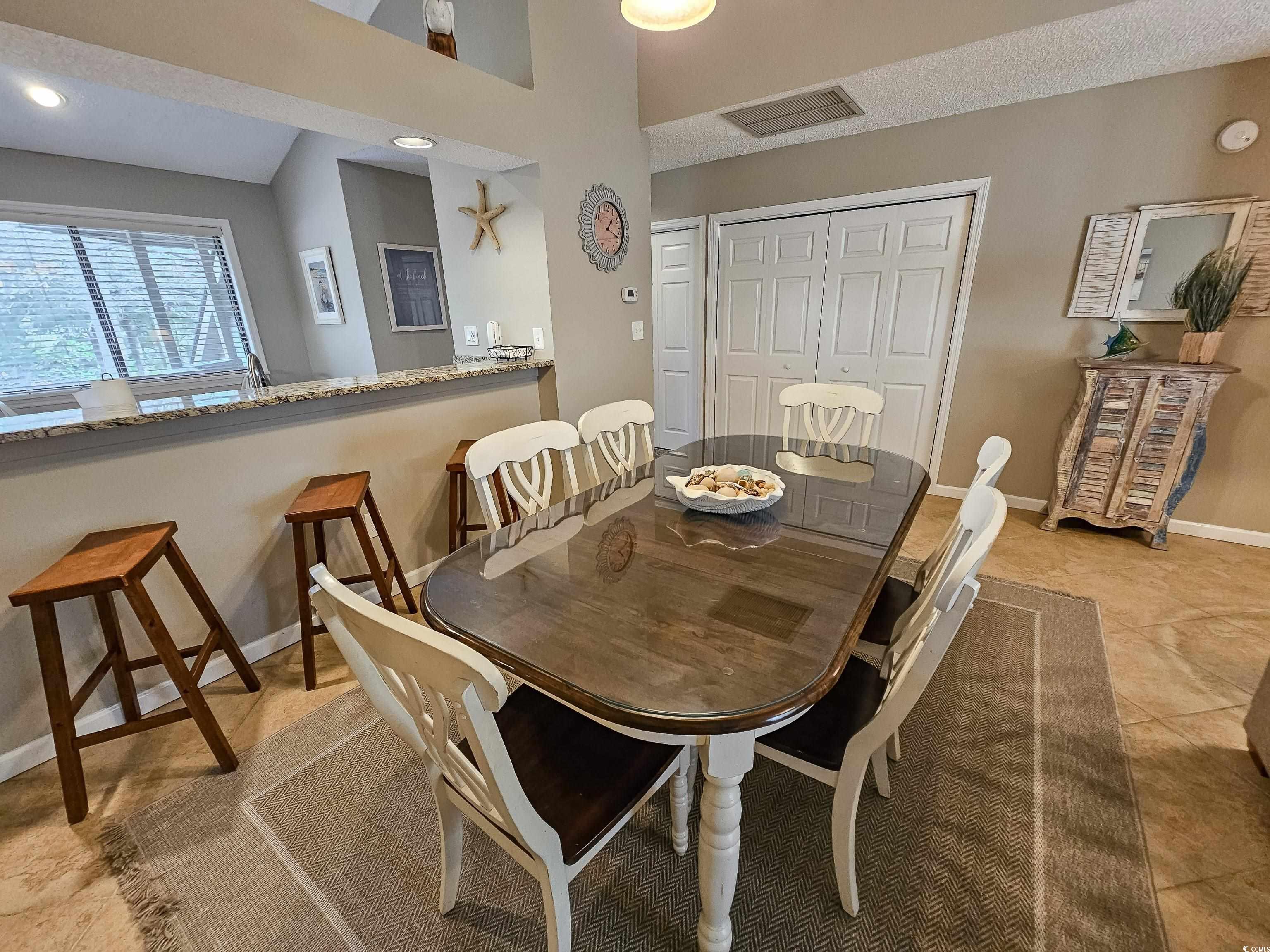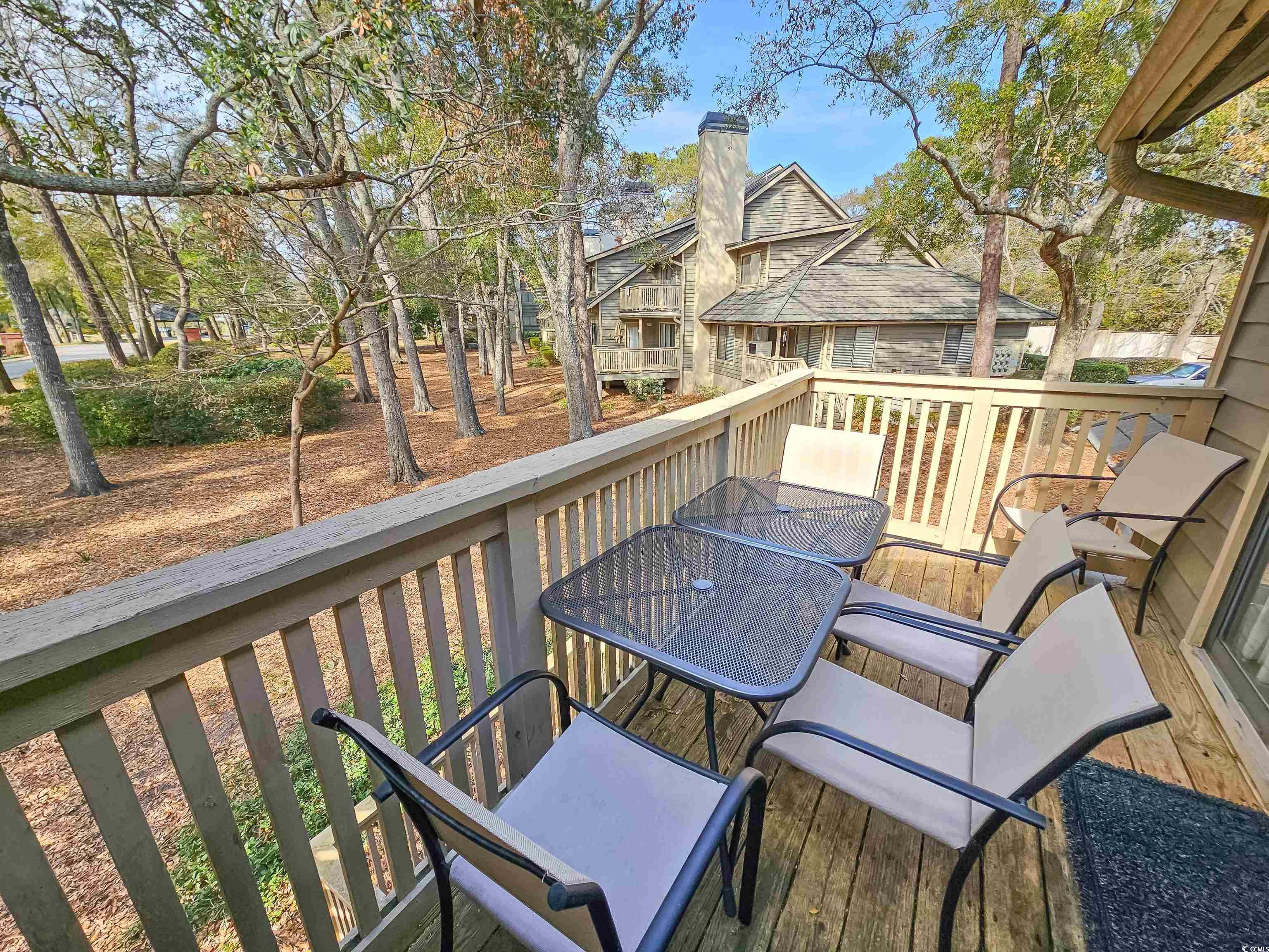 Beautifully furnished and updated three-bedroom, three-bath villa located inside the Kingston Resort and steps to the ocean! Custom kitchen with stainless steel appliances, granite countertops in the kitchen and baths. Vaulted ceilings, large open floor plan with over 1,400 heated square feet, spacious primary bedroom with sitting area, bath has double sinks with custom walk-in shower. Split bedroom floor plan. This villa is great for entertaining, as a vacation getaway, as a primary residence, or as a rental option. Sit on the deck and enjoy the view, or take a dip in the community pool on the lake. This 145-acre resort has it all - oceanfront hotel, restaurants, Spa & Fitness Center, tennis & pickle ball courts, putting green, golf simulators, over 1/2 mile of sandy beaches, gated community, 24-hour security, and everything the Myrtle Beach has to offer. Some resort amenities are only available through the Hilton on-site rental program.