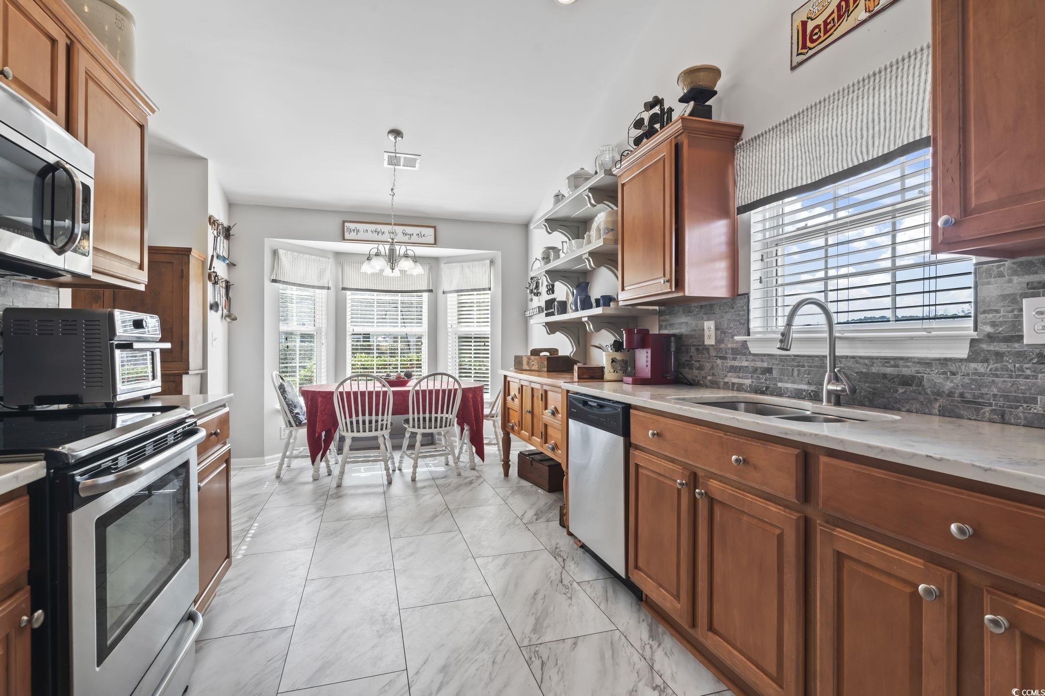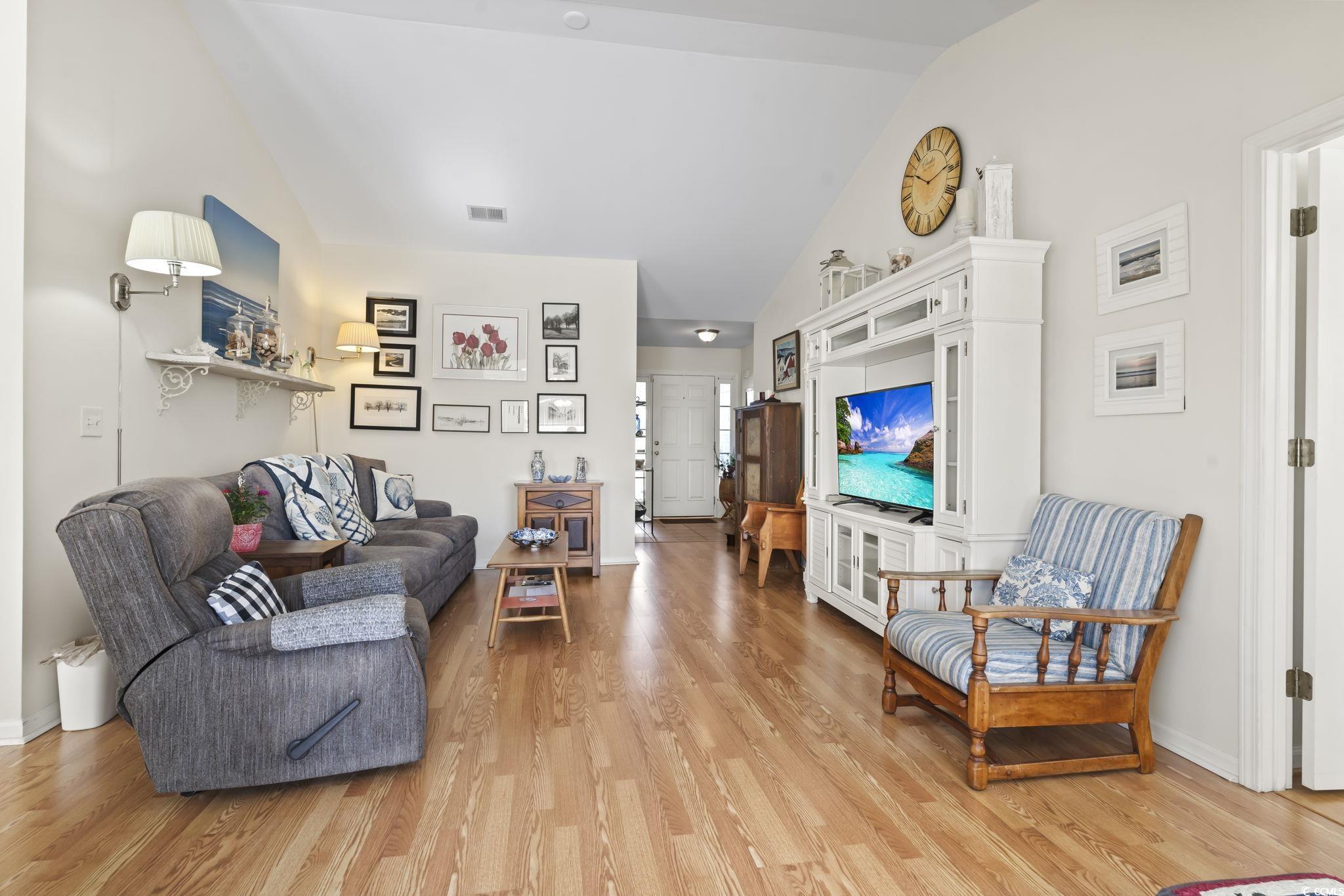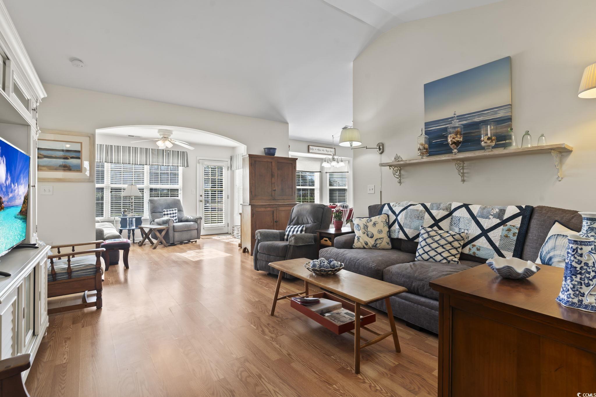 Discover the perfect blend of comfort and style in this beautiful 4-bedroom, 3-bath ranch-style home, located in the sought-after International Club - The Highlands. Step inside to be welcomed by a soaring ceiling in the living room, creating an open and inviting atmosphere. Just beyond, the Carolina Room boasts large windows that fill the space with natural light, offering a bright and airy feel. The kitchen is a delight, featuring ample cabinetry, sleek stainless appliances, quartz countertops, and a charming breakfast nook framed by a bay window. The primary suite on the main level serves as a relaxing retreat, complete with vaulted ceilings, a spacious walk-in closet, and an en-suite showcasing a vanity, deep soaking tub, and step-in shower. Two additional guest rooms on the main level provide easy access to a full guest bathroom. Above the garage, a private fourth bedroom with an en-suite offers additional versatility. Step outside from the Carolina Room onto the patio, where you can enjoy summer barbecues or unwind while taking in the breathtaking South Carolina sunsets. Washer/Dryer replaced in 2020, HVAC replaced in 2024, roof replaced in 2021, water heater replaced in 2022.The Highlands offers fantastic community amenities, including a large pool, playground, clubhouse, and gym, all just a short golf cart ride away. Golf enthusiasts will love the stunning course at International Club, while the desirable Murrells Inlet location provides easy access to the MarshWalk, Surfside Beach, Brookgreen Gardens, and two beautiful state parks. Don't miss out on this incredible opportunity - schedule your private tour today! Measurements are not guaranteed. Buyer is responsible for verifying.
