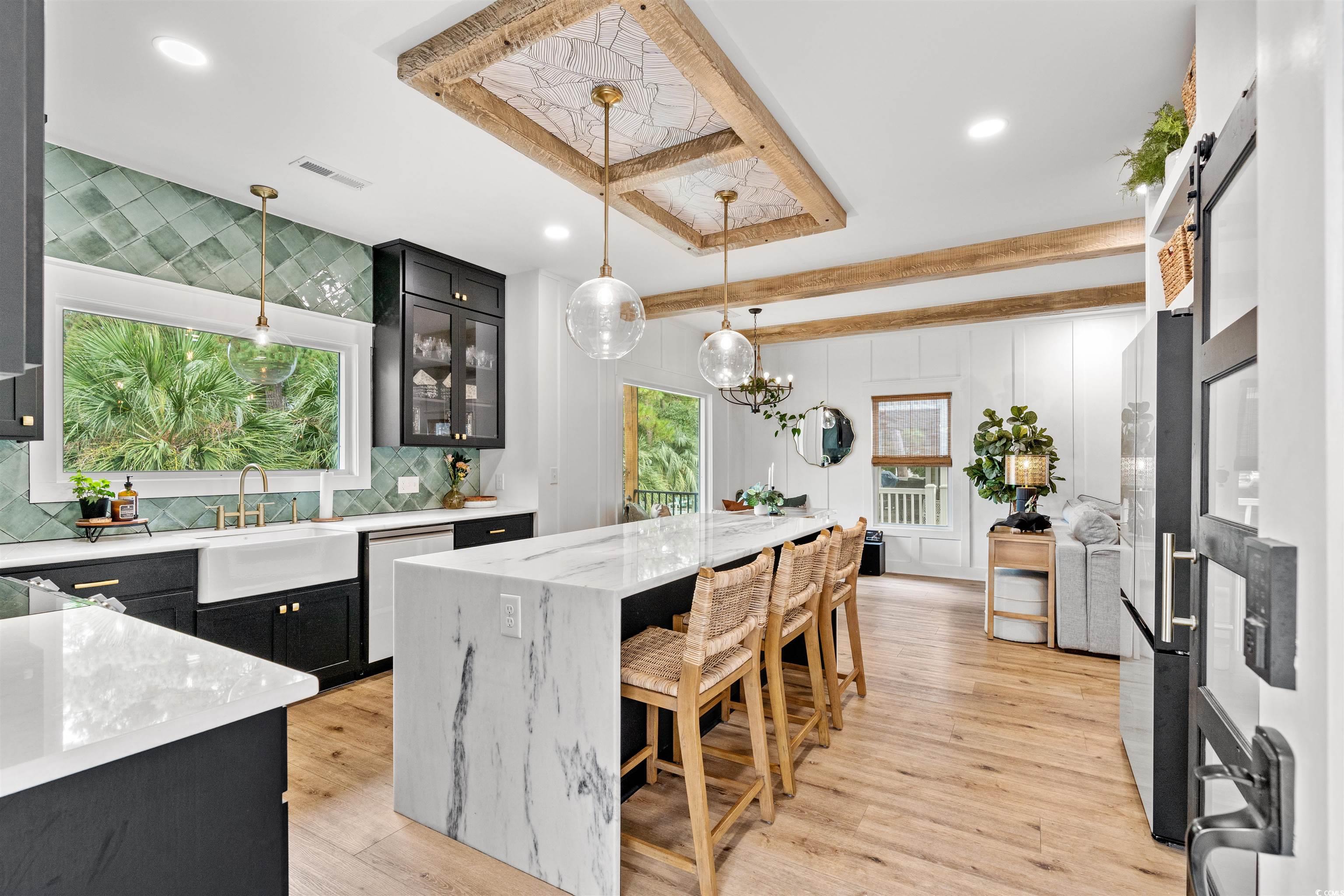 LUXURY at the BEACH!!! Nestled on one of the quietest streets in Ocean Lakes, this stunning custom-designed beach house offers the perfect blend of coastal charm and mountain retreat aesthetics. Built just one year ago, this 4-bedroom, 3-bathroom home is a sanctuary for families seeking both relaxation and adventure. As you approach, the exteriors unique design, featuring exposed distressed wooden timbers, sets a warm, rustic tone. The expansive outdoor entertainment areas, with over 3,000 square feet of durable Trex decking, invite you to unwind and enjoy the serene surroundings. Designed for gathering, the outdoor oasis includes a full kitchen, dining space, and game areaperfect for making lasting memories. The family entertainment area features a motorized drop-down TV and surround sound speakers, making every night under the stars special. Step into the master suite, where tranquility awaits. French doors open to a private decking area with a 6-person saltwater Hot Springs hot tub and a full-size rope bed swingideal for relaxing after a day at the beach. Inside, the home offers spacious rooms designed for family comfort and functionality. The open-concept layout creates a welcoming atmosphere, while thoughtful design elements make this home stand out in Ocean Lakes. Picture your children playing ball in the street, surrounded by the safety and tranquility of this peaceful gated community. This home isnt just a property; its a lifestylea place for quality time, comfort, and unforgettable experiences. Dont miss the chance to make this beach house your own. Its not just a home; its a place to create lasting memories. Come experience the extraordinary lifestyle this Ocean Lakes property offers!