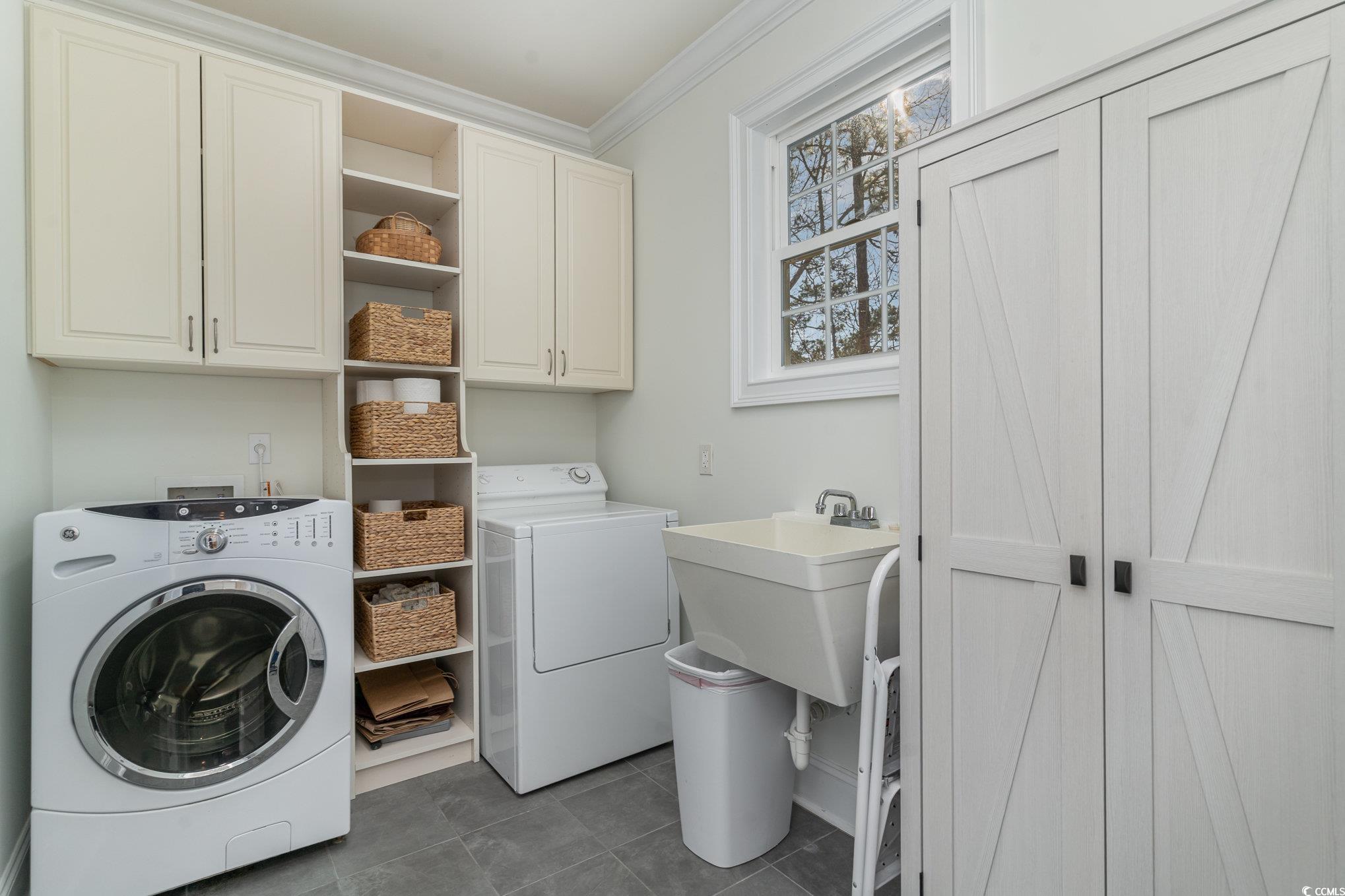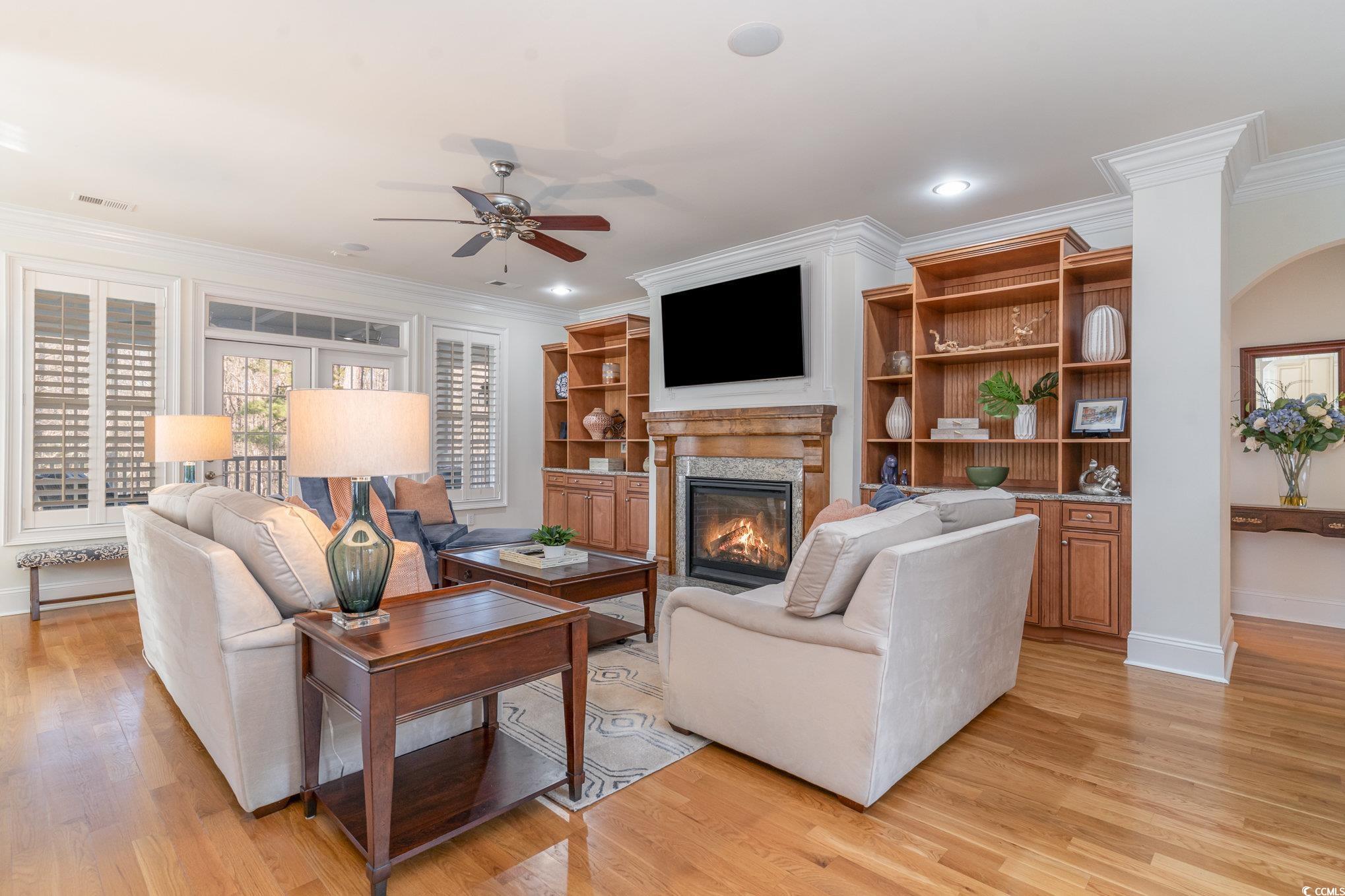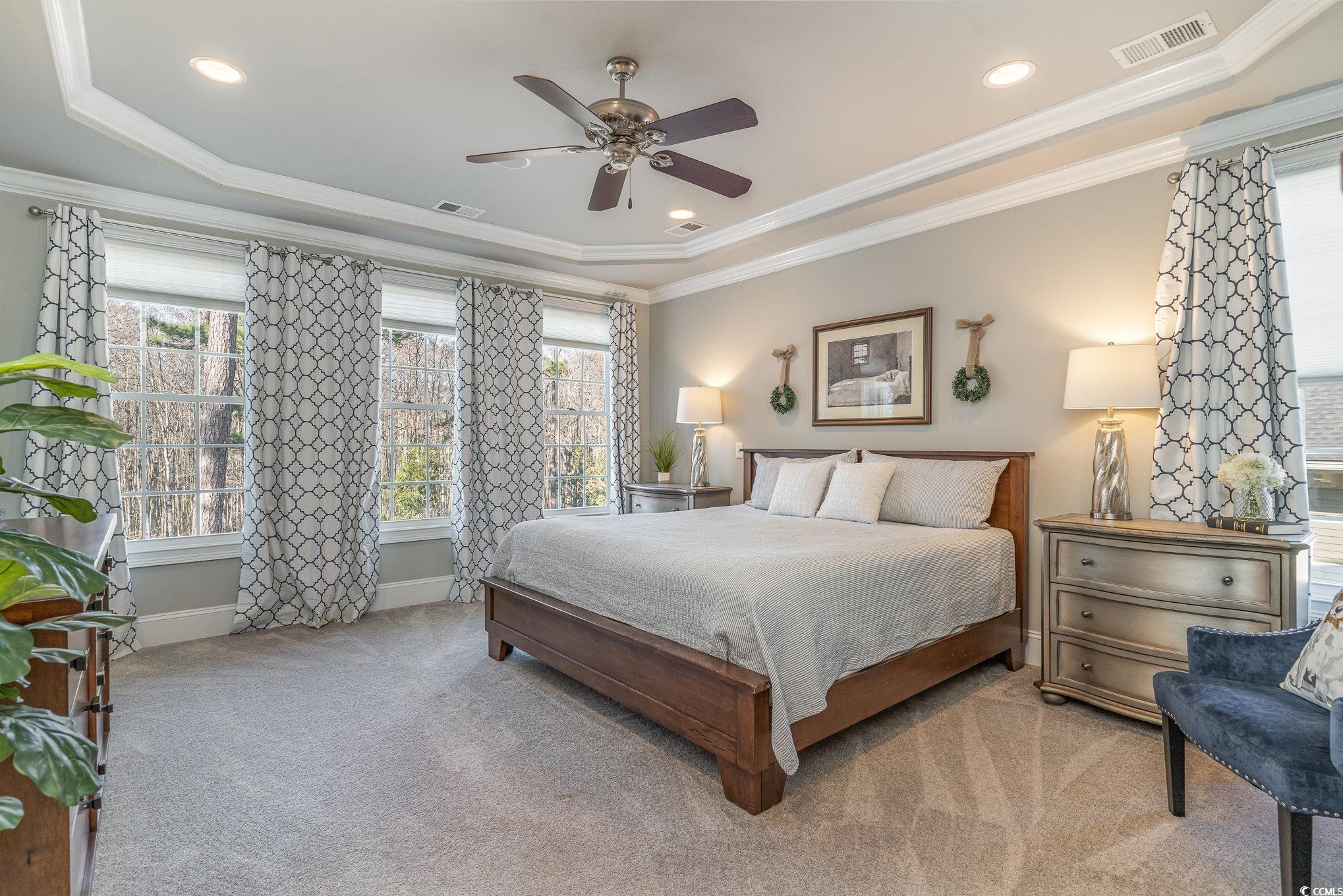 NEW ROOF INSTALLED SEPTEMBER 2025!!! FRESH NEW EXTERIOR PAINT COLOR"" SHERWIN WILLIAMS DOVER WHITE"" A RARE ownership opportunity! Experience Luxury and Grand Southern Living in this spacious 2+acre waterfront estate, situated in the highly sought-after gated community of Collins Creek Landing. Walk from the fenced backyard onto a private boardwalk through a tranquil wooded oasis to a PRIVATE FLOATING DOCK on deep-water Collins Creek, which ties directly to the Intracoastal Waterway a dream for boating or fishing enthusiasts, and nature lovers alike. This spectacular home with great curb appeal offers 5 bedrooms and 4.5 bathrooms on 3 levels with elevator access to ALL levels. Other exceptional features of the home are an exercise room with an attached full bathroom (which could alternately be used as a guest/in law suite), media room, office and shop room with an extra large 3-car garage with ample space for a golf cart, too. The circular driveway out front offers additional off-street parking for guests as well. Inside, find desirable features such as plantation shutters, real honey oak hardwood floors and triple crown moulding. Enter the main living level where a grand staircase in the two-story foyer separates a beautiful dining room and an office, with coffered ceilings and wainscoting found in both. The huge primary bedroom is also on this level, complete with a spacious en suite with tiled floors and granite countertops, featuring a walk-in shower, separate water closet, a jetted soaking tub, and dual walk-in closets. This main living floor is where you also find the family room with gas fireplace, which opens up through French doors to a lovely screenedporch overlooking the backyard and beyond. An eat-in gourmet kitchen with French country cream cabinetry and granite countertops, double ovens, open deck with gas grill hook up finish out this level. The top level of the home features 4 large bedrooms, 2 full bathrooms and a large media room perfect for movie and game nights. The lowest level of the home is where you find the exercise room with a full bath, shop room, and a huge 3-car garage with tons of storage space. Outdoors find a large patio space with a built-in gas grill and fire pit. Residents of this exclusive gated community enjoy access to exceptional amenities including a community center complete with kitchen and bathrooms, neighborhood pool, batting cage, soccer field, basketball court, and playground area. Beyond the community center find a boat Launch, gazebo & scenic boardwalk to Collins Creek. Additionally, the community also has a locked boat storage facility for residents only. For beach lovers Huntington Beach State Park is a mere 10 minutes away. This Low country masterpiece offers an unparalleled lifestyle - Schedule your private tour today! Wachesaw Plantation Country Club Golf Equity Membership Available if Desired!! PRICED BELOW APPRAISAL! Agent related to sellers.