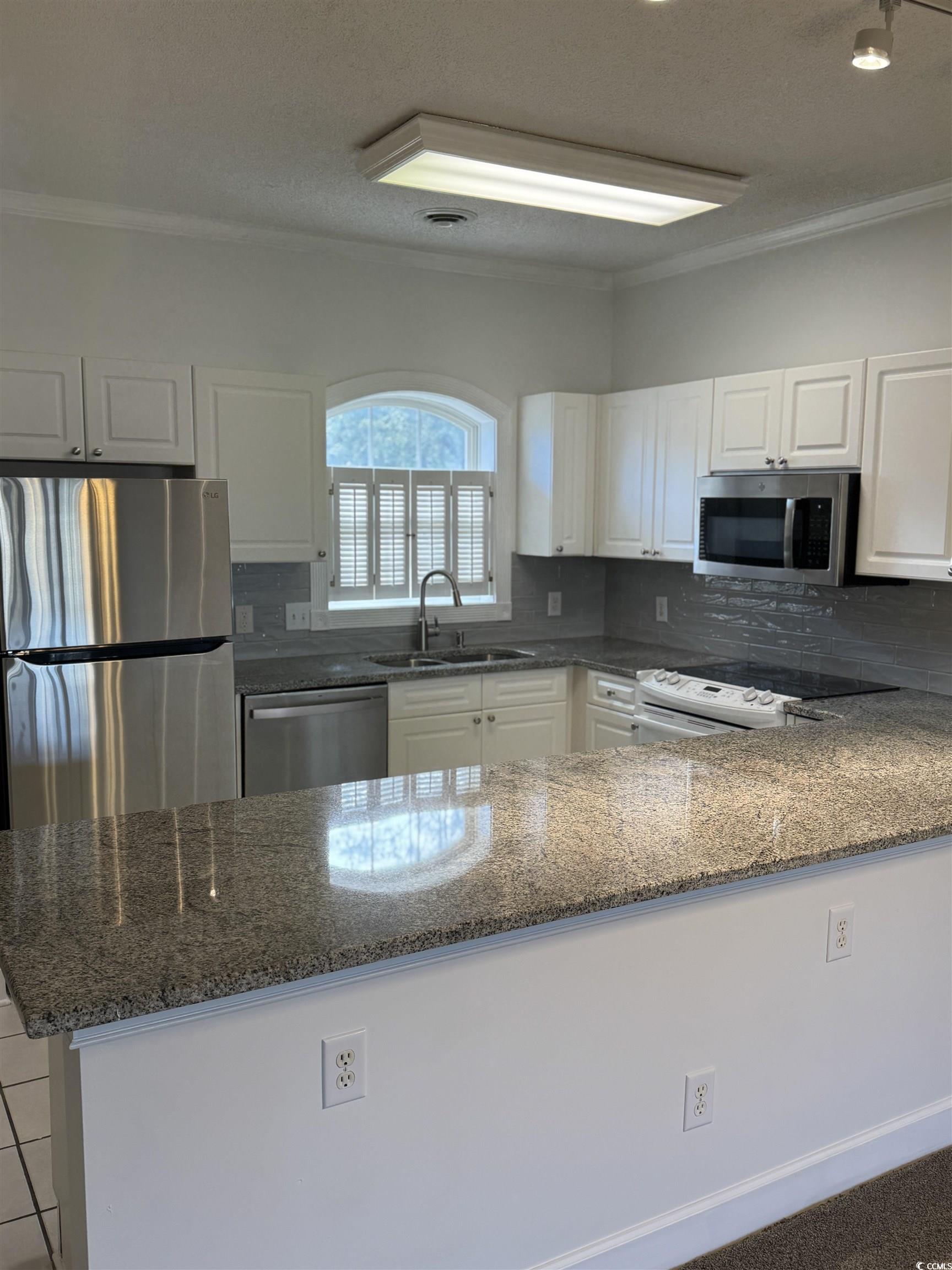The Gardens at Cypress Bay is one of the more desirable neighborhoods in Little River. This first floor, 2 bedroom, 2 full bath unit. This condo hosts an array of features such as crown molding, granite countertops, a large kitchen island, brand new washer and dryer, newer kitchen appliances, newer water heater and new light fixtures throughout. The living room, kitchen, and dining area are open creating a bright and airy space! The large master bedroom has two closets; one is a large walk in closet. Master bath features a granite countertop sink, tile floor and new fixtures. The second bath includes a title floor and has been updated with new shower door, a granite countertop sink, and new fixtures. Out back, you will find a screened in porch, with an attached storage closet. There are 3 pools to chose from. Close to beaches, golf, shopping and entertainment in South and North Carolina. Owner is agent.