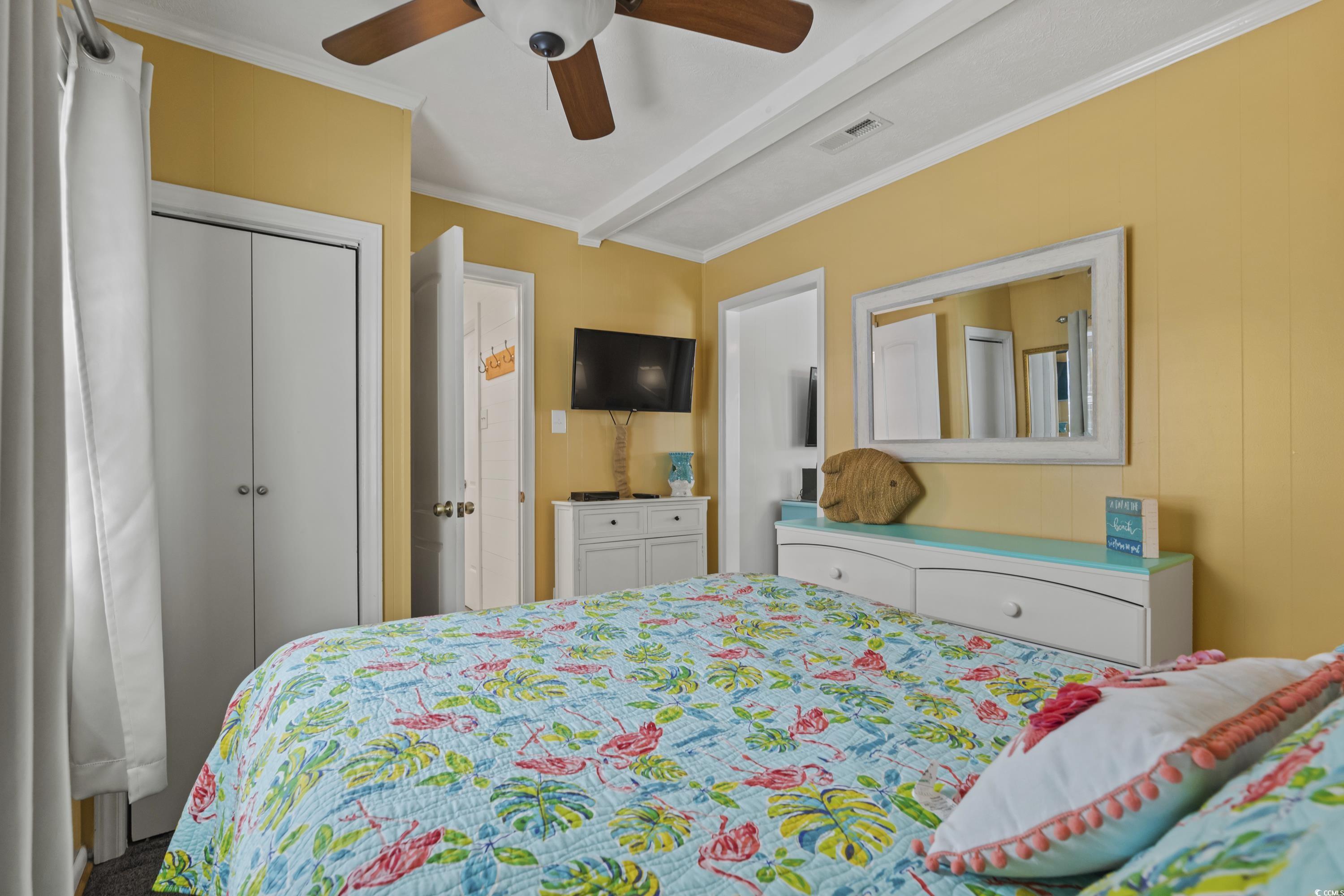 Comfort, elegance, and relaxation can be found here at site 1308 located within the gates of the award winning Ocean Lakes Family Campground. With 1 bedroom, 1 full bathroom and a spacious kitchen with stainless steel appliances, this home is perfectly situated on the south side of the campground. Home is close proximity to the beautiful Lake right at the end of the street! Home offers a spacious and open living room, a generously proportioned kitchen with plenty of counter and prep space, and a fully updated bathroom. On the exterior of the home, you will be sure to love the large covered front porch, the built in bar/eating area, a concrete driveway, and a spacious outdoor storage building. This home is perfectly situated for outdoor entertainment after those long days at the beach. The kitchen offers a sleeping ""nook"" at the bay window allowing plenty of space for everyone. The possibilities of this home are endless! Don't let this one pass-by! Home is conveniently located close to all the amazing amenities Ocean Lakes has to offer! Amenities included are indoor/outdoor pools, lazy river, waterpark, mini-golf, arcade, basketball courts, volleyball courts, and much more! Come check out this property today! All measurements are approximate and not guaranteed. Buyer responsible for verification. New water heater April2024