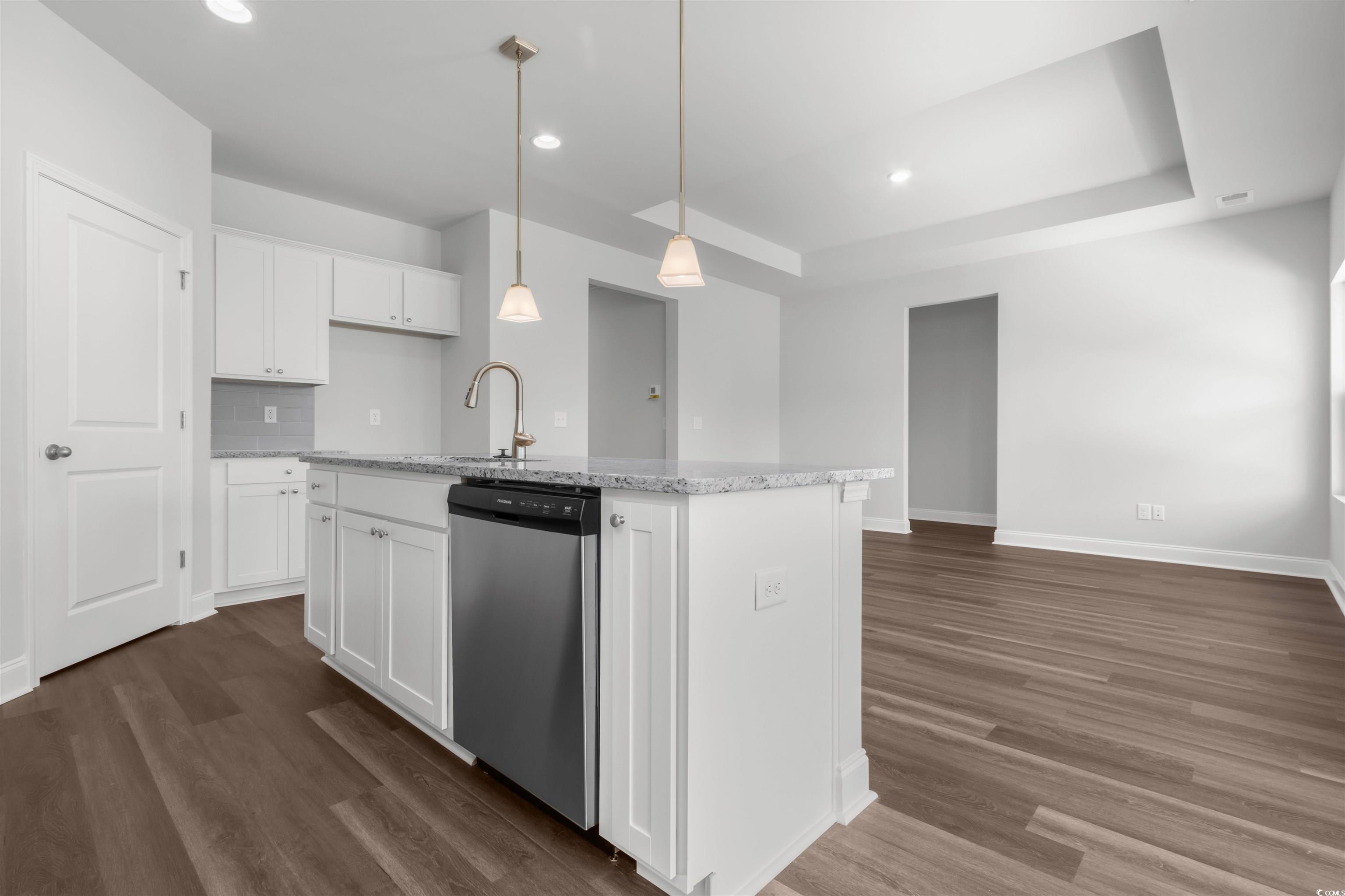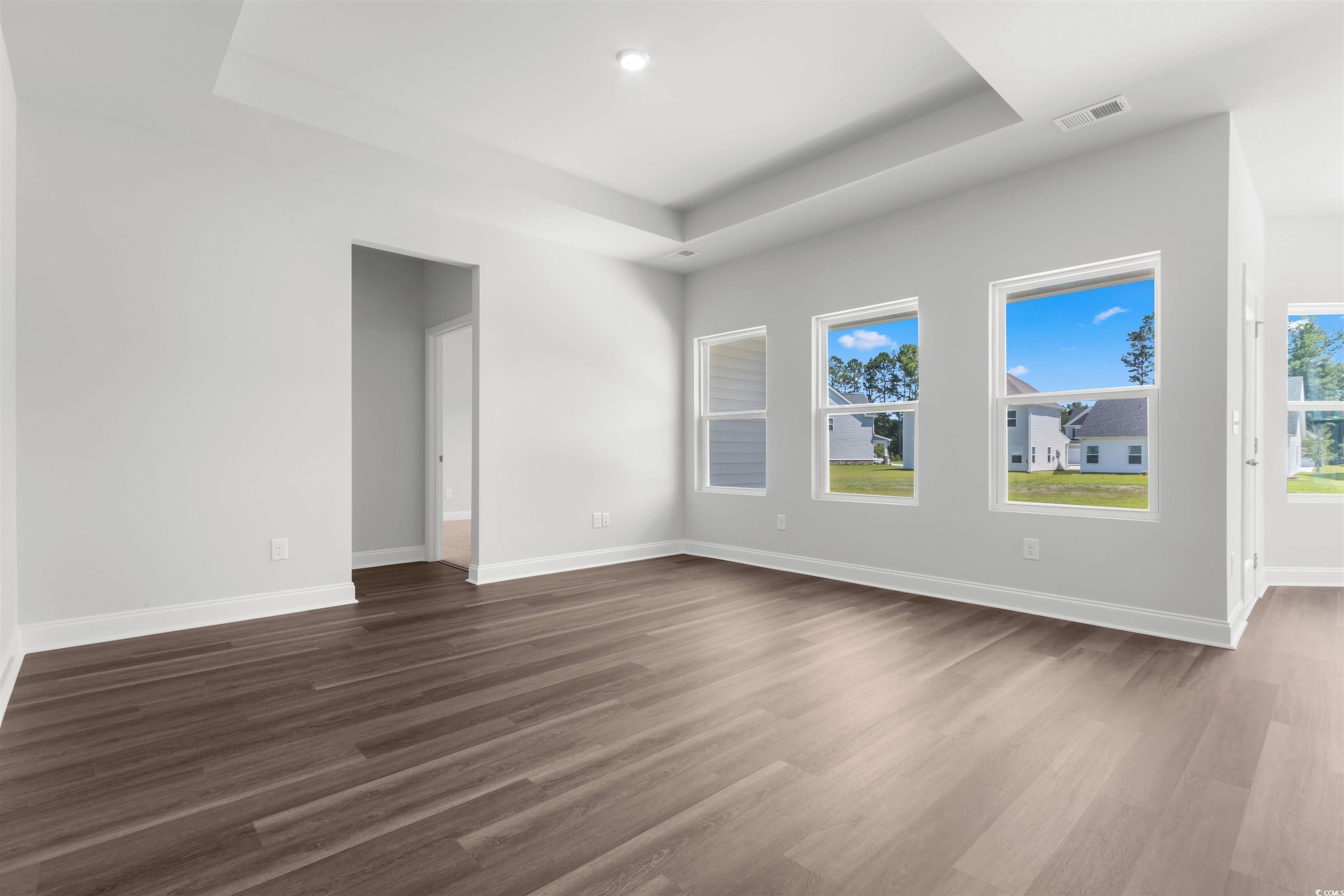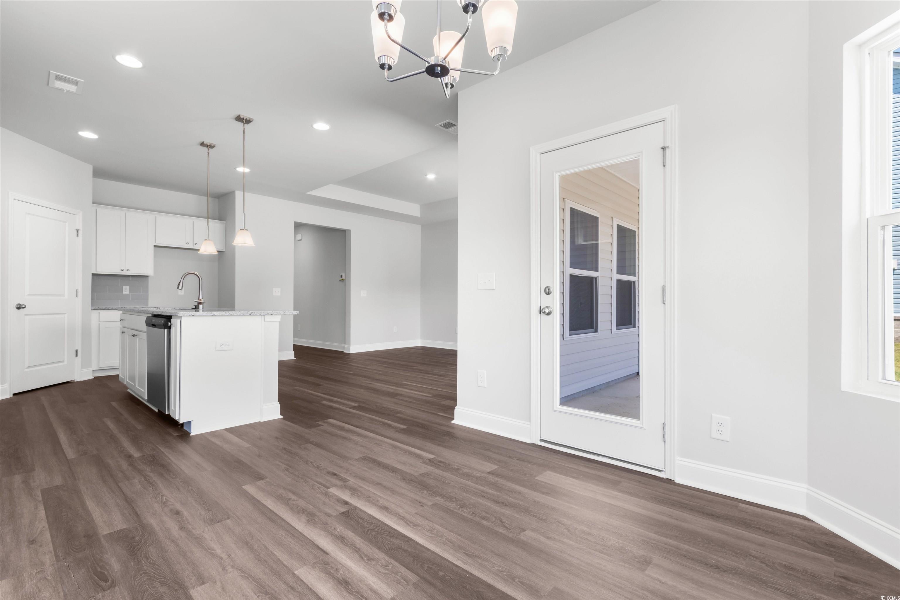 Introducing The Harmony, a thoughtfully designed one-level home that combines modern upgrades with functional living spaces. This beautiful 3-bedroom, 2-bathroom home features a spacious layout, with a welcoming foyer entrance that leads into an open-concept living area full of natural light. The common areas are enhanced with upgraded Mohawk laminate flooring, offering durability and style, while the bathrooms feature elegant tile flooring. The home boasts 9-foot ceilings throughout, with tray ceilings in both the living room and the primary bedroom, creating an airy, expansive feel. A versatile office/flex space provides the perfect spot for a home office, gym, or creative area. The well-appointed kitchen and living room seamlessly connect, providing the perfect space for entertaining or relaxing. The primary suite is a true retreat, complete with a tray ceiling and a bathroom with a spacious walk-in closet. The home also includes comfort-height toilets for added convenience and storage access in the garage to keep everything organized. Step outside to enjoy the serene covered back patio or unwind on the charming front porch, adding curb appeal and an inviting space to relax. In addition to its stylish features, The Harmony comes equipped with irrigation to keep your lawn lush and vibrant year-round. This home is a perfect blend of modern amenities, thoughtful design, and comfort, offering a tranquil and functional space for everyday living. Spring Oaks is a beautiful new home community offering natural gas homes, blending comfort with sustainability. Ideally located near Historic Downtown Conway, residents enjoy easy access to the Riverwalk, local restaurants, shops, and the stunning coastal beaches. Its the perfect spot for modern living with the convenience of nearby attractions. Photos are of a representative model and the home has an estimated May completion.