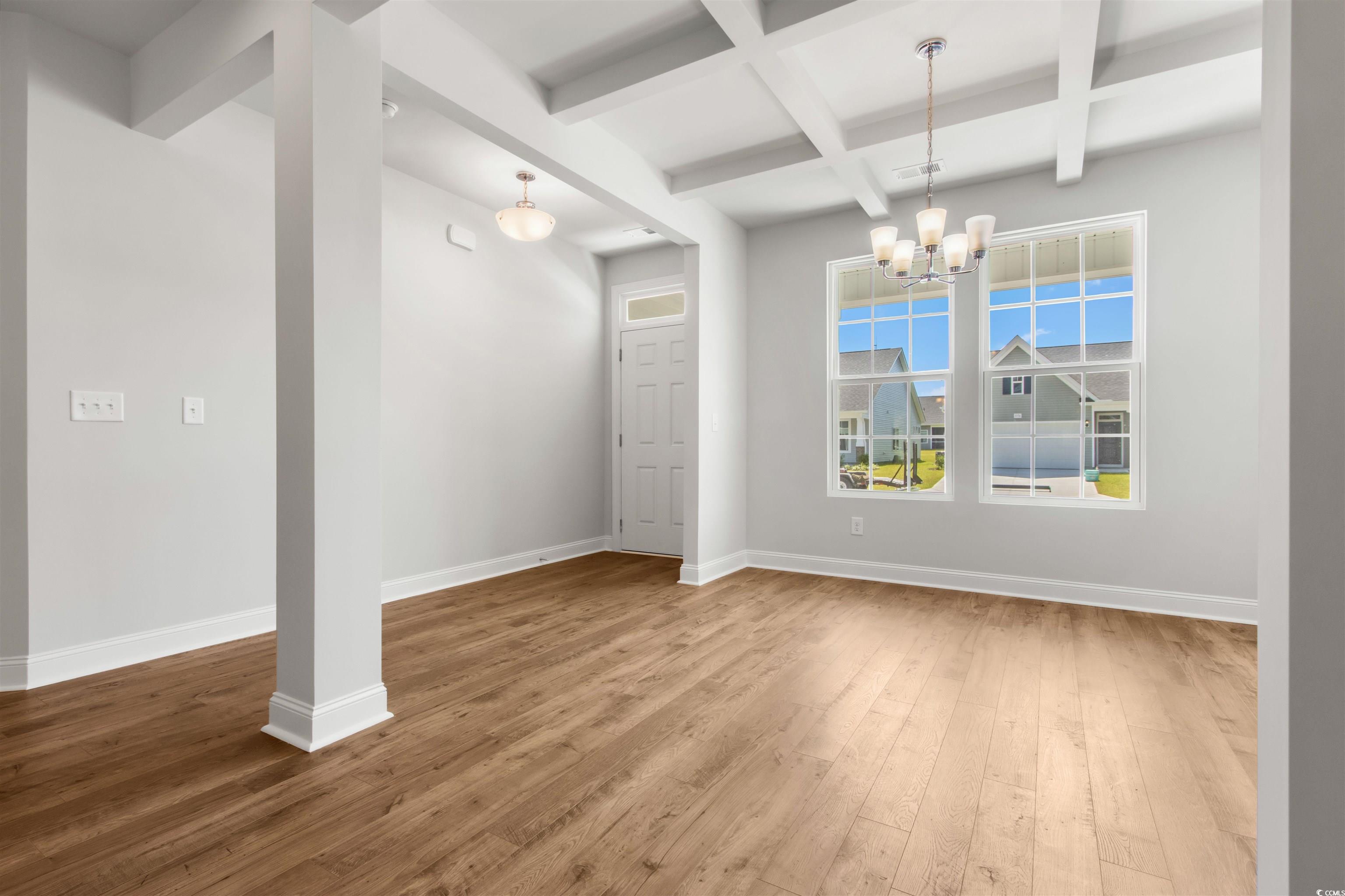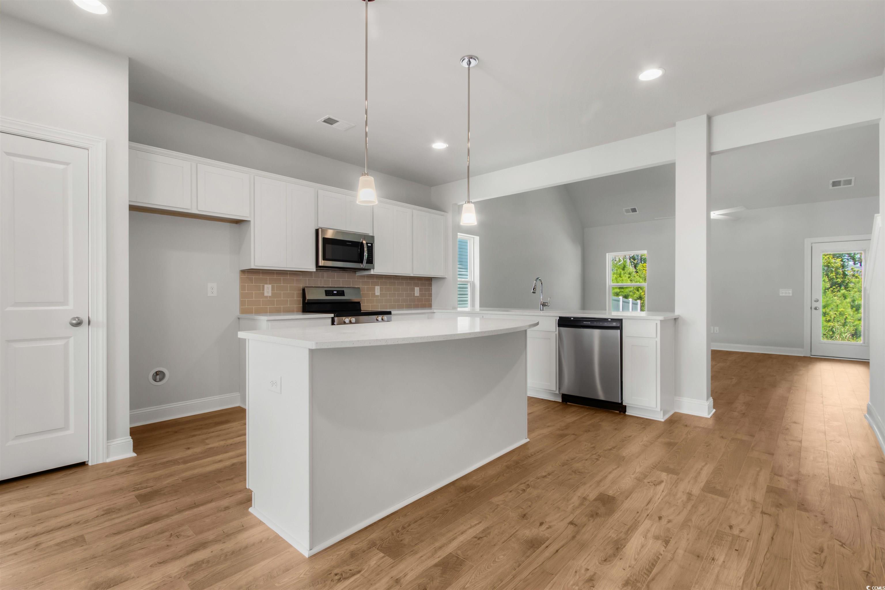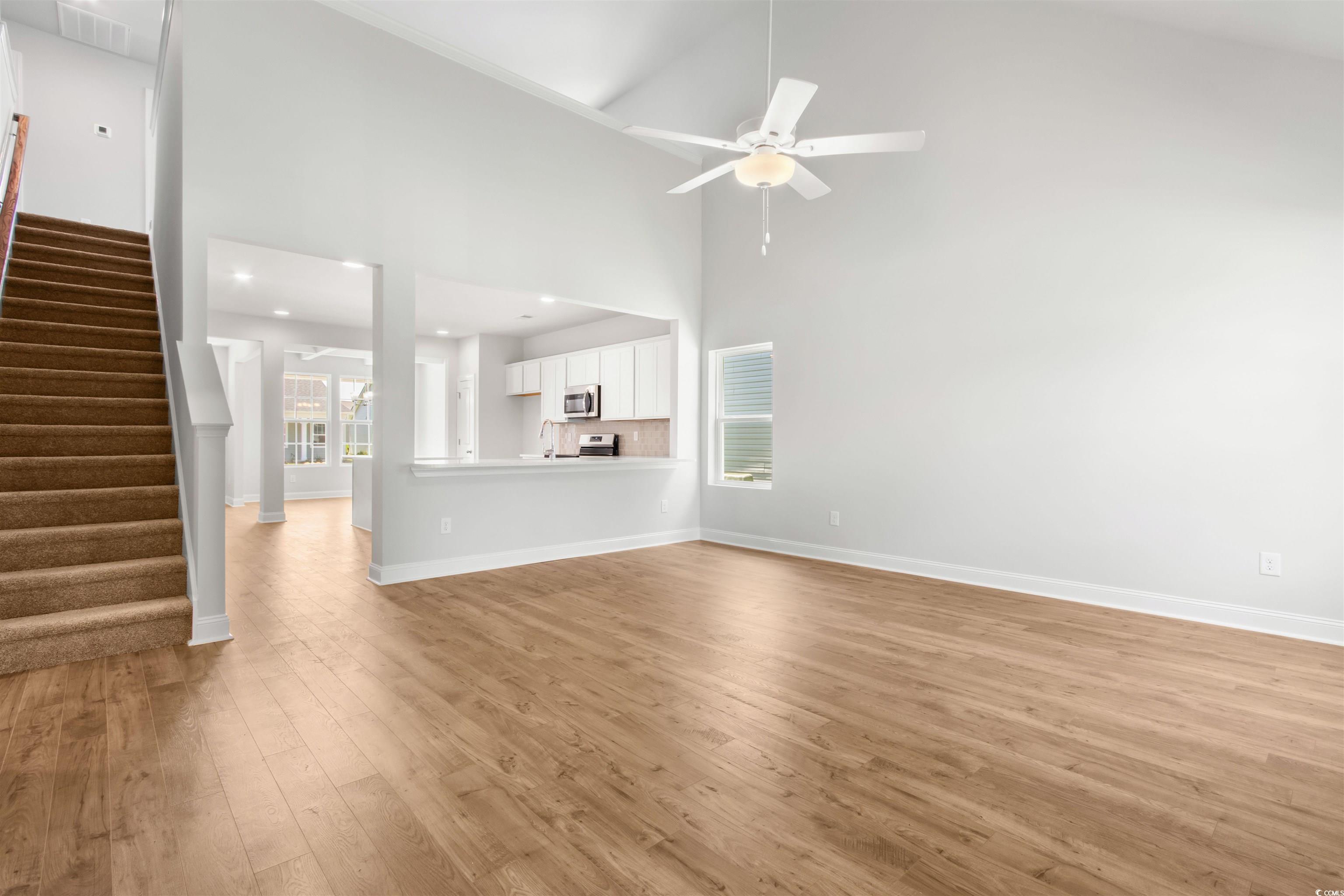 Introducing The Jordan, the largest home offered in the Spring Oaks community, designed to provide maximum space and comfort for your family. As you enter, you are immediately welcomed by an open concept dining room that flows seamlessly into a spacious kitchen, ideal for both casual meals and entertaining guests. Moving into the living room, youll be greeted by soaring 16+ foot cathedral ceilings that create an expansive, airy atmosphere. The main level also features the primary bedroom, thoughtfully located for privacy, and includes a walk-in closet that conveniently connects to the laundry space for added ease. Upstairs, you'll find three generously-sized bedrooms with high vaulted ceilings that add to the homes sense of openness. The second level also features a full bathroom and an open loft area that overlooks the living room, perfect for a home office, playroom, or additional lounge space. There is also a pull-down access to the attic, offering plenty of storage options. Throughout the home, youll enjoy upgraded tile flooring in the bathrooms, comfort-height toilets, and upgraded Mohawk laminate flooring in the common areas. The home is also equipped with an irrigation/sprinkler system to keep your yard looking lush and well-maintained. With its thoughtful design and ample space, The Jordan is the perfect home for those seeking modern convenience and a welcoming environment. Spring Oaks is a beautiful new home community offering natural gas homes, blending comfort with sustainability. Ideally located near Historic Downtown Conway, residents enjoy easy access to the Riverwalk, local restaurants, shops, and the stunning coastal beaches. Its the perfect spot for modern living with the convenience of nearby attractions. Photos are of a representative model and the home has an estimated July completion.