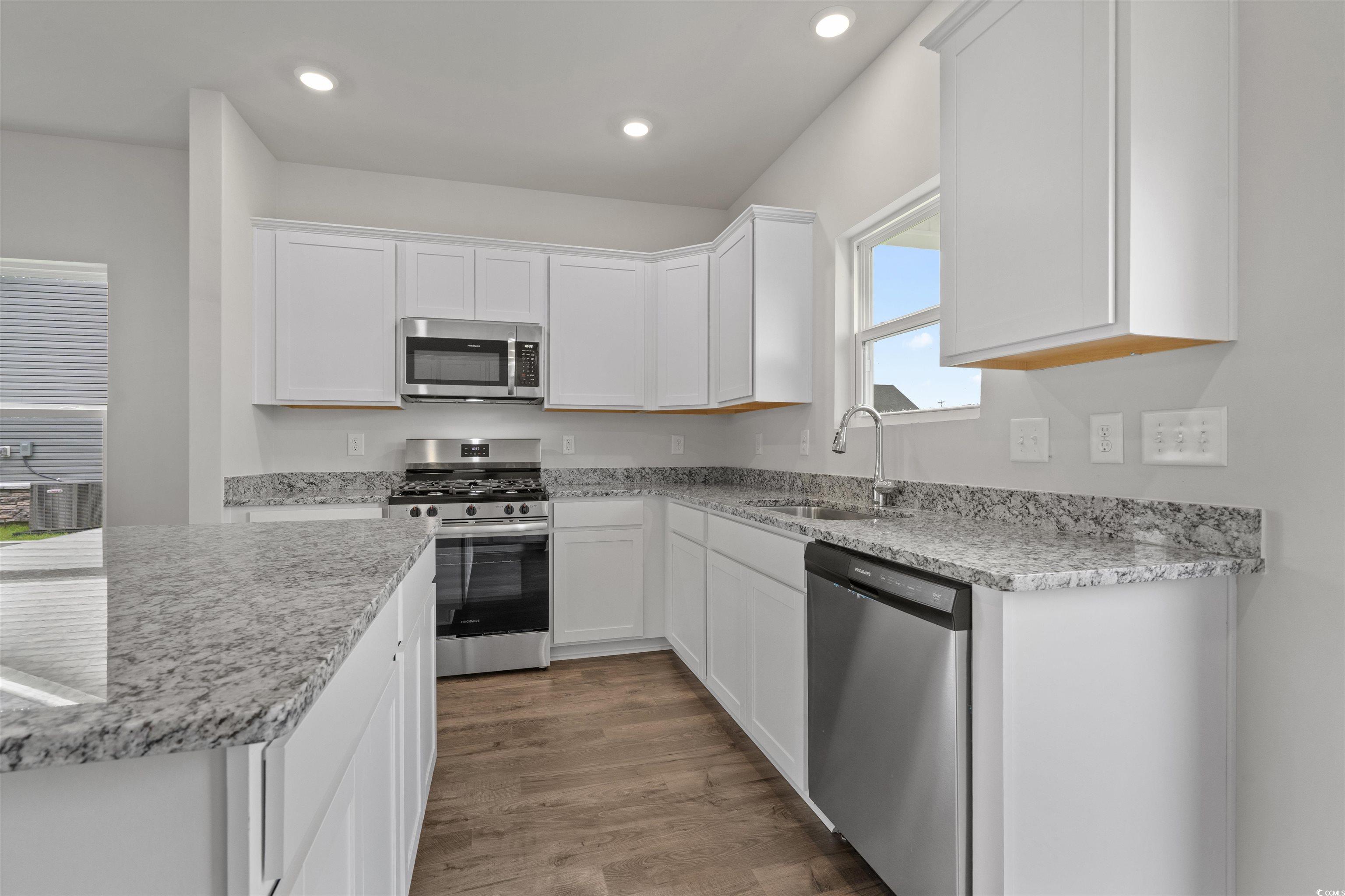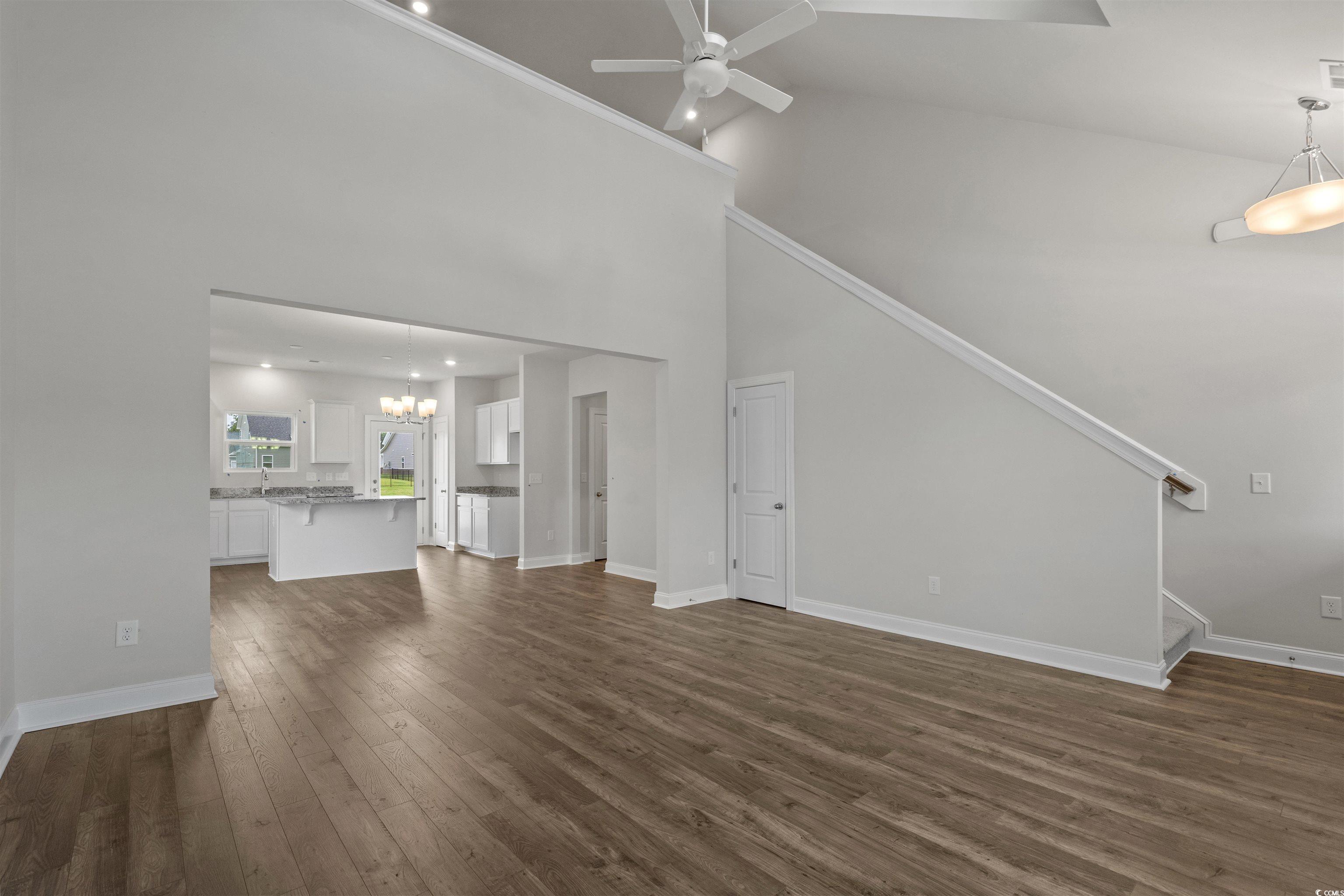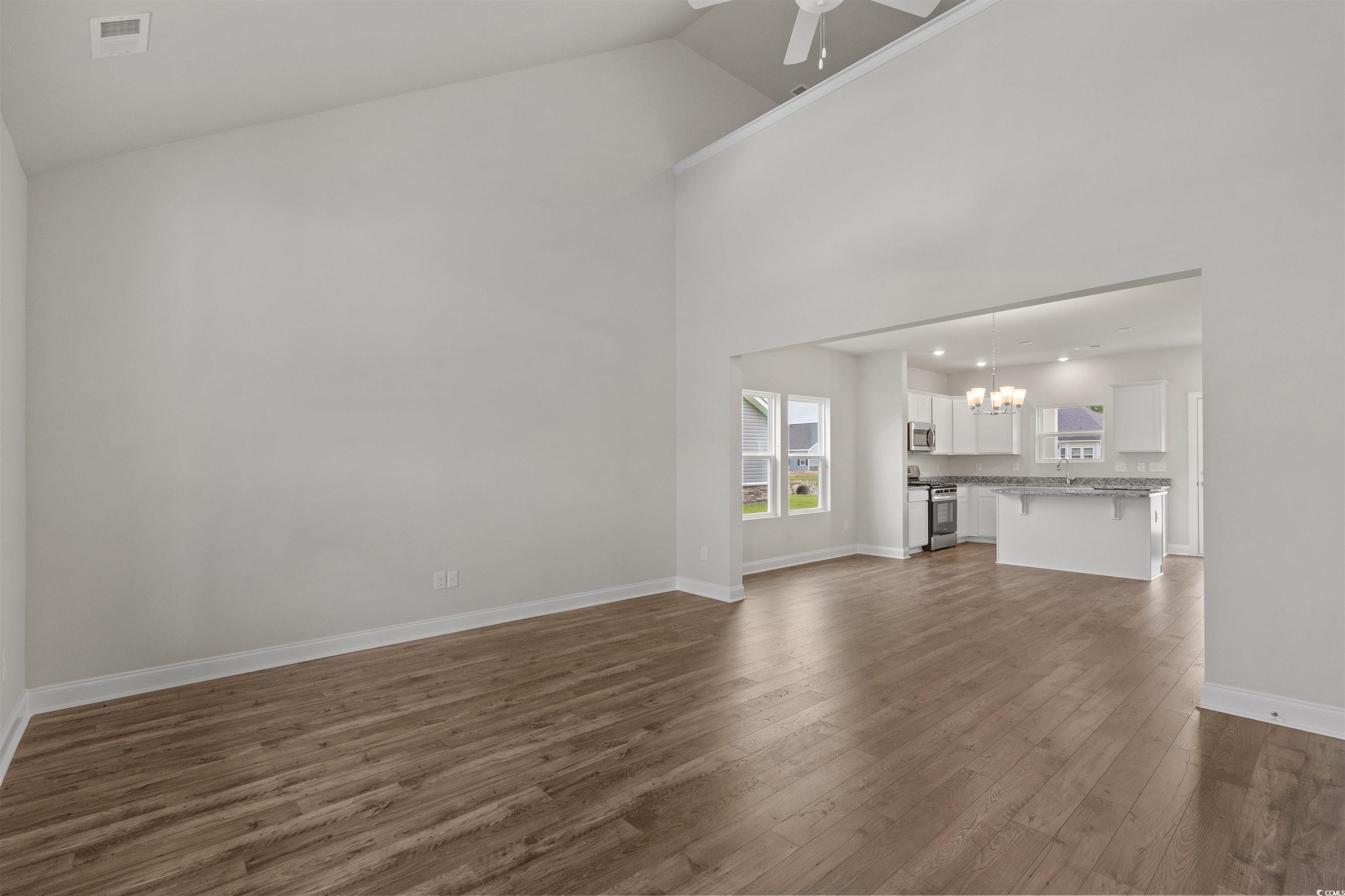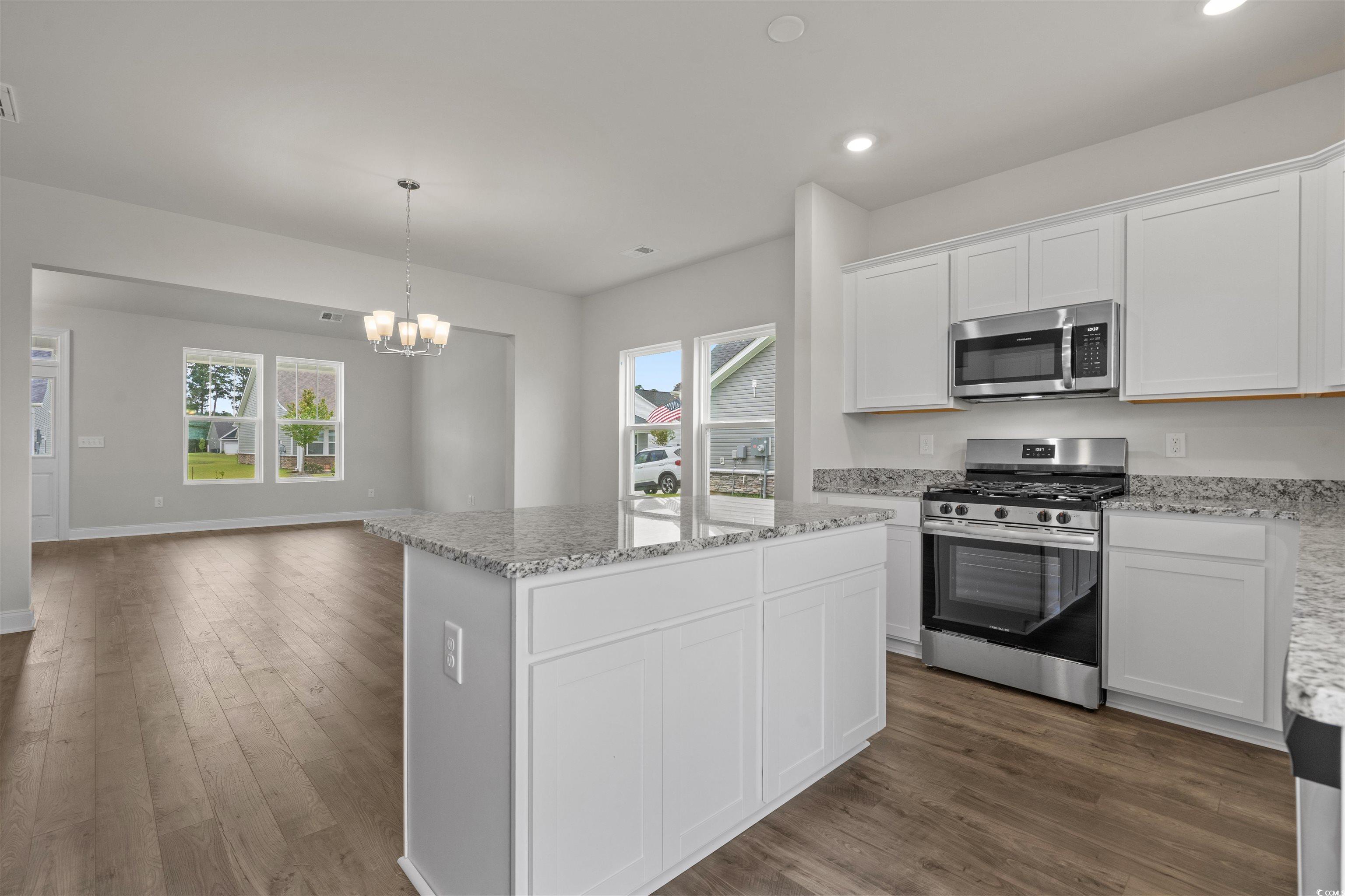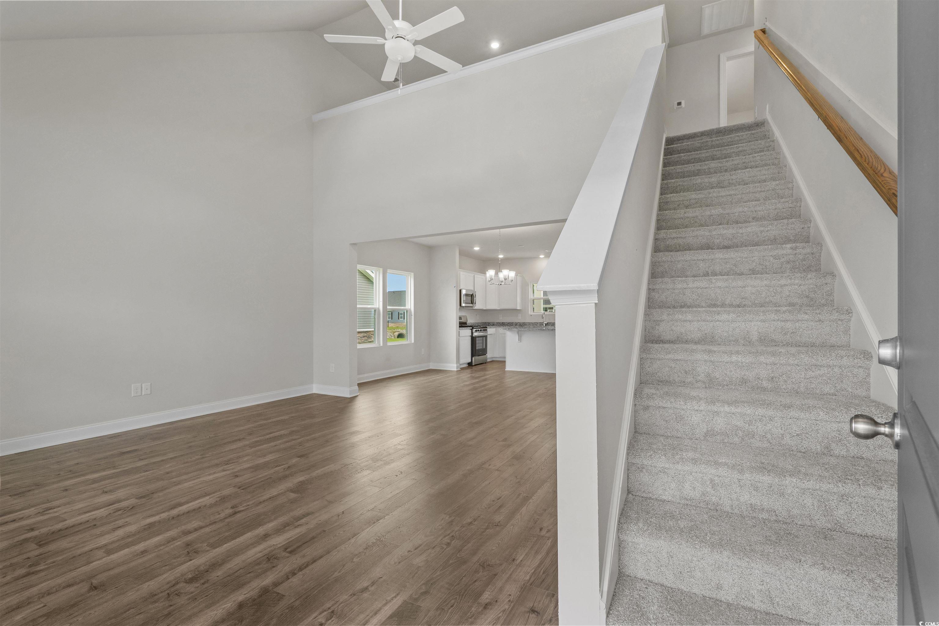 Introducing The Kent, a stunning two-level home that combines spacious living with elegant design. Upon entering, you are immediately welcomed by soaring 16+ foot cathedral ceilings in the living room, creating an open and airy atmosphere. The open-concept layout seamlessly flows into the dining and kitchen areas, making it perfect for entertaining or everyday family life. The main level also features the primary bedroom, which is thoughtfully designed with a beautiful bay window, offering a serene and bright retreat. The home boasts upgraded tile flooring and comfort height toilets in the bathrooms and upgraded Mohawk laminate flooring in the common areas. Upstairs, you'll find three additional bedrooms, a full bathroom, and an open loft area that overlooks the living room. The loft space is perfect for a play area, home office, or additional lounge space. The upstairs also includes a walk-in attic/storage space, offering ample room for all your storage needs or the potential for future expansion. Outside, the home features an irrigation/sprinkler system to maintain a lush and well-manicured yard. The Kent combines modern amenities with thoughtful design, making it the perfect home for families seeking comfort and functionality. Spring Oaks is a beautiful new home community offering natural gas homes, blending comfort with sustainability. Ideally located near Historic Downtown Conway, residents enjoy easy access to the Riverwalk, local restaurants, shops, and the stunning coastal beaches. Its the perfect spot for modern living with the convenience of nearby attractions.
