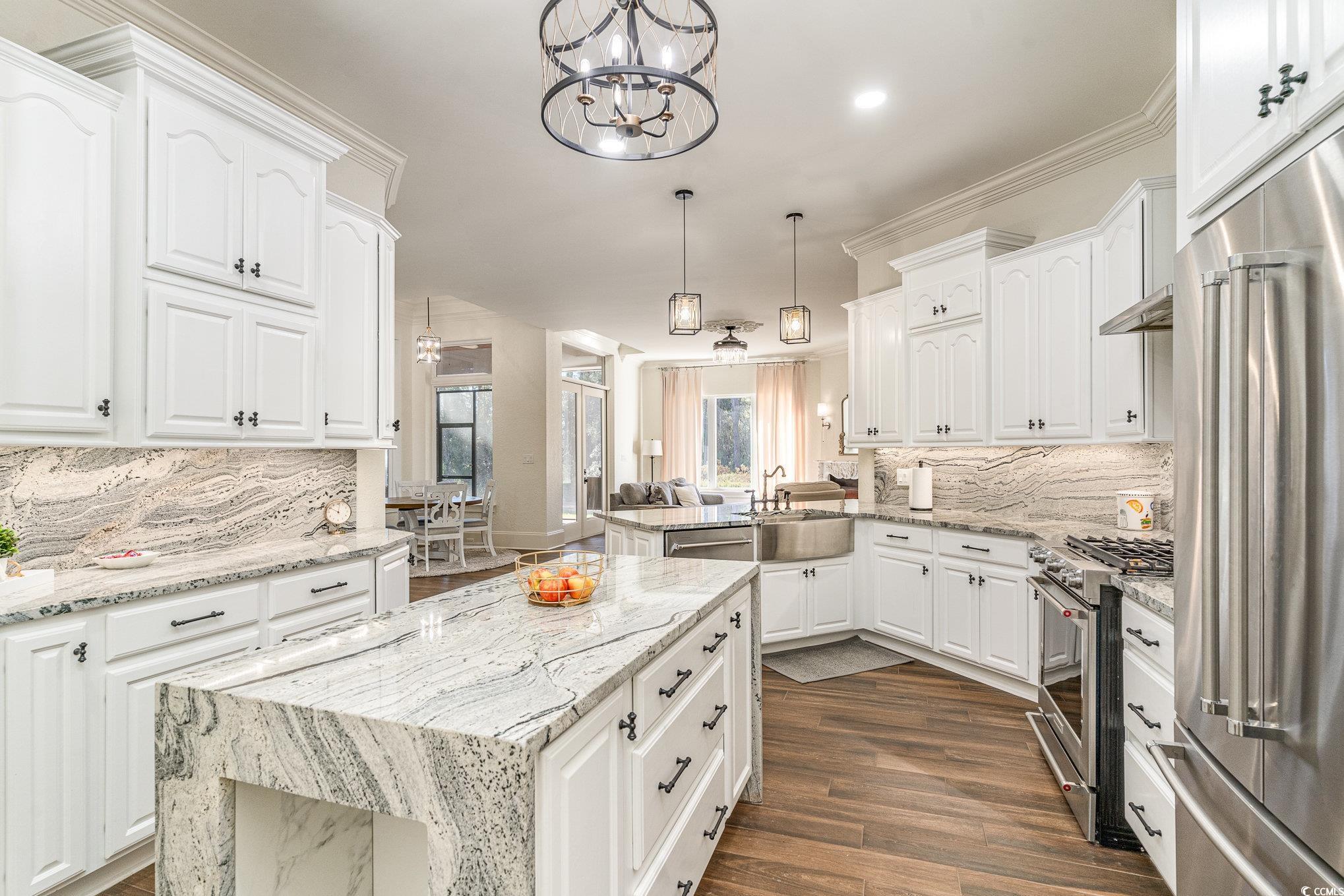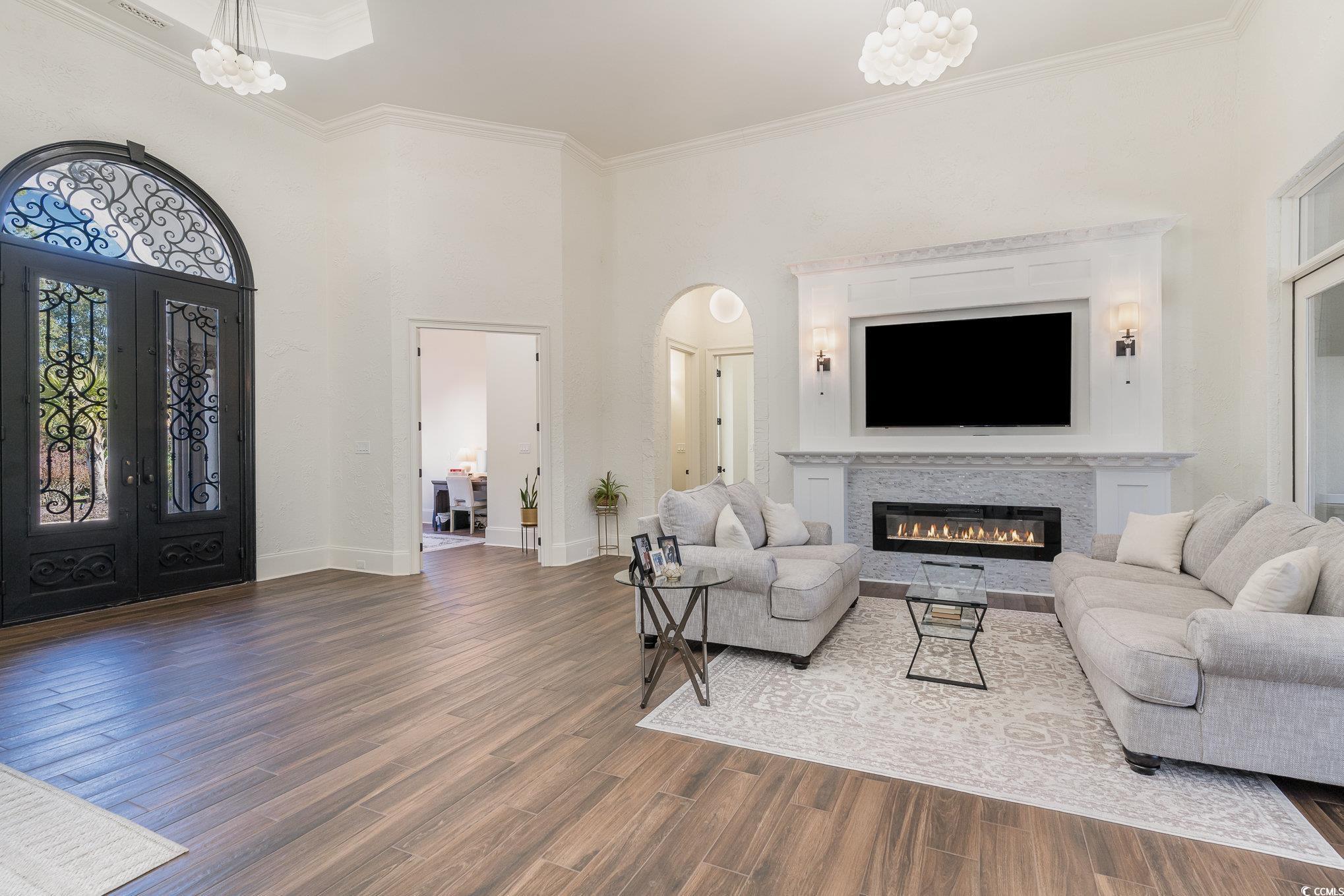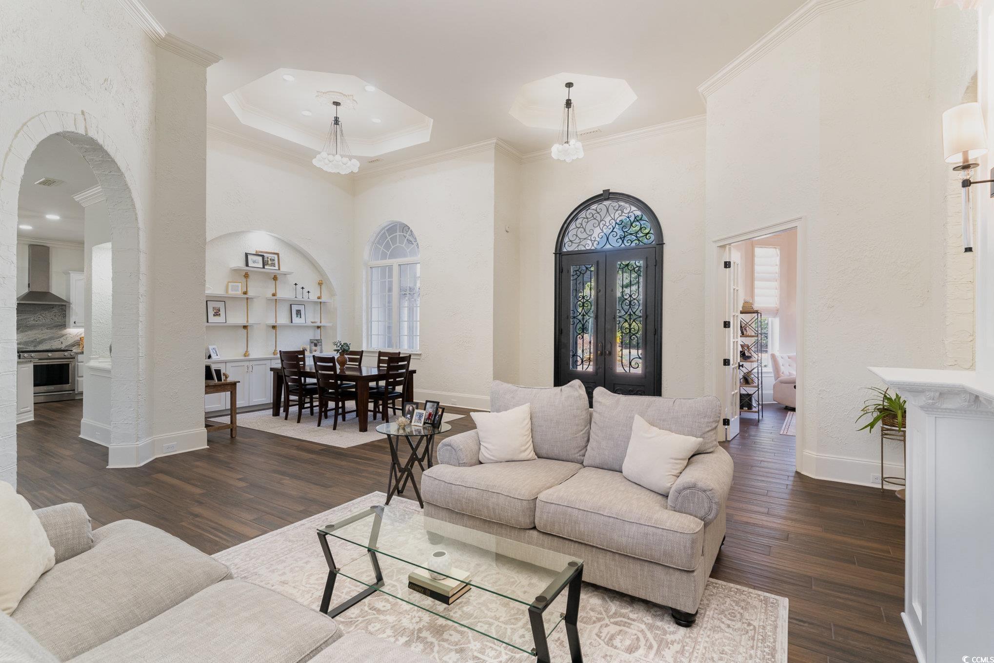 This magnificent home located in the Highly Regarded Golf Community of Cadiz at Grande Dunes is ready and waiting. Offering an impressive layout complete with Tall Ceilings, Enormous Windows, extensive trimwork and beautiful floors. An eye-catching eat-in kitchen w/a granite waterfall center island, a butlers pantry & an additional double door pantry. A formal Dining Room, Office and Two fireplaces grace the Living Room & Family Room. Split bedroom plan secludes a Master Suite w/a gorgeous bathroom, custom closets and a private access to a fully enclosed lanai that overlooks your private, xtra-large back yard. A 3 vehicle garage with custom screened garage door, has finished epoxy flooring w/a built-in entertainment center. Your Ocean Front Beach Club is another fantastic feature of this home that already has so much to offer.