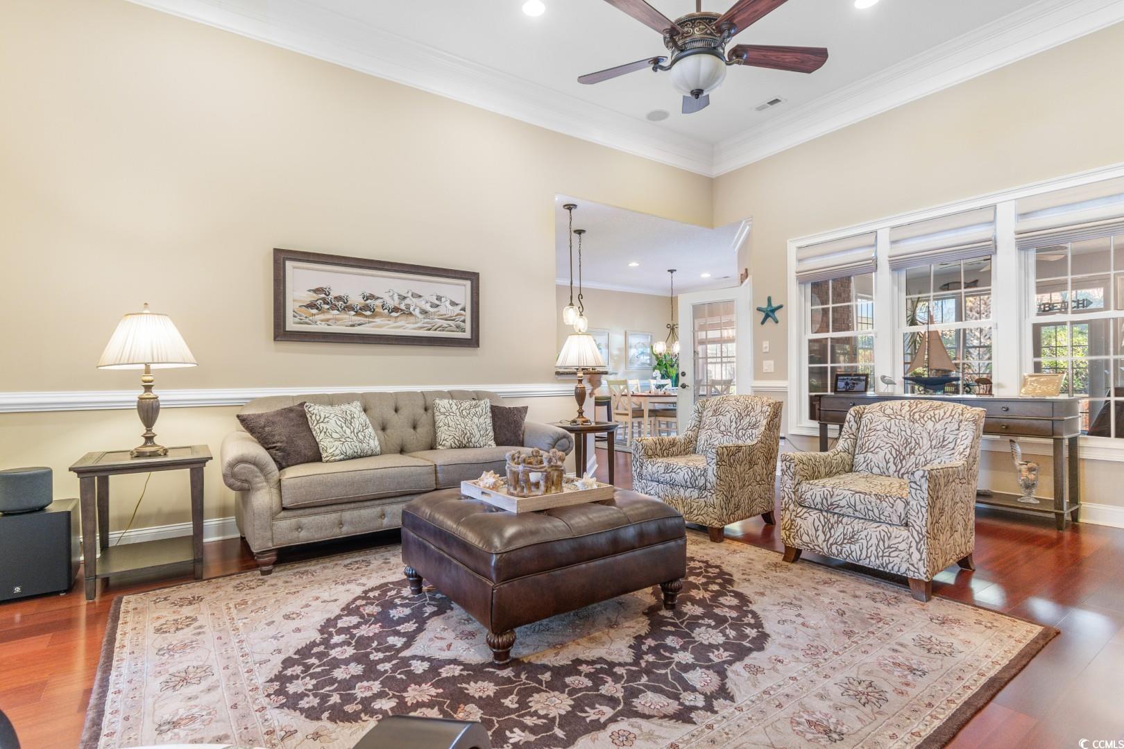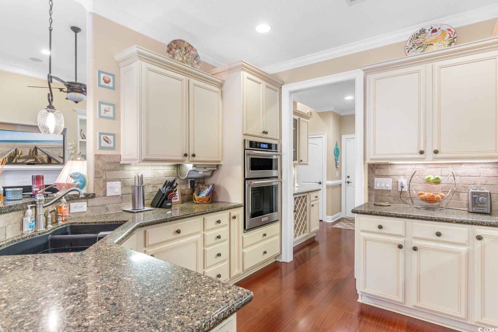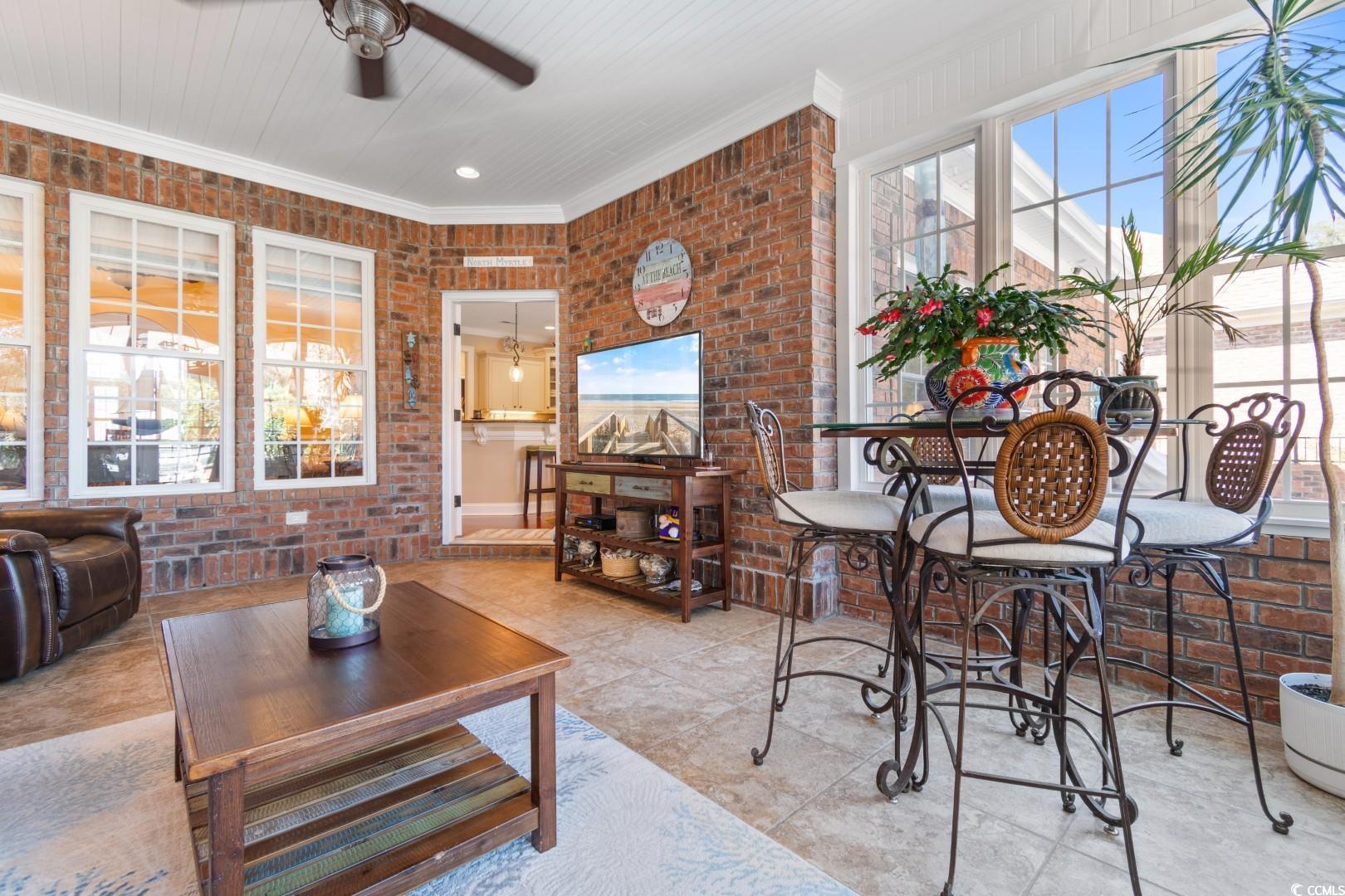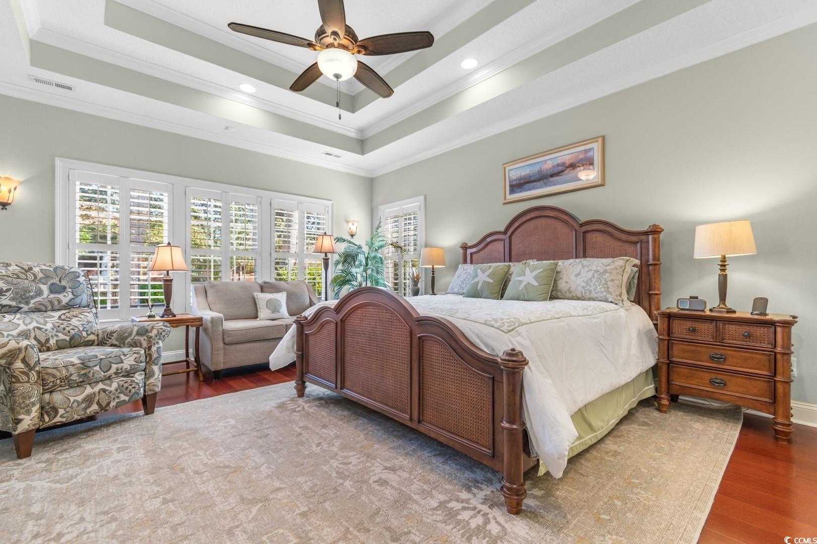 Step into a thoughtfully designed interior featuring 12' ceilings in the great room, foyer, and formal dining area, a coffered ceiling in the dining room, a vaulted ceiling in the front bedroom, and a tray ceiling in the master suite. Crown molding runs throughout the home, complementing the rich hardwood floors and porcelain tile baths. Each bathroom boasts full tile showers with frameless Shower Guard specialty glass and granite countertops, while the master bath offers a garden tub, double vanity, and a fully customized closet. The gourmet kitchen is a chef's dream, featuring custom cabinetry, Silestone countertops, a wall oven with a separate cooktop, soft-close drawers, 42"" wall cabinets, and a large breakfast bar. The adjacent breakfast room is spacious enough for a full-sized table. A wet bar with a fridge in the bonus room adds to the home's entertainment appeal. All kitchen appliances and the security system convey. Significant updates have been made to enhance the home's appeal. In 2018, the interior was painted, granite countertops were added in the bathrooms, lighting fixtures in the kitchen and baths were updated, and a new kitchen backsplash was installed. In 2019, the pool was resealed, and a new heater was installed. Most recently, in 2024, a new HVAC system was added. Additionally, the porch was enclosed with climate control, increasing the heated square footage to 3,100. Seaside Plantation is a highly sought after gated community with a resort style community pool & clubhouse, located in the heart of North Myrtle Beach, close to all of the area's famous dining, shopping, golf, and entertainment attractions. You won't want to miss this. Schedule your showing today.